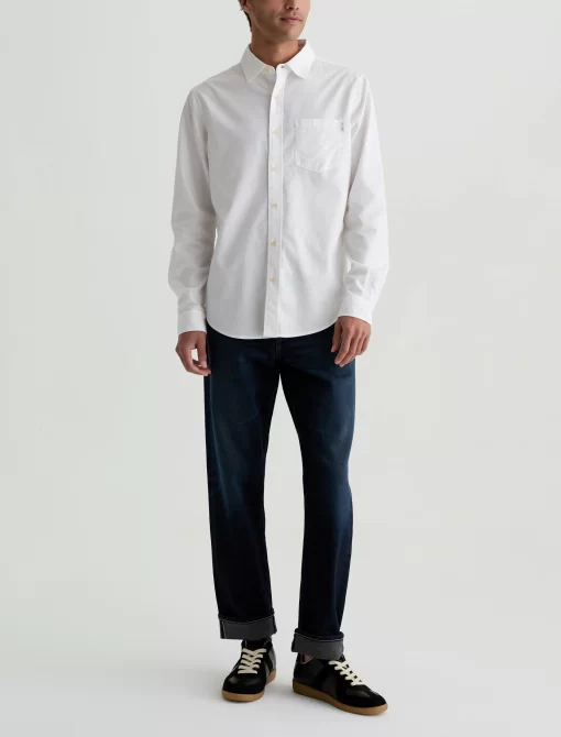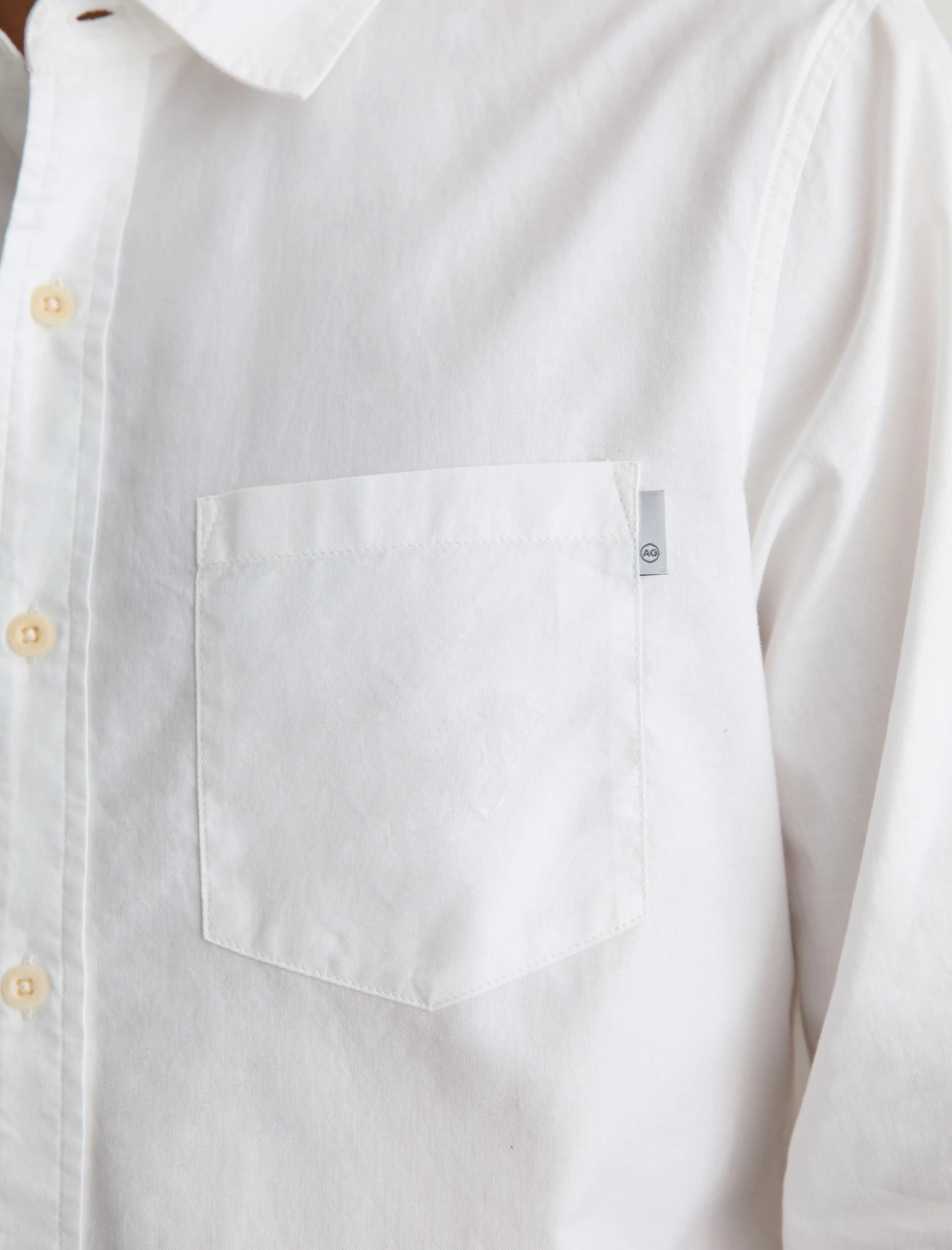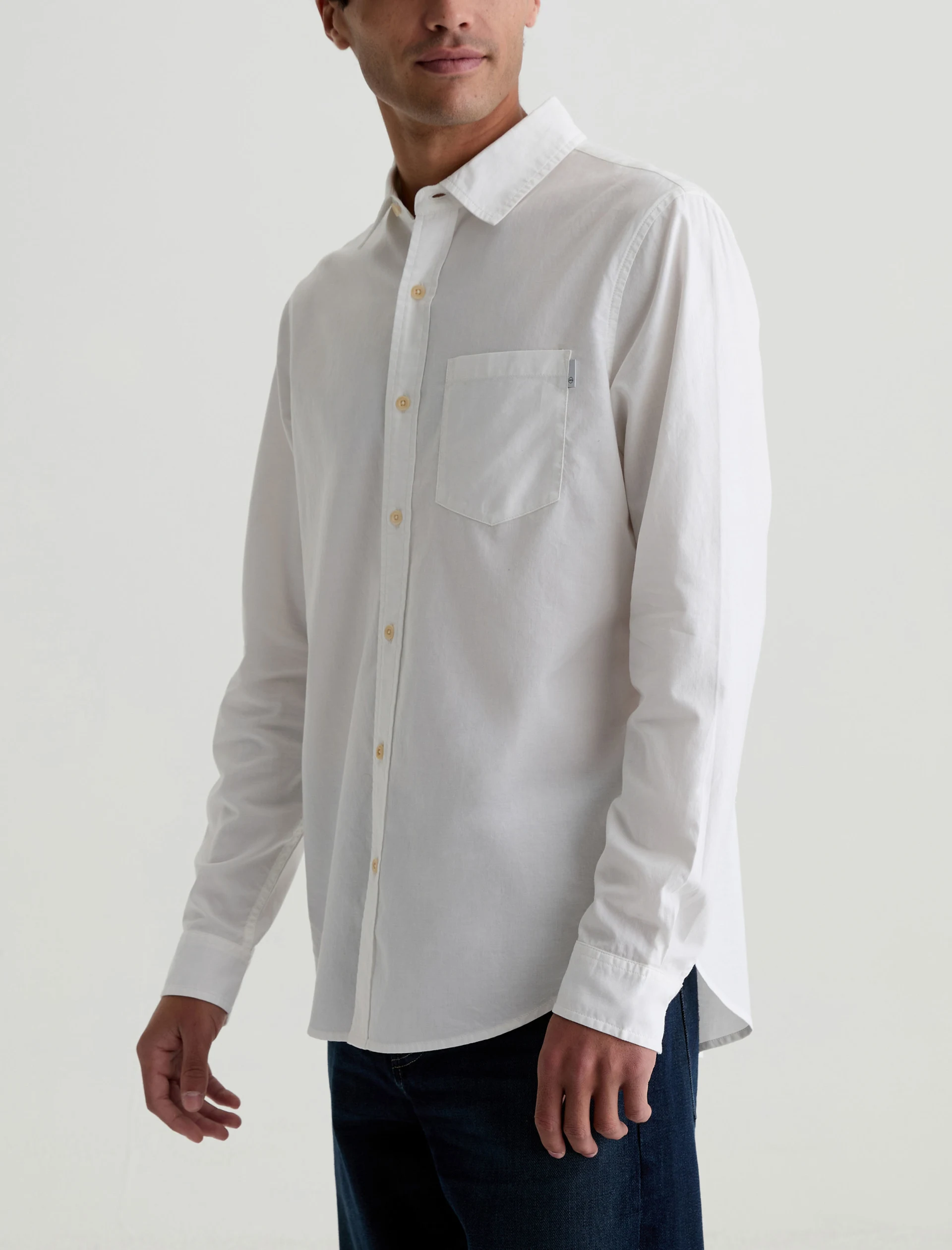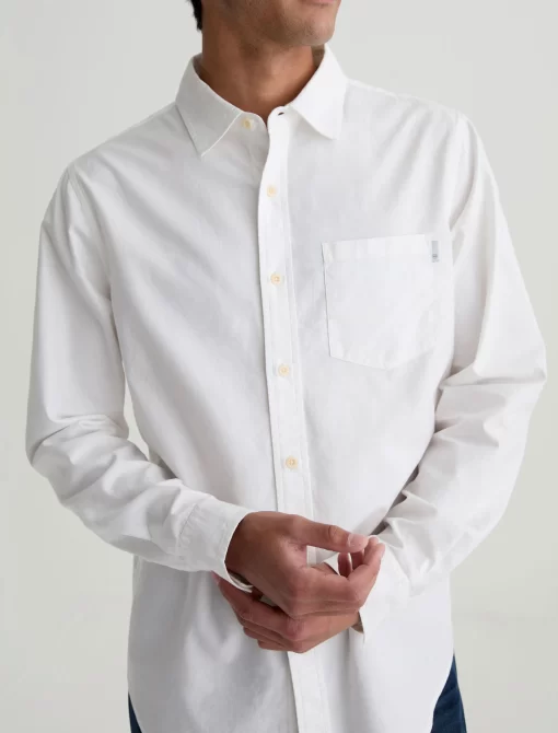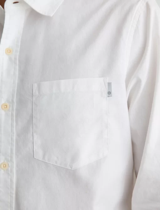 An essential you can wear in any season, the Aiden Shirt is cut for a classic fit in white shirting twill of 100% cotton. A chest pocket accents this timeless long-sleeve button-up.