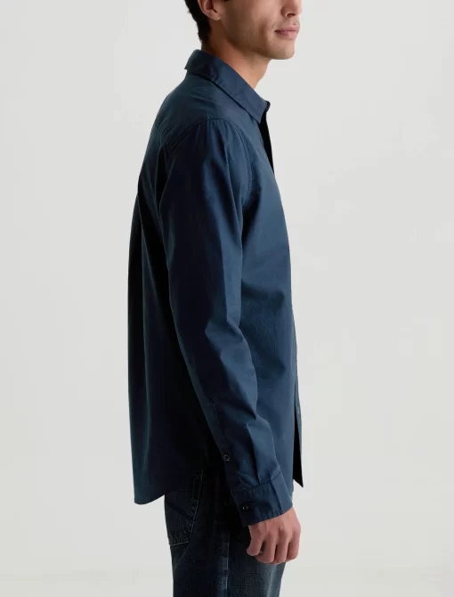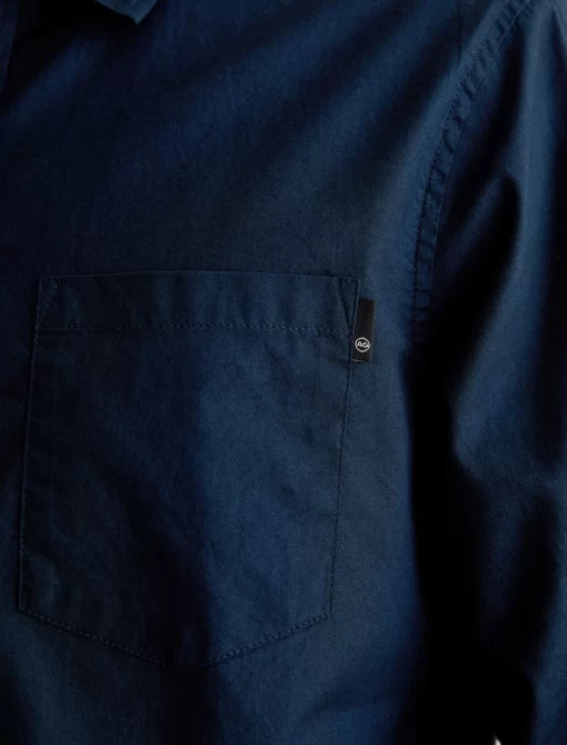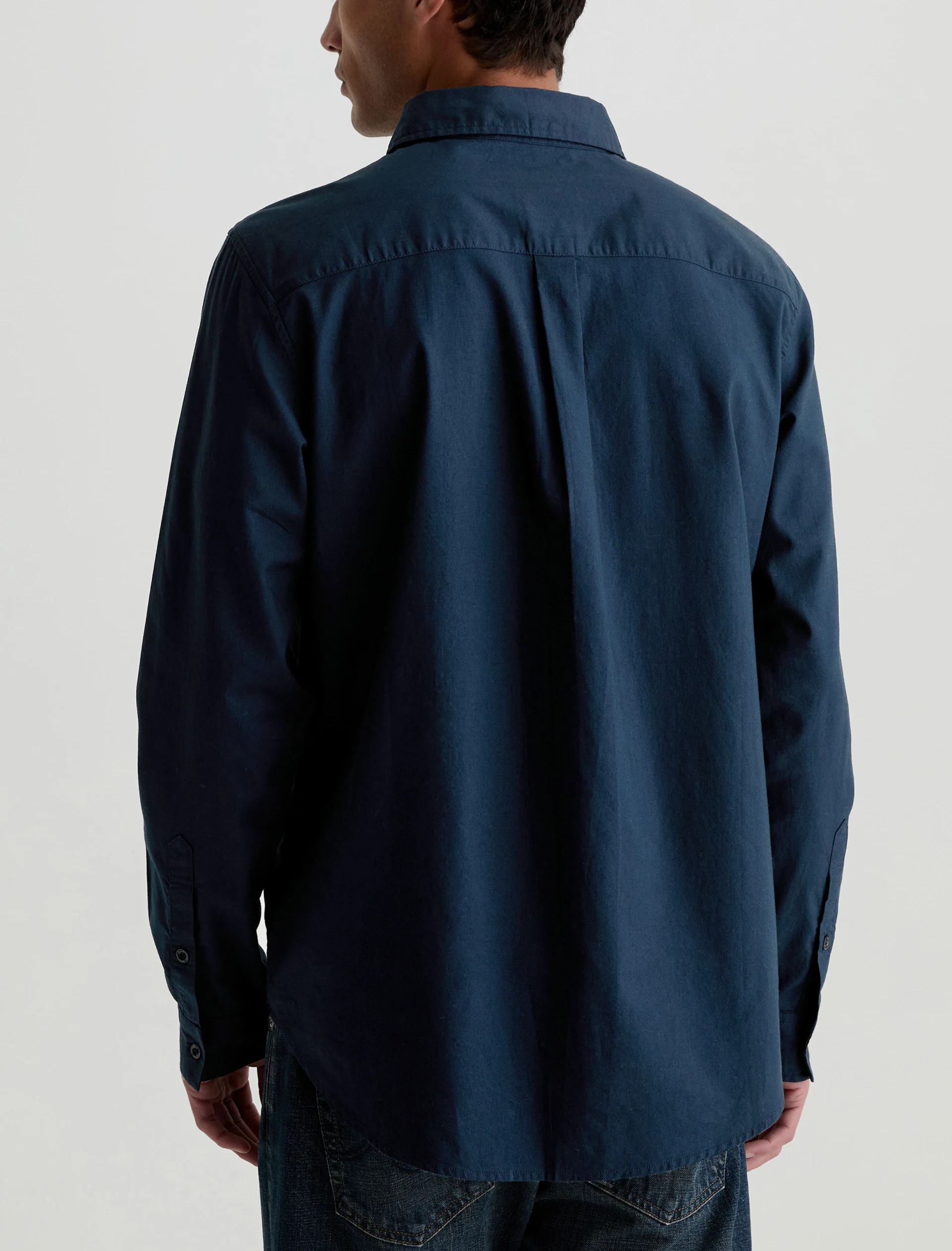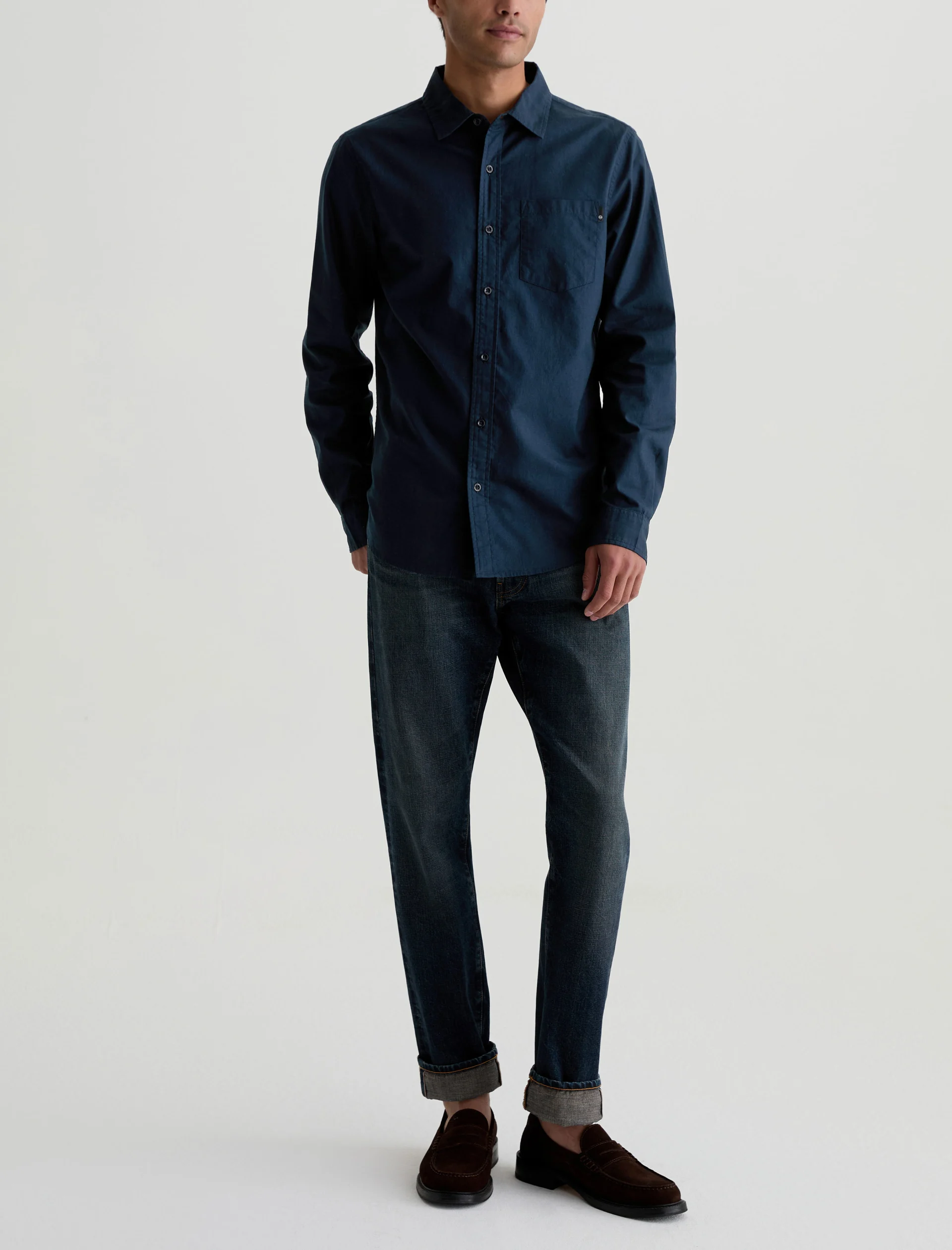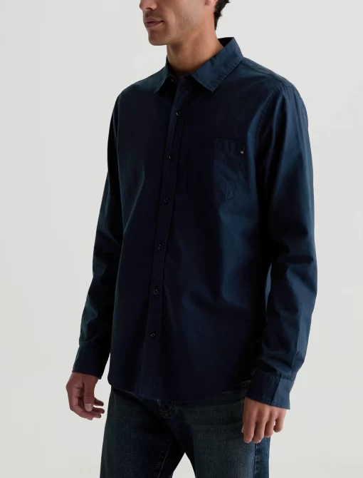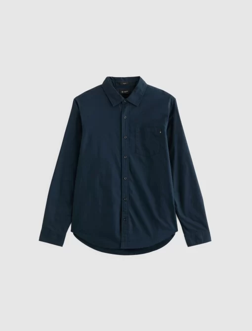 An essential you can wear in any season, the Aiden Shirt is cut for a classic fit in dark-blue shirting twill of 100% cotton. A chest pocket accents this timeless long-sleeve button-up.