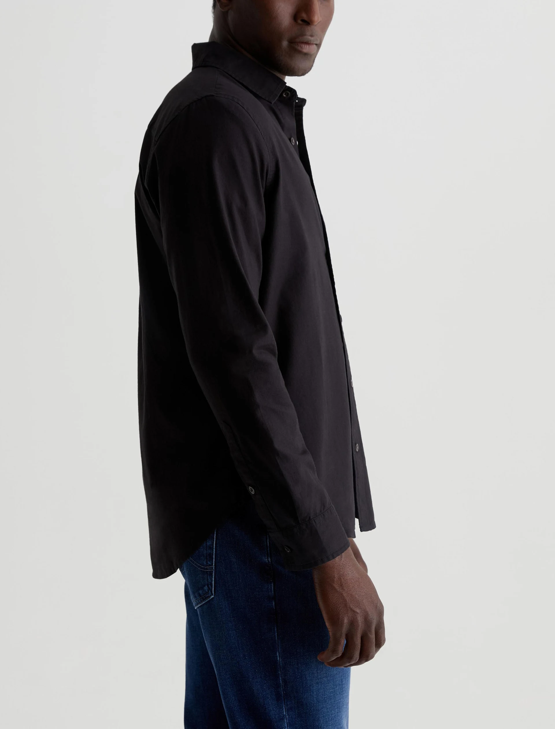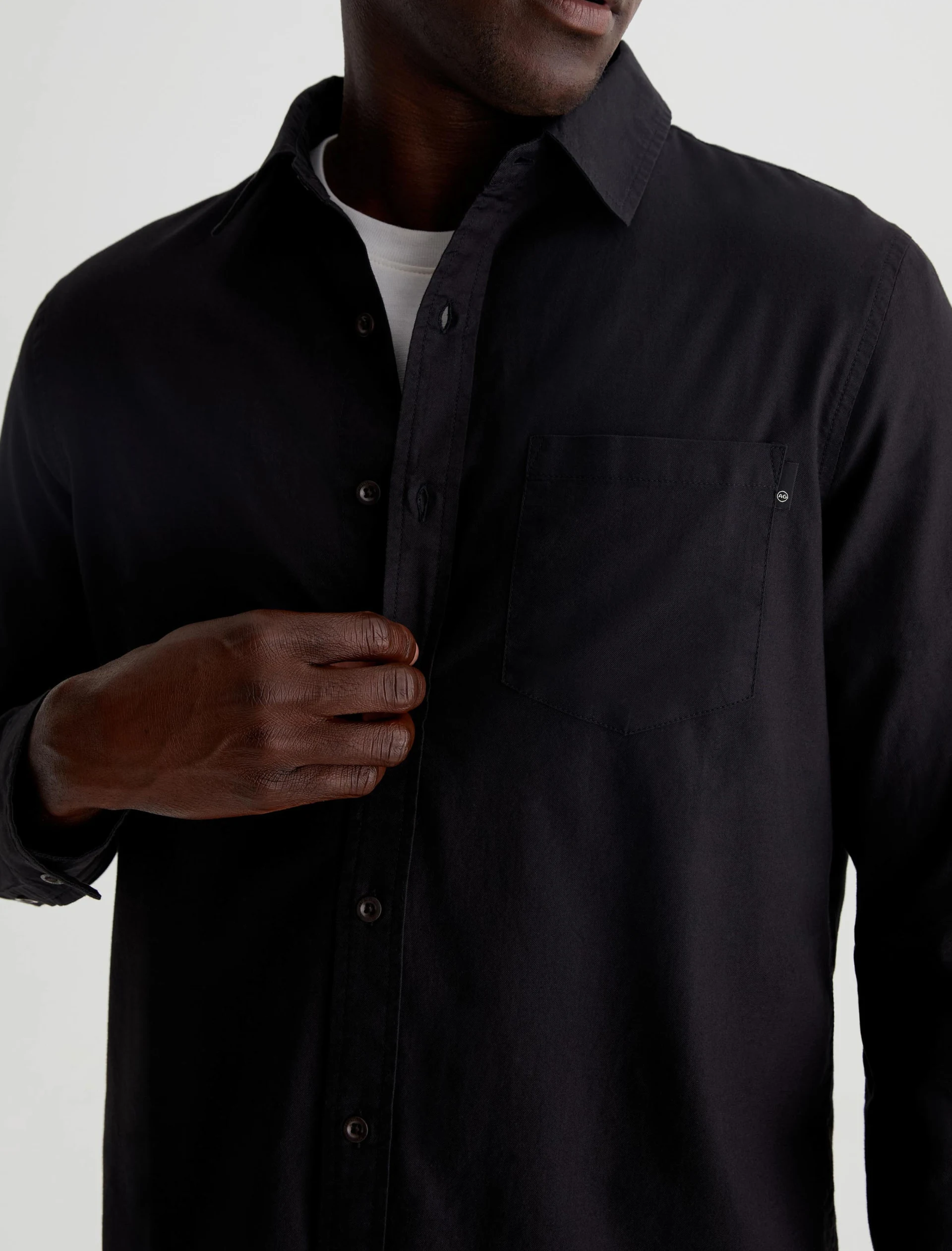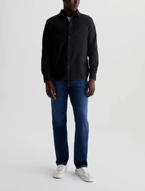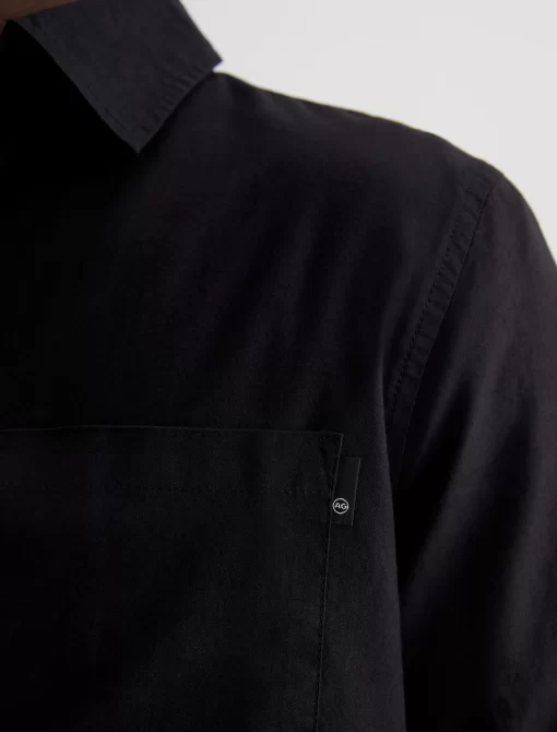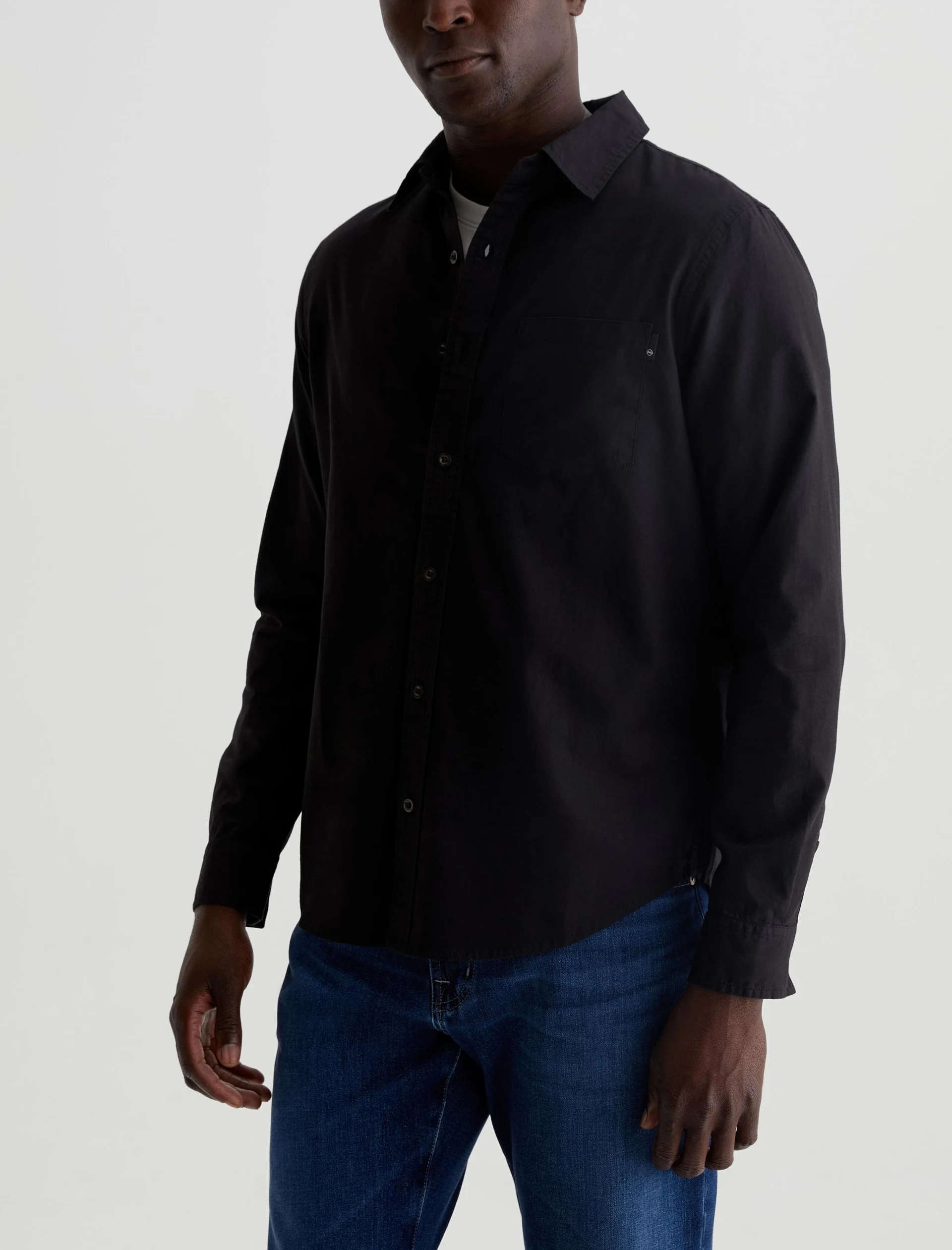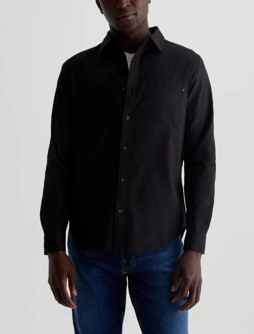 An essential you can wear in any season, the Aiden Shirt is cut for a classic fit in black shirting twill of 100% cotton. A chest pocket accents this timeless long-sleeve button-up.