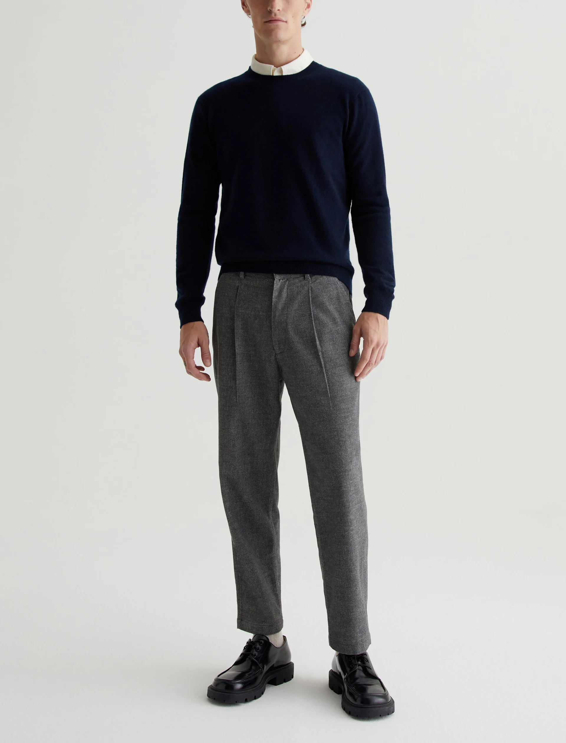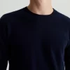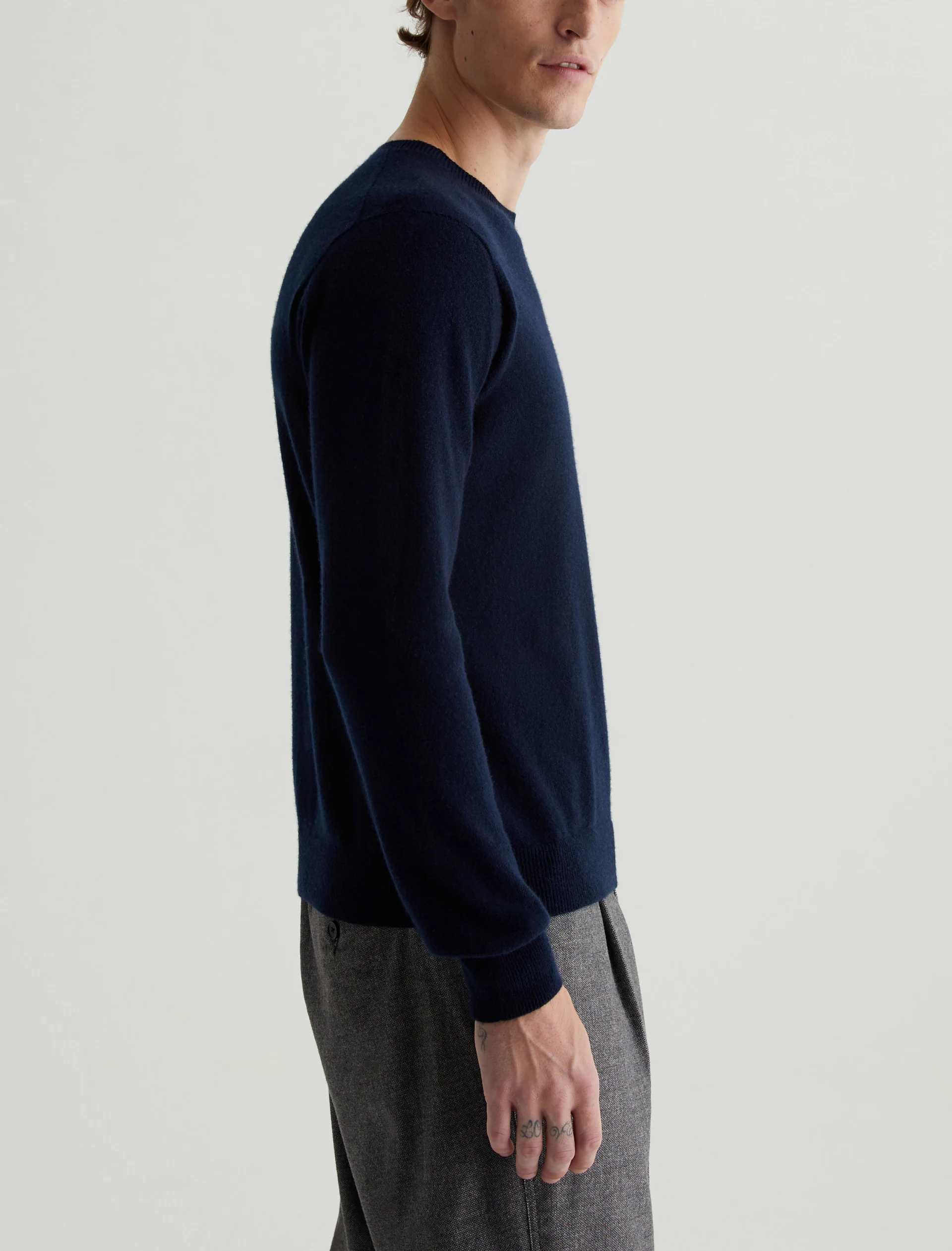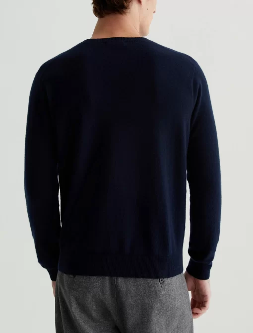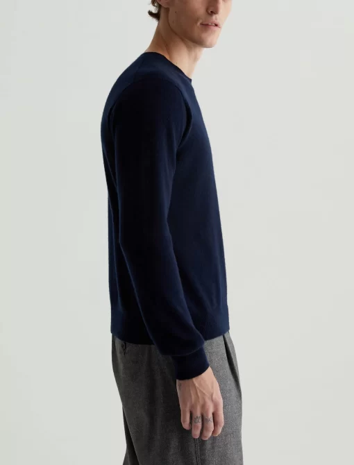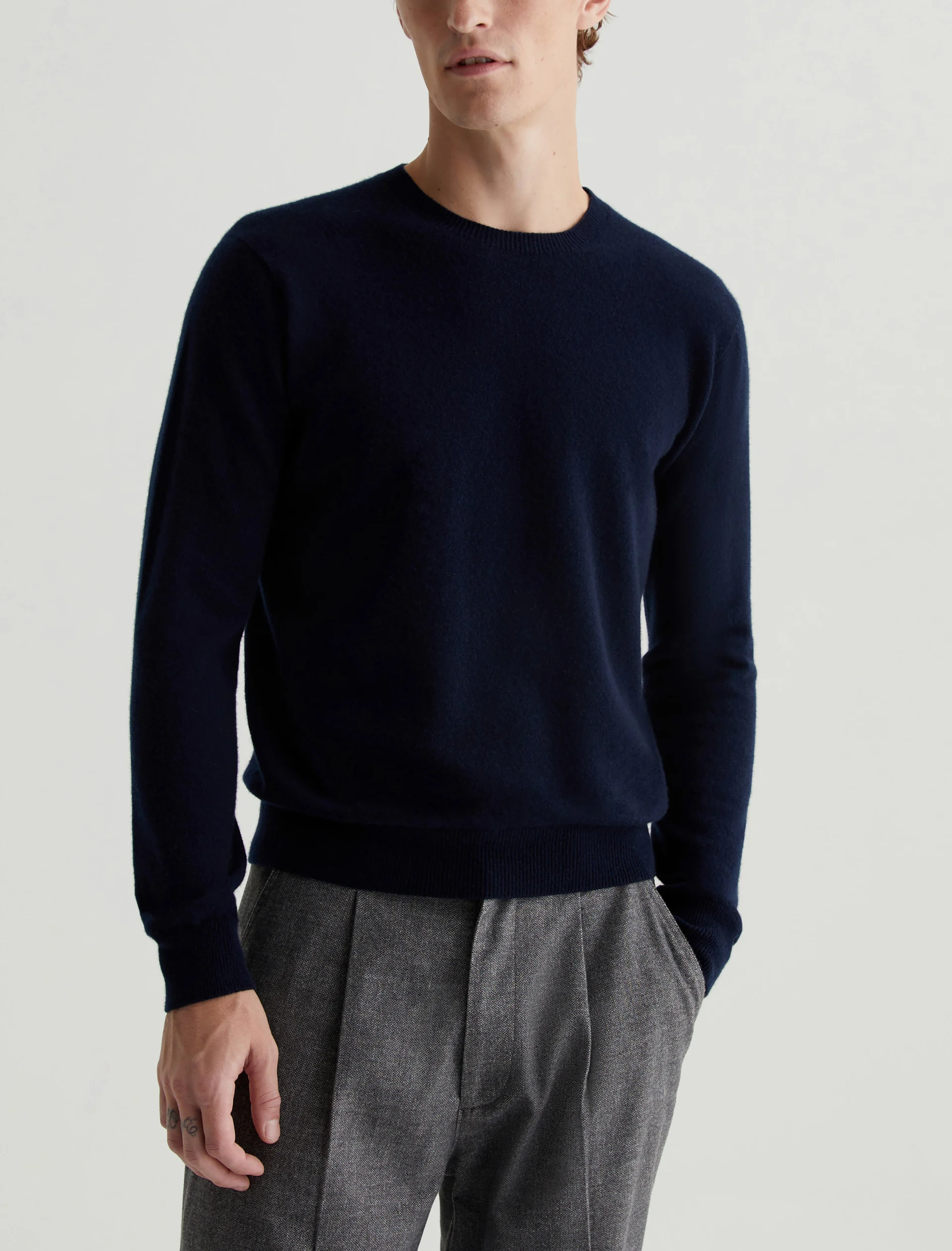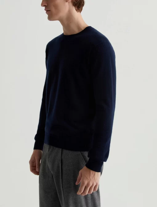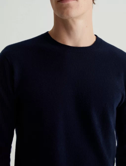 The Beck Crew is a classic-fit crewneck sweater with long sleeves, ribbed detailing, and a timeless navy shade. Spun from soft cashmere, it’s a luxe staple to wear on its own or layered under a jacket.