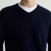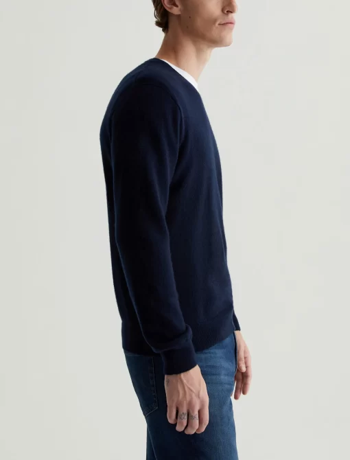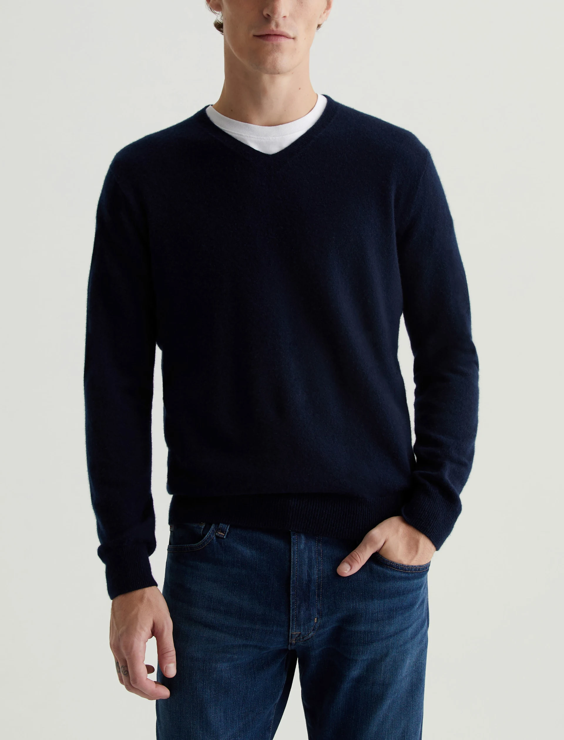 An elevated essential, the Beck Vee is a classic-fit V-neck sweater with long sleeves, ribbed detailing, and a timeless navy shade. It’s knitted from soft cashmere for a luxurious feel and lightweight warmth that’s easy to layer.