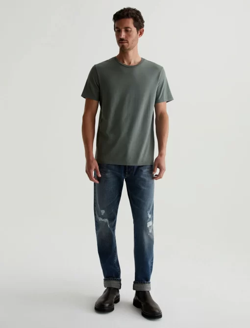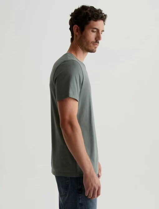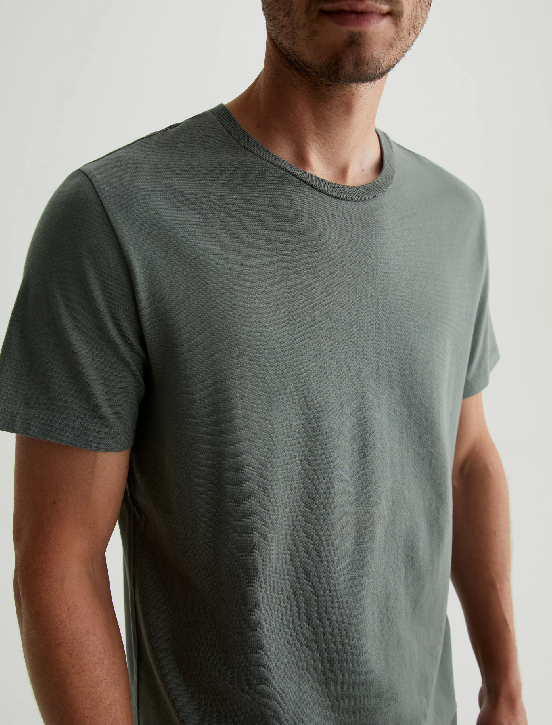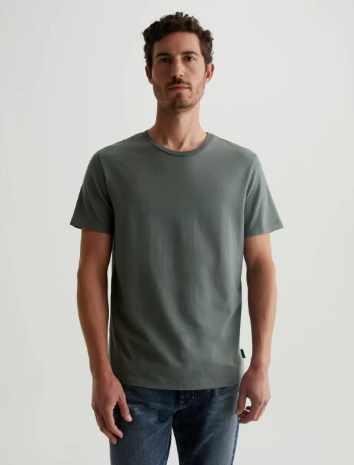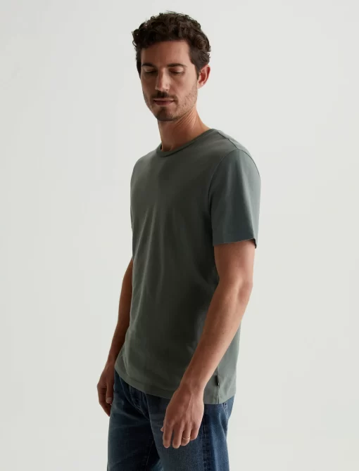 The Bryce Crew in hunter sage is a classic fit crewneck, short sleeve tee. The tee offers a 1X1 baby rib at the neck to create a great crew shape and serves as the perfect base when layering all year long. Our Jersey Knit offers a luxurious comfort that is unrivaled—knitted with both S-twist and Z-twist yarn to sustain