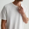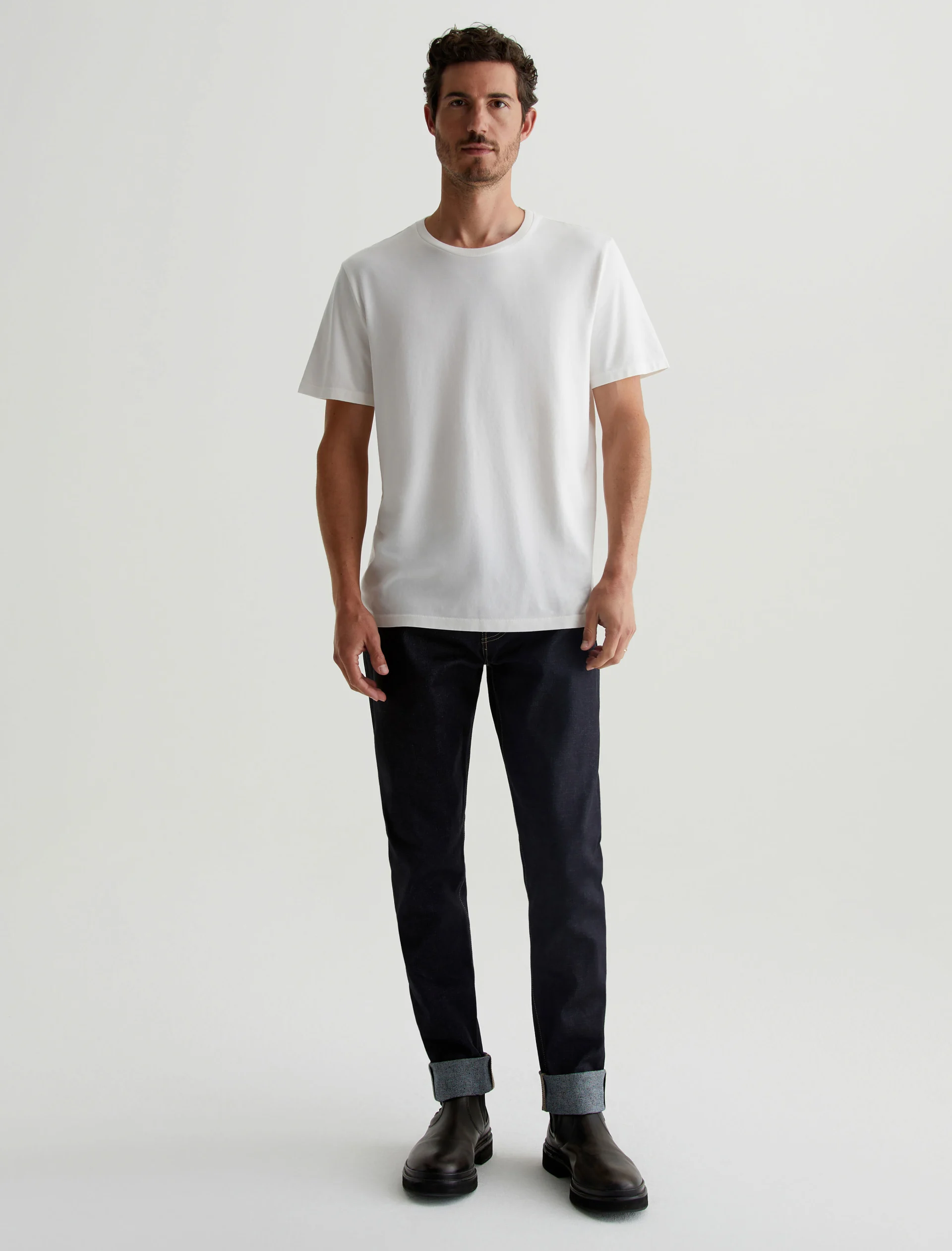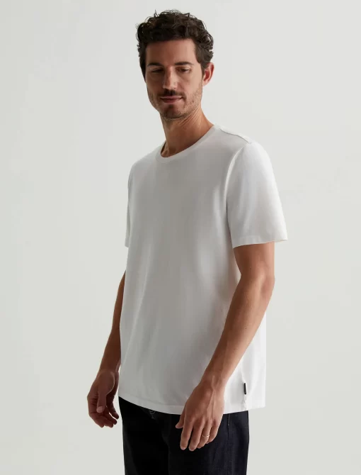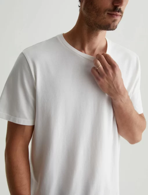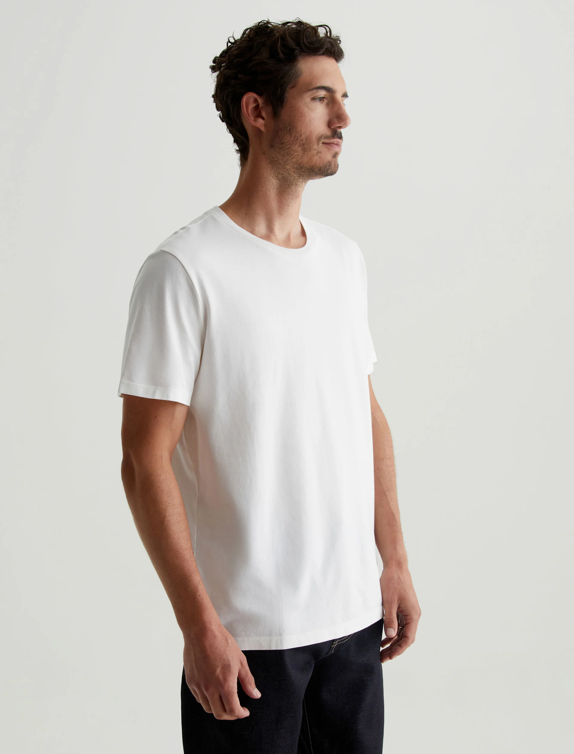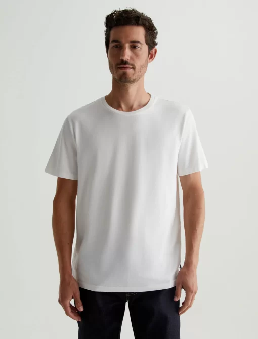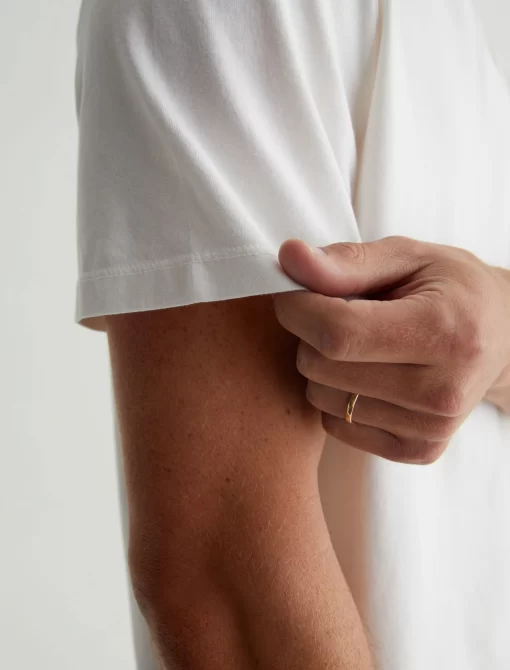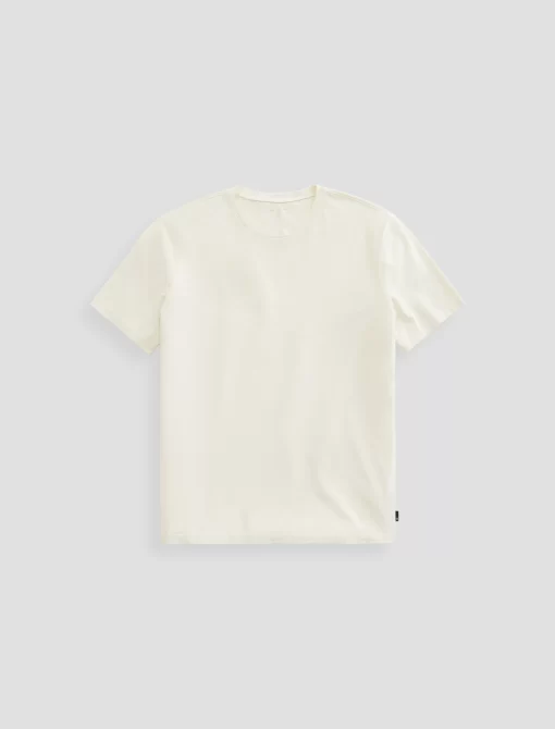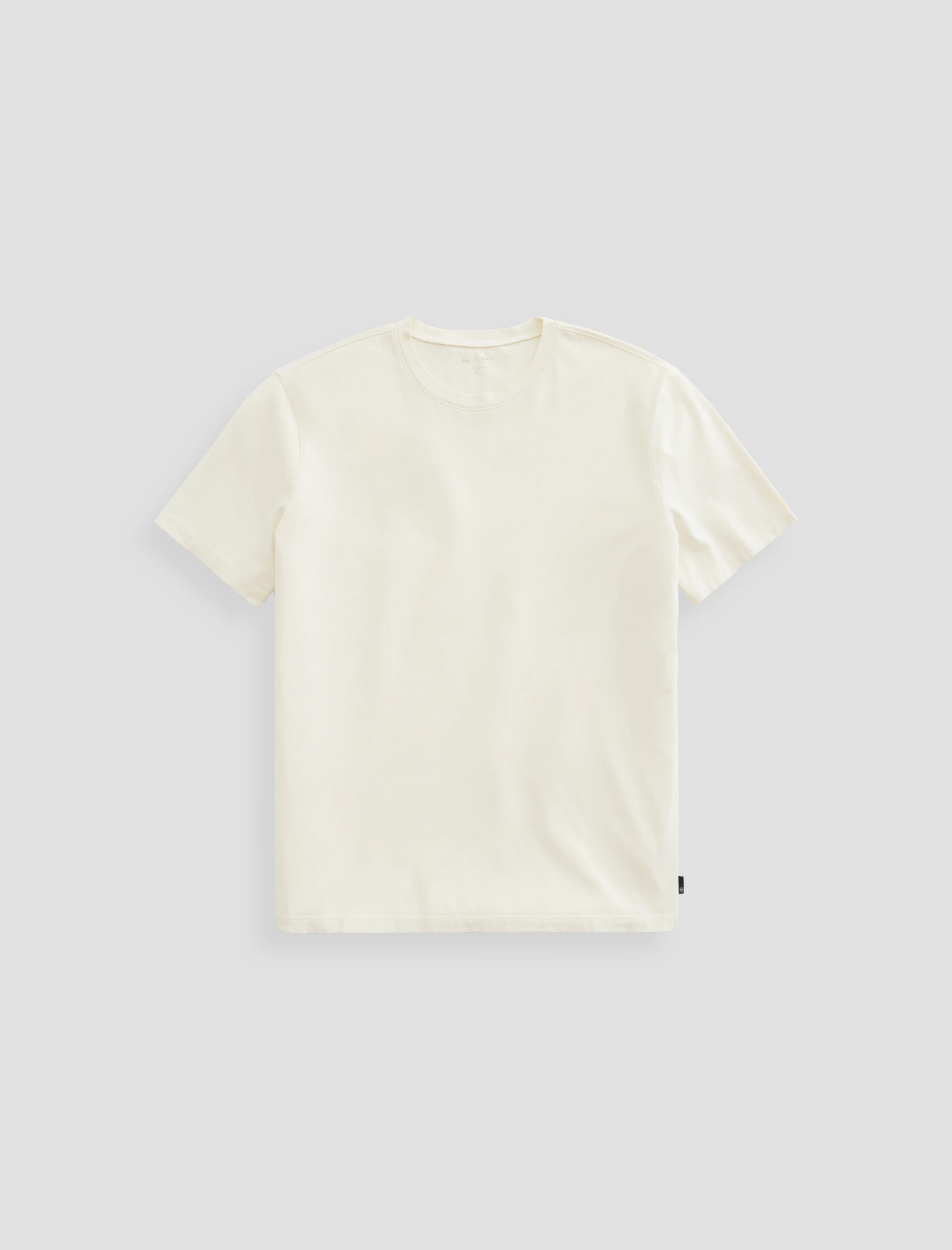 The Bryce Crew in ivory dust is a classic fit crewneck, short sleeve tee. The tee offers a 1X1 baby rib at the neck to create a great crew shape and serves as the perfect base when layering all year long. Our Jersey Knit offers a luxurious comfort that is unrivaled—knitted with both S-twist and Z-twist yarn to sustain