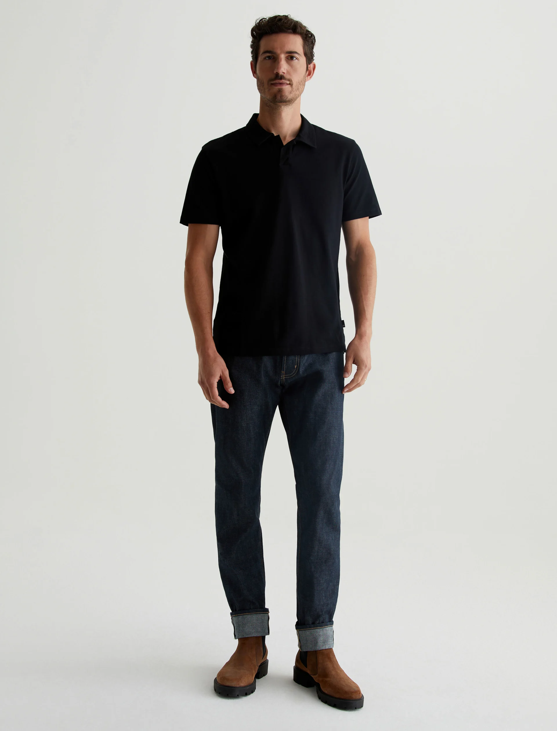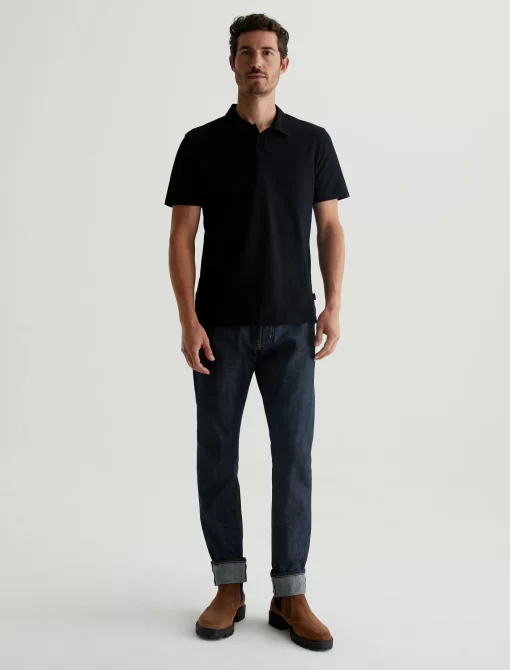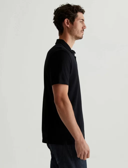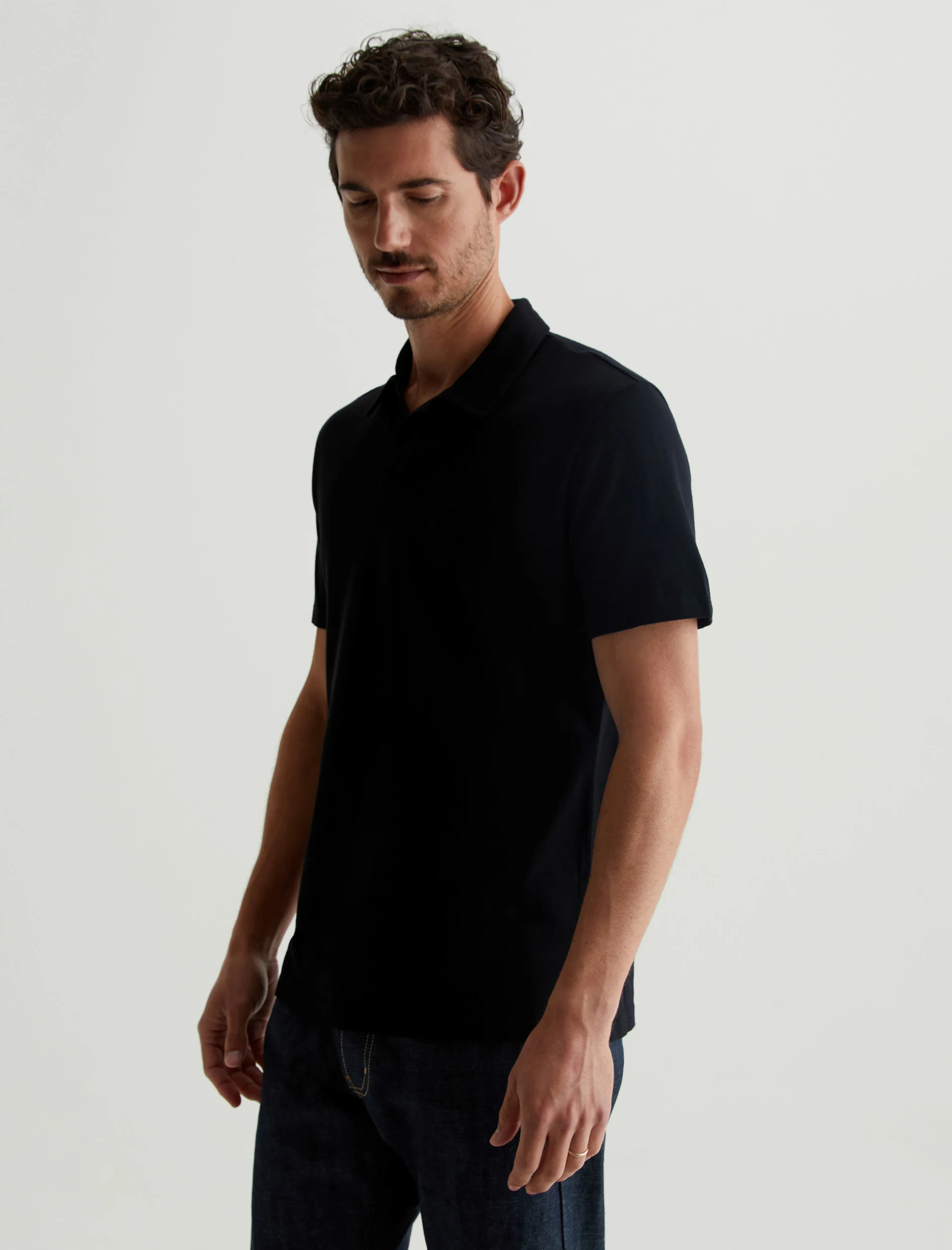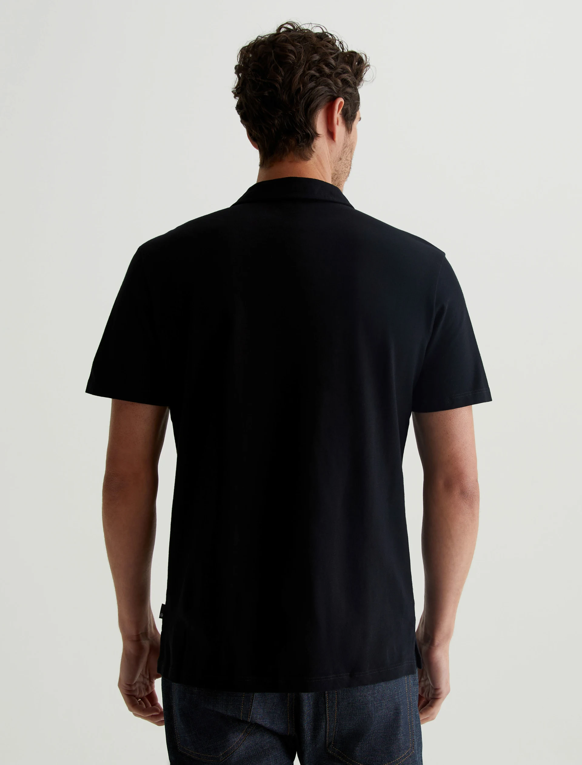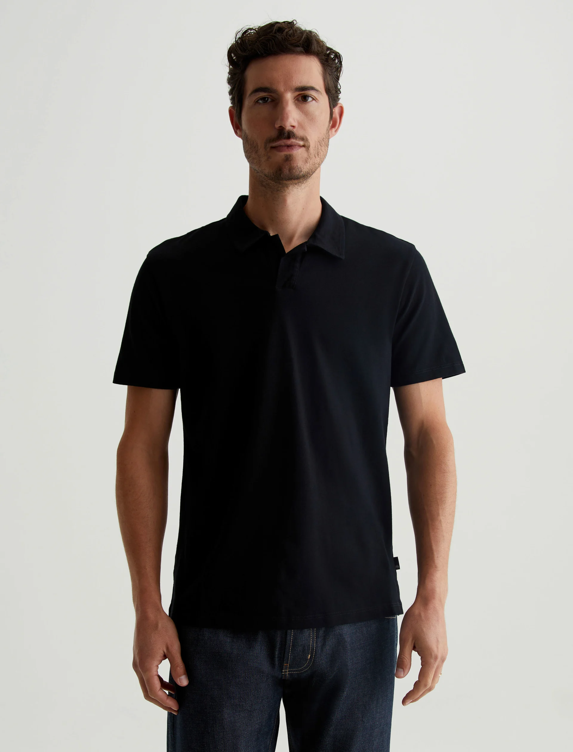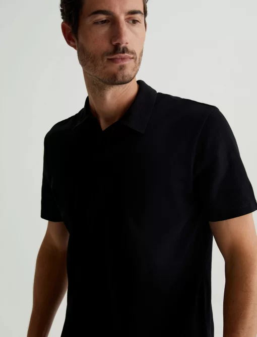 The Bryce Johnny Collar shirt is a classic short-sleeve polo tee with a relaxed neckline and pointed collar. Crafted from our Light Cotton Jersey in black, it’s soft and easy to wear—the perfect companion to a pair of jeans or something a little more tailored.