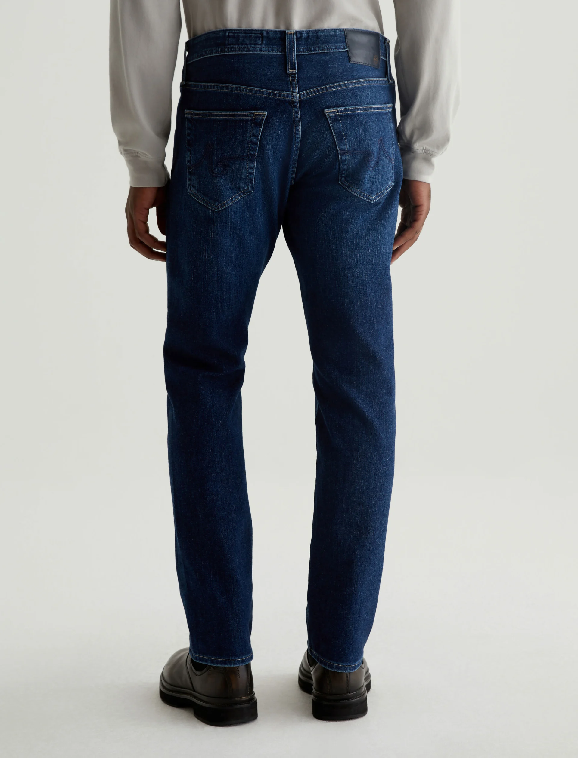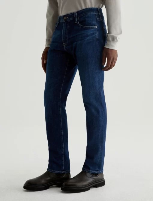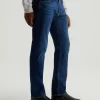 Everett is a slim straight jean for men featuring a dark denim wash—cut in a comfortable mid-rise waist with a straight fit that’s relaxed from hip to the knee before slightly tapering at the leg opening. This men’s slim straight jean is designed in 11 oz. Flex 360° Denim.