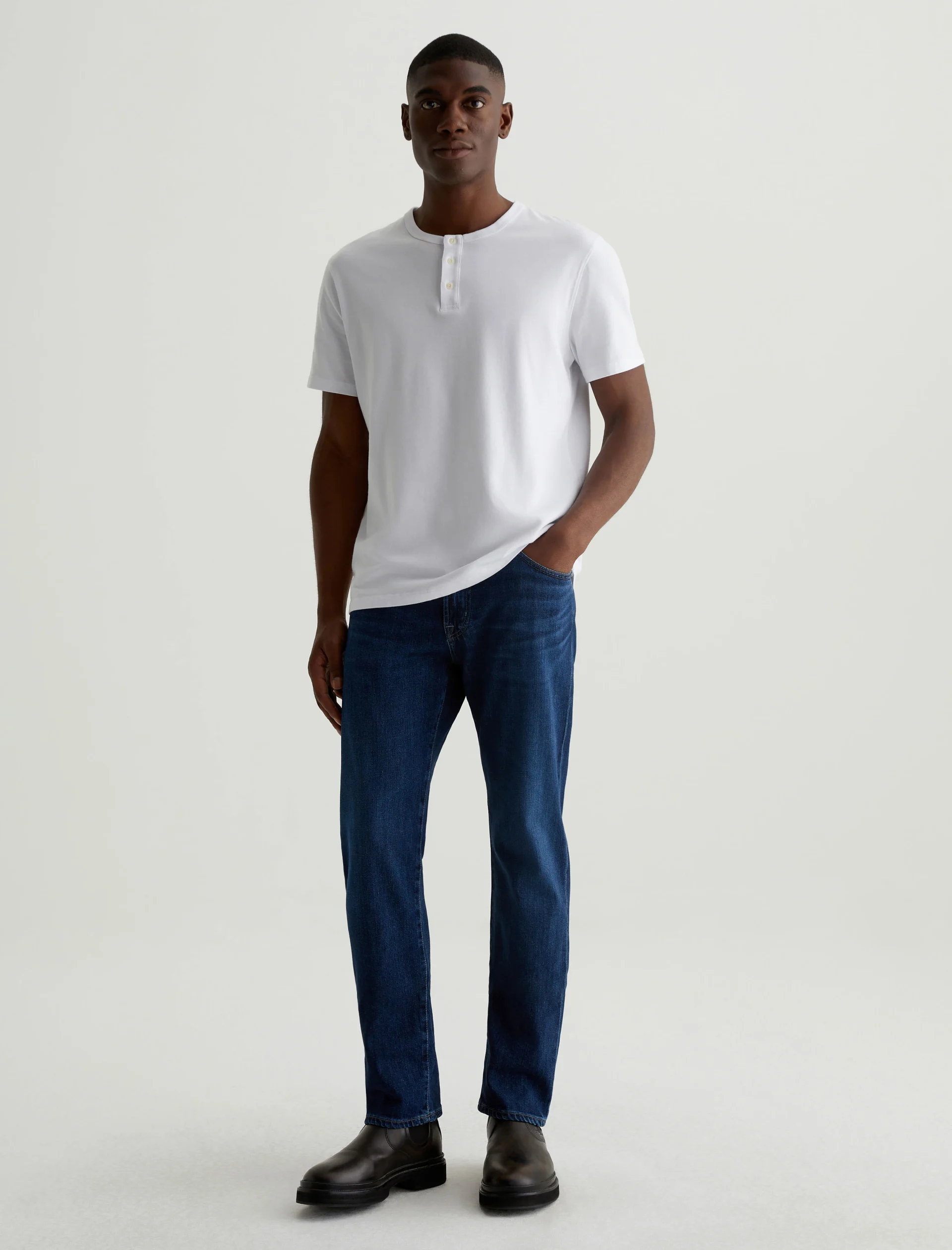 The Everett is a slim straight jean for men, done here in a dark wash with a bit of fading. It’s cut with a comfortable mid-rise waist and a straight fit that’s relaxed from hip to the knee before slightly tapering at the leg opening. This men’s slim straight jean is designed in 10 oz. Daytripper Stretch Denim.