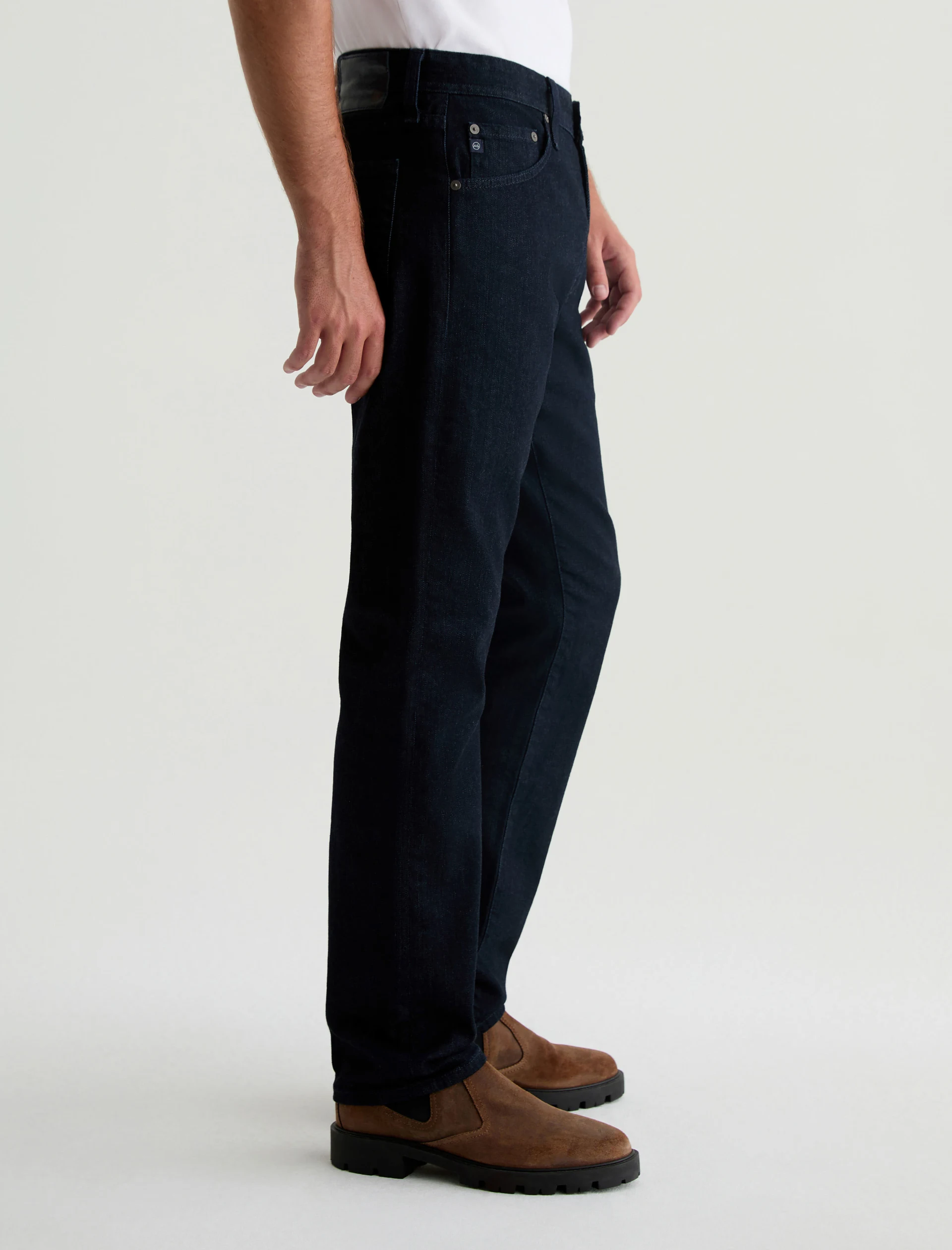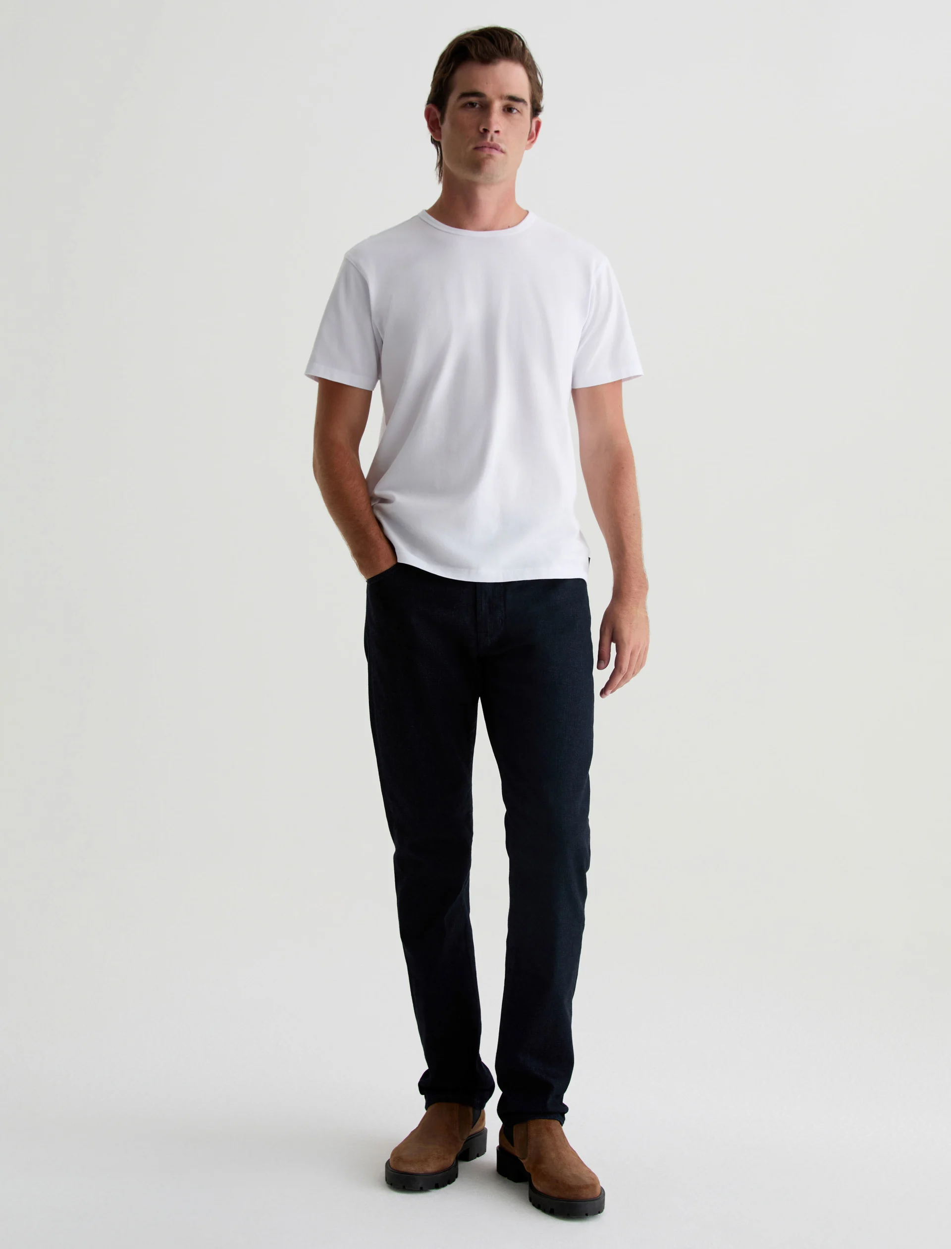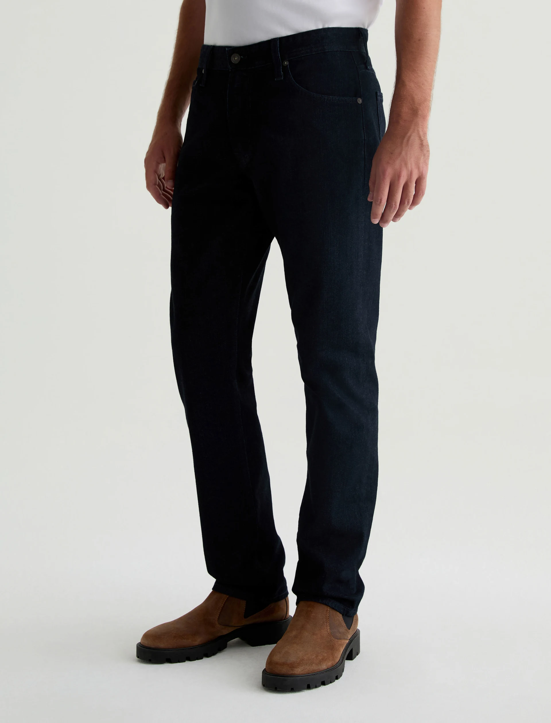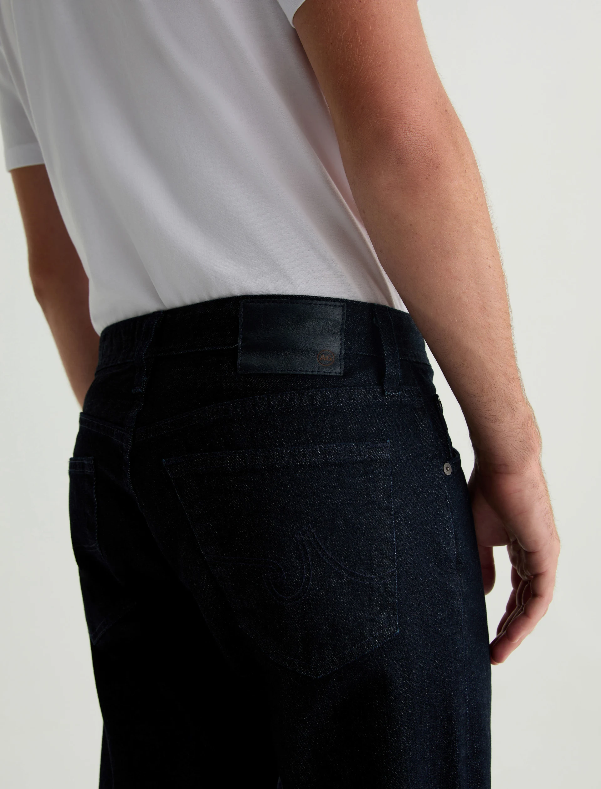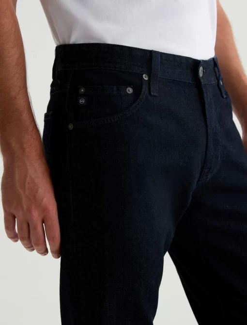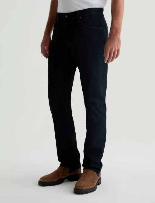 Everett is a slim straight jean for men featuring a dark denim wash—cut in a comfortable mid-rise waist with a straight fit that’s relaxed from hip to the knee before slightly tapering at the leg opening. This men’s slim straight jean is designed in 7.8 oz. Luscious Super Stretch Sateen.