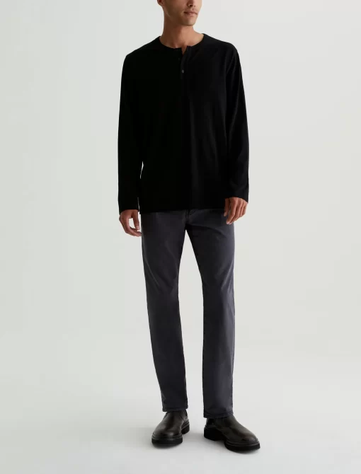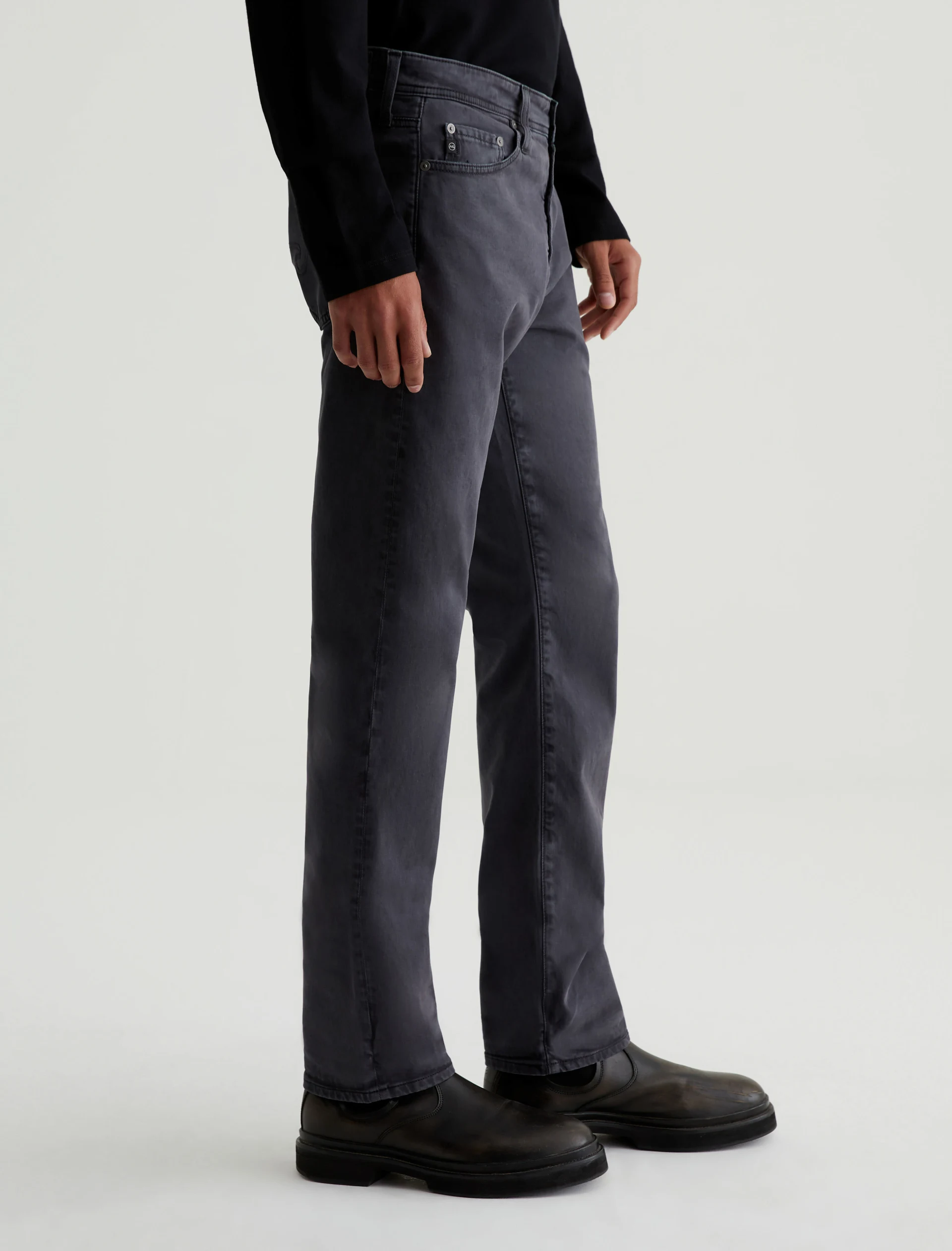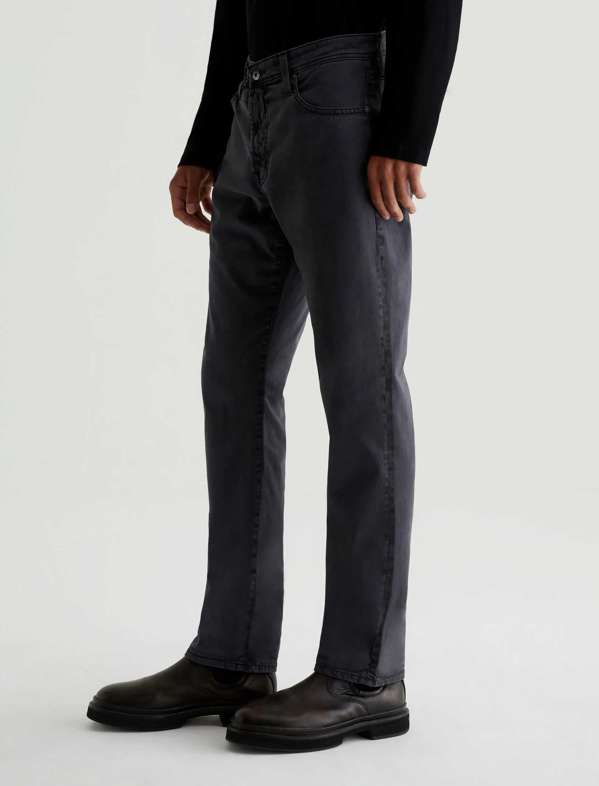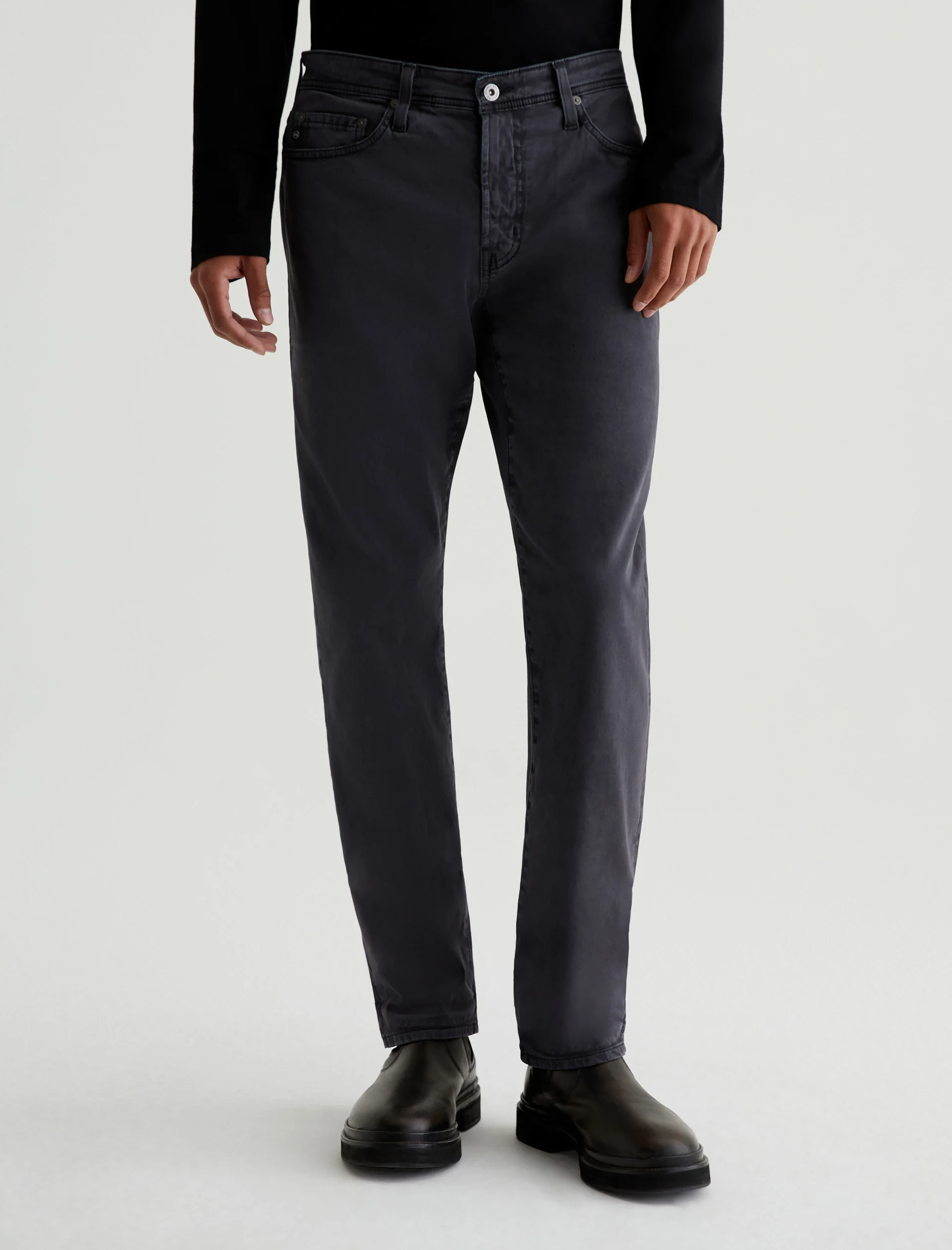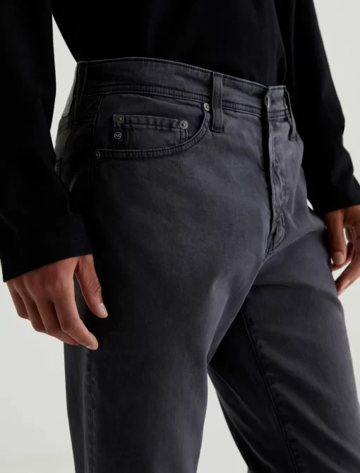 Our Everett slim-straight men’s pants have a refined look and soft, supple feel in AG’s best-selling 8.4 oz. Sueded Stretch Sateen from Italy. Featuring a sulfur-dyed grey shade, this pair features a comfortable mid-rise waist and a straight fit that’s relaxed from hip to knee before slightly tapering at the leg openin