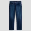 Our Everett slim-straight jeans in temperature-regulating denim are designed to keep you warm as the days get cooler. Featuring a brilliant medium-blue wash with fading and whiskering, these five-pocket men’s jeans have a comfortable mid-rise waist and a straight fit that’s relaxed from hip to knee before slightly tape