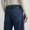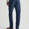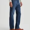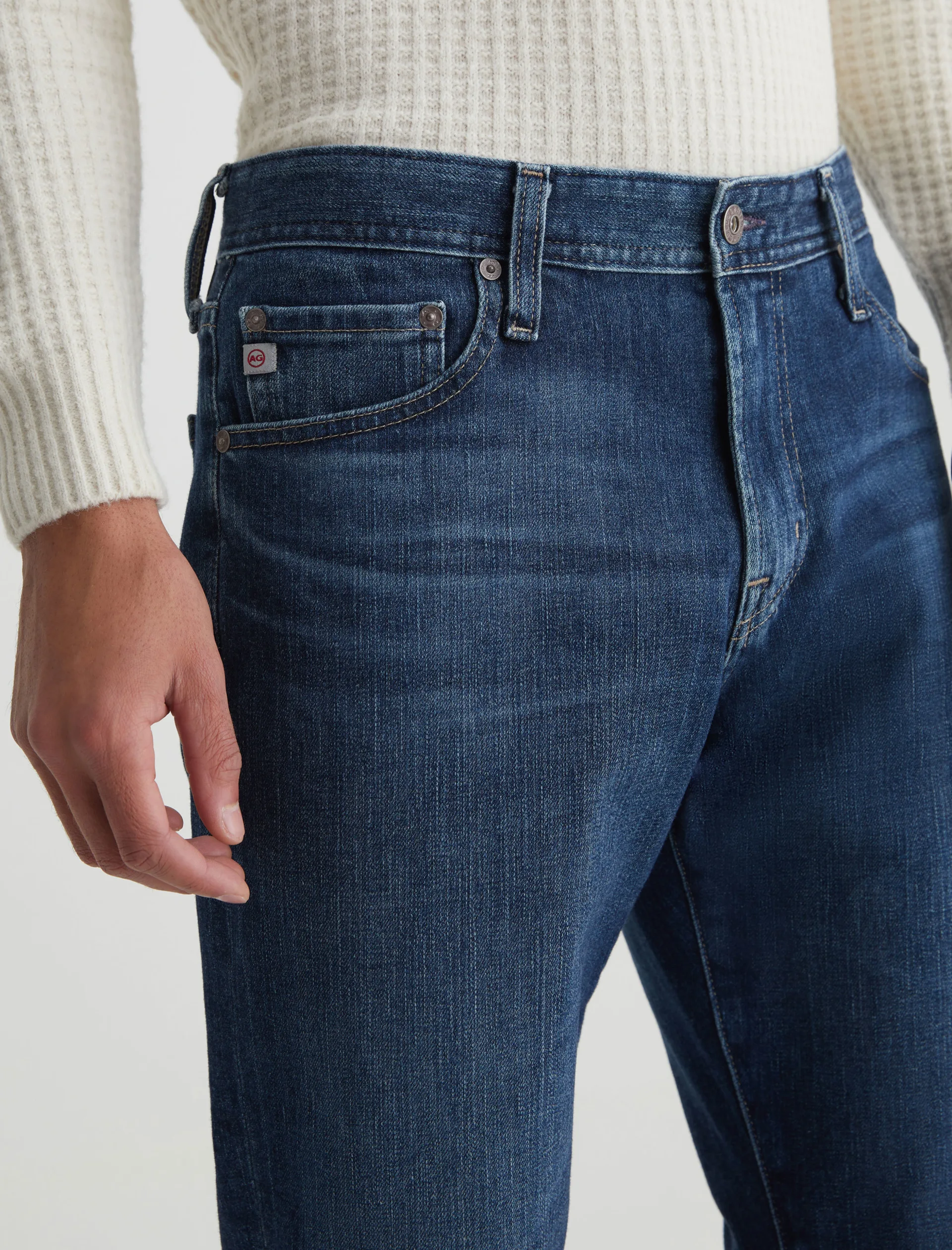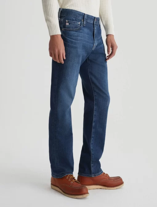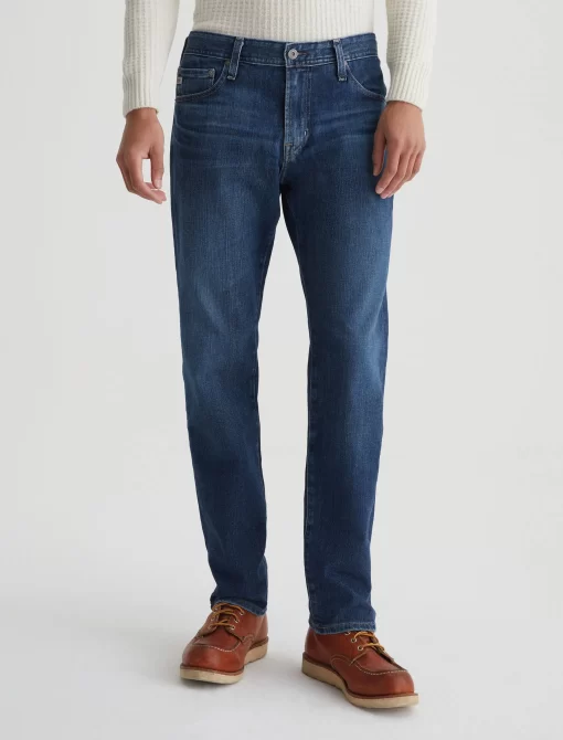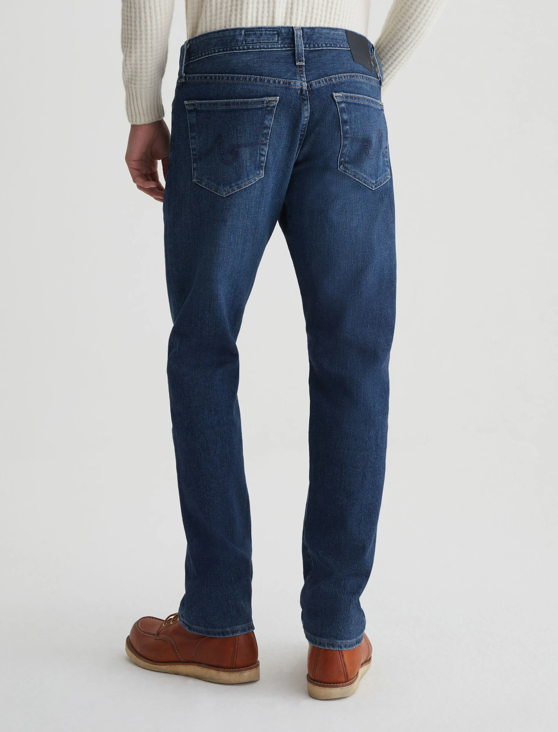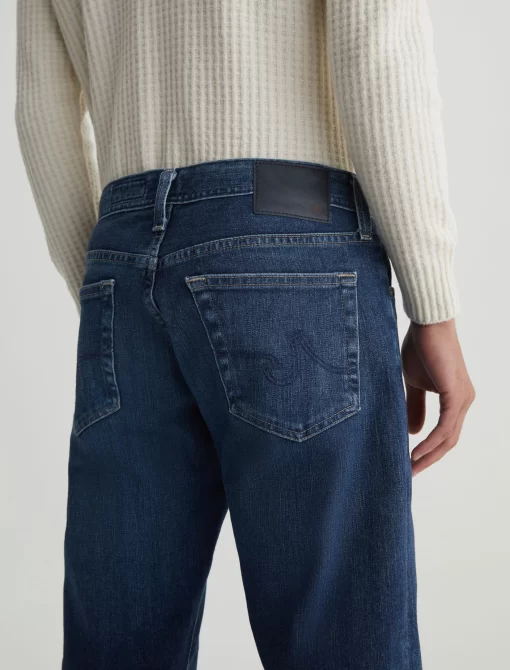 Graduate is a tailored leg jean for men featuring a medium-dark wash. Graduate is cut in a slim mid-rise waist with a relaxed fit from the hip to the knee before tapering at the leg opening. This men’s slim straight jean is designed in 11 oz. Flex 360° Denim.