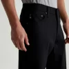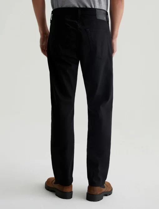 Graduate is a tailored leg jean for men featuring a rich black hue. Graduate is cut in a slim mid-rise waist with a relaxed fit from the hip to the knee before tapering at the leg opening. This men’s slim straight jean is designed in 10 oz. Dover Stretch Denim.