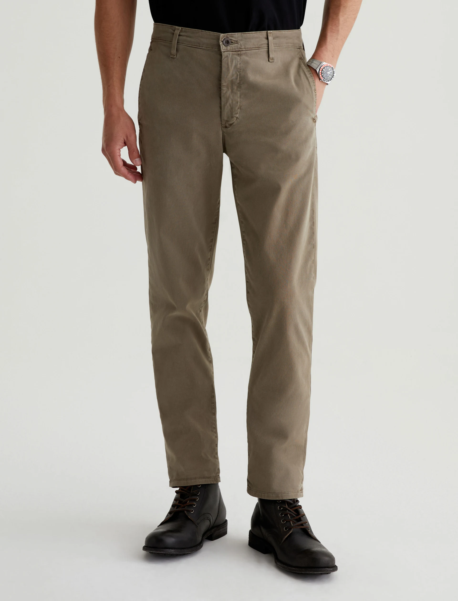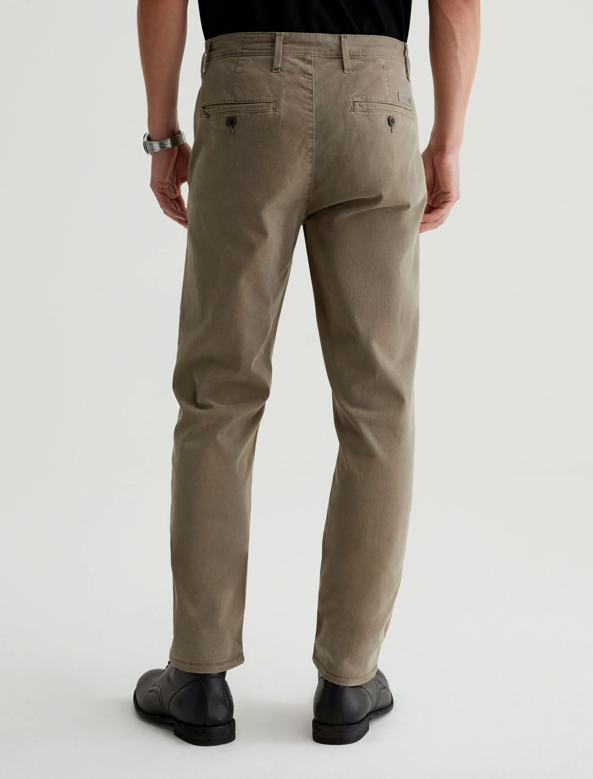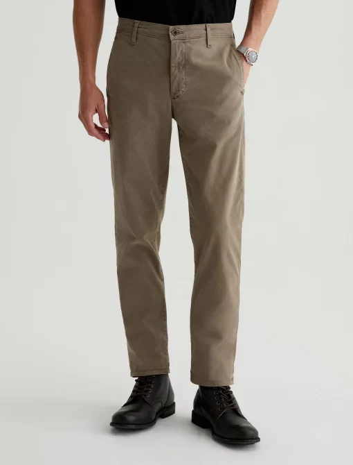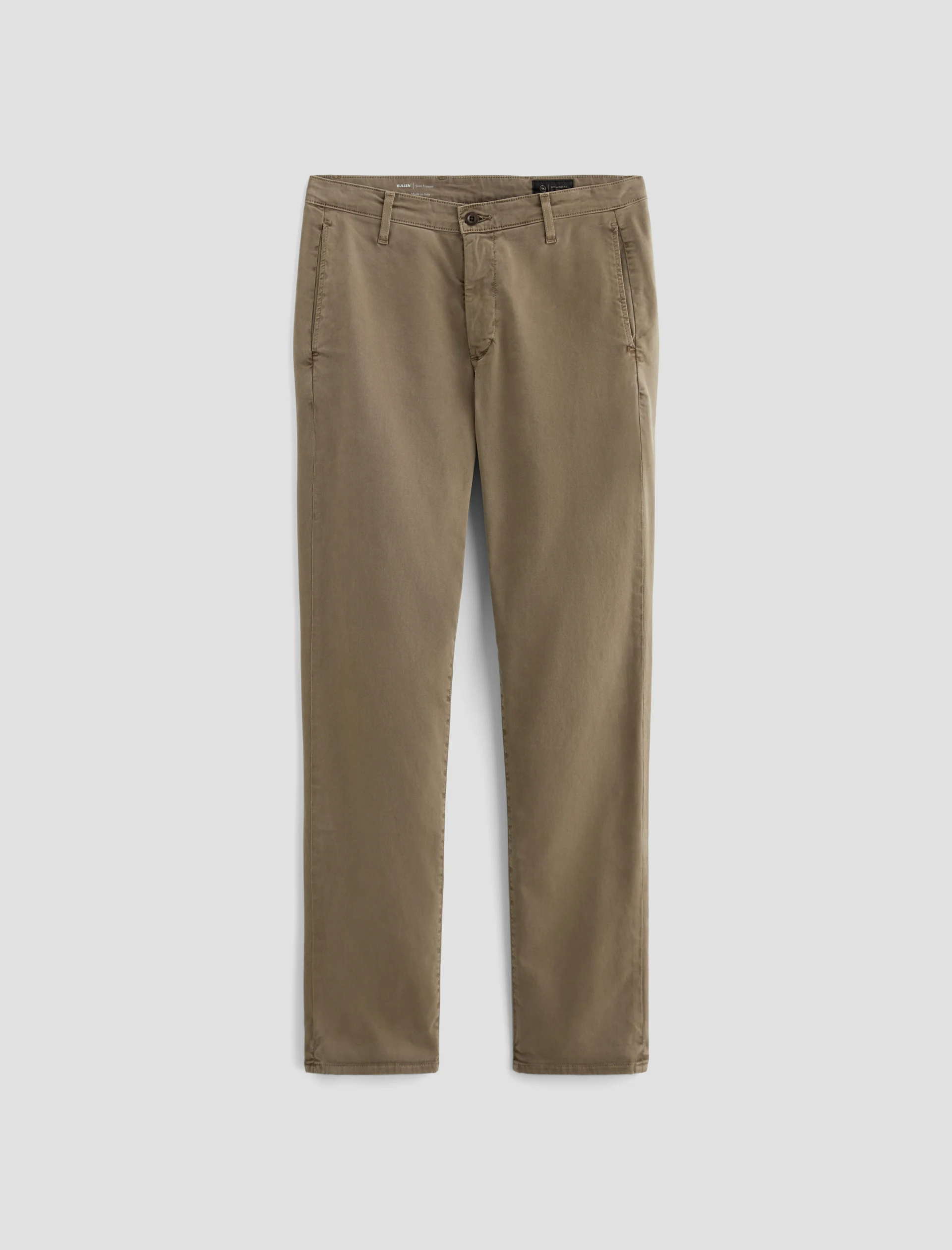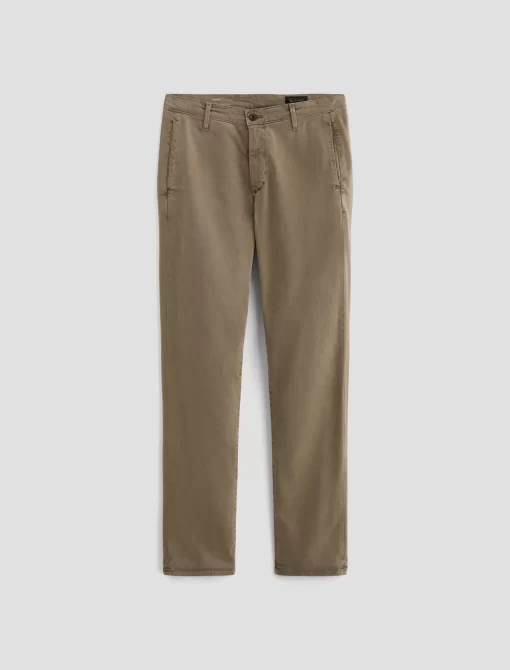 Kullen is a slim trouser crafted in 7.9 oz. Sorrento Stretch Twill, a refined Italian fabric. Sulfur-dyed for a light green shade, these slim-cut men’s pants feature on-seam pockets for a streamlined aesthetic. Welt pockets with button closures detail the back.