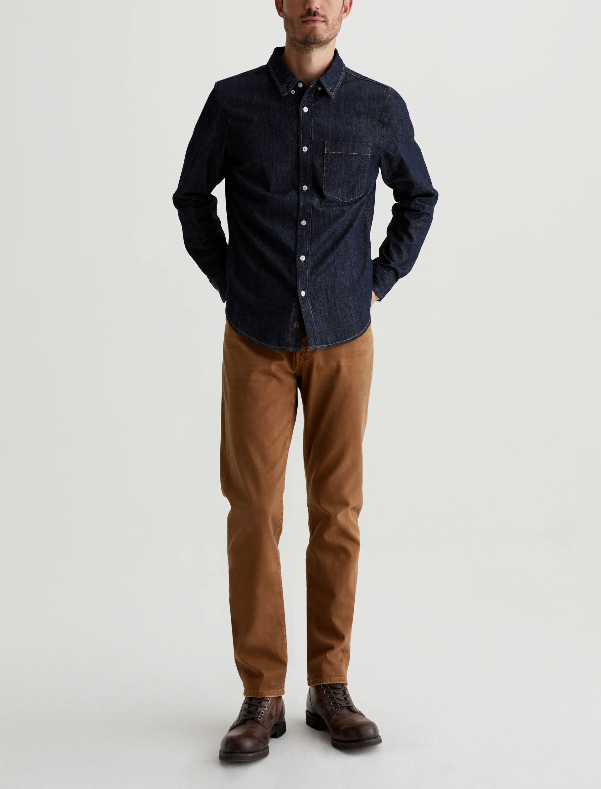 Tellis is a modern slim fit for men, updated here in a rust color. It’s got an AG-ed™ finish to emulate 7 years of authentic wear. Featuring a fitted upper block with a mid-rise waist, these five-pocket men’s jeans have slim legs that taper down to the ankle in 8.7 oz. Hyper Soft Bull Denim, our velvety left-hand twill