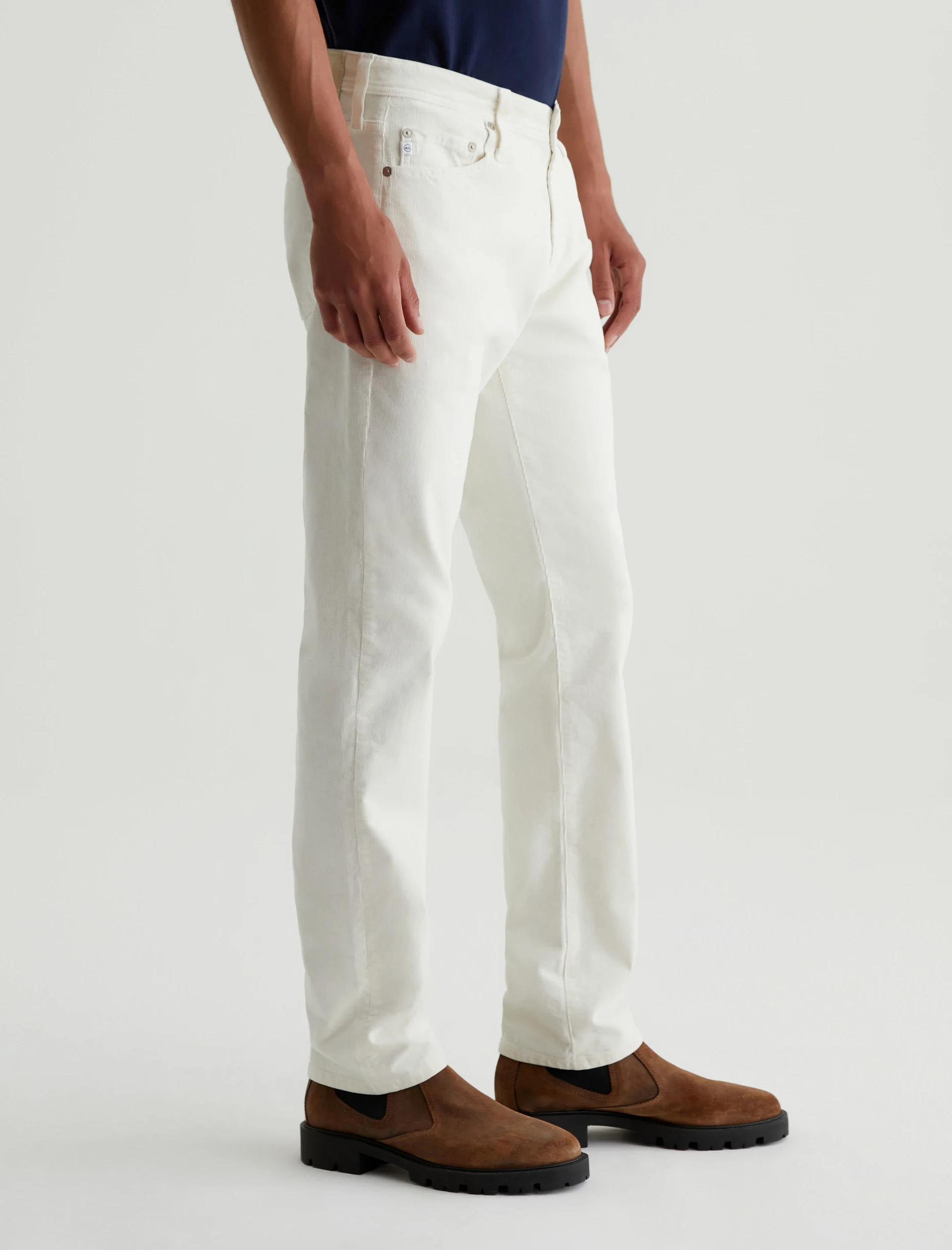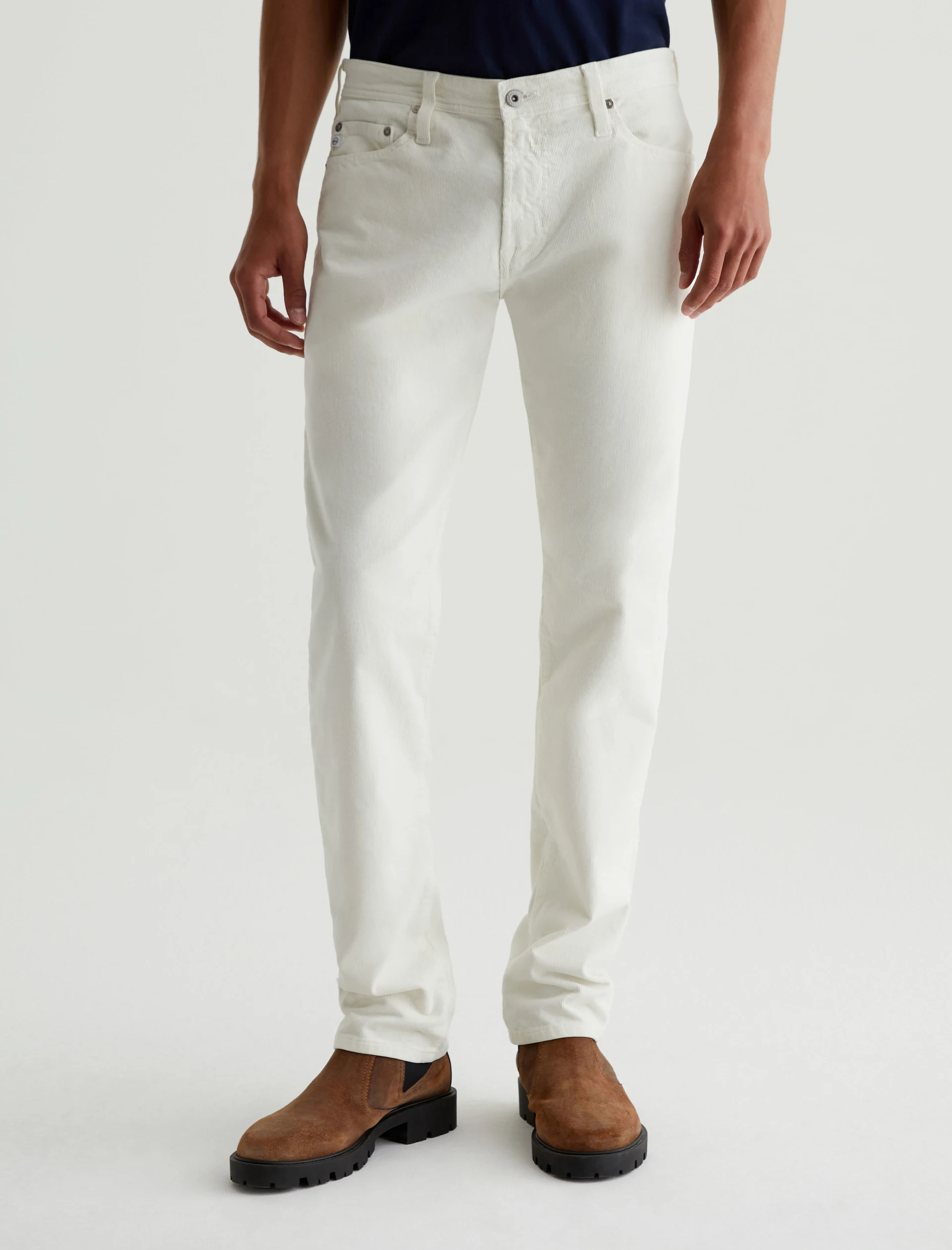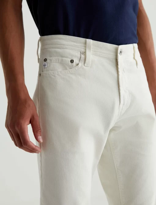 Our Tellis Corduroy men’s pants have a modern slim fit in 8.8 oz. Range Stretch Cord, a plush fine-wale fabric from Japan. Featuring a cream shade, this five-pocket style has a fitted upper block and a tapered leg opening.