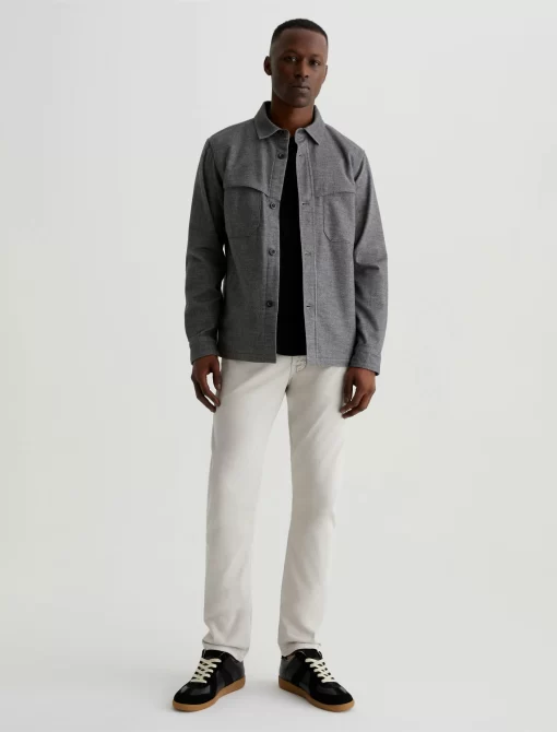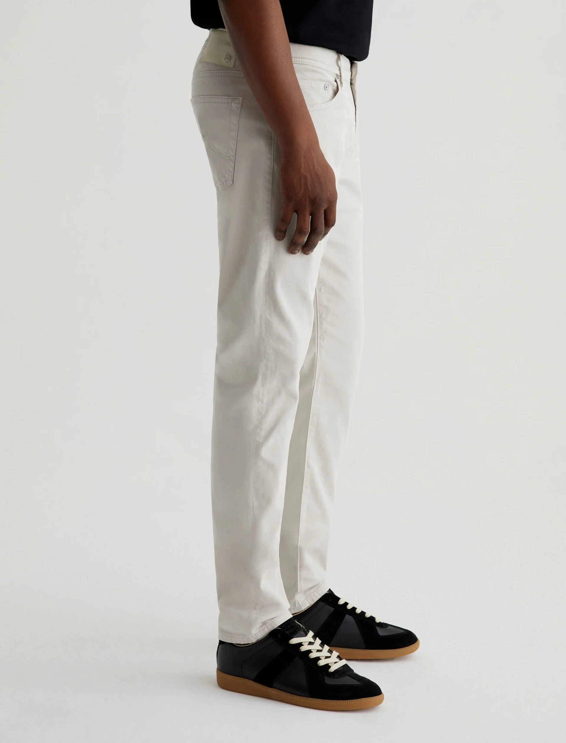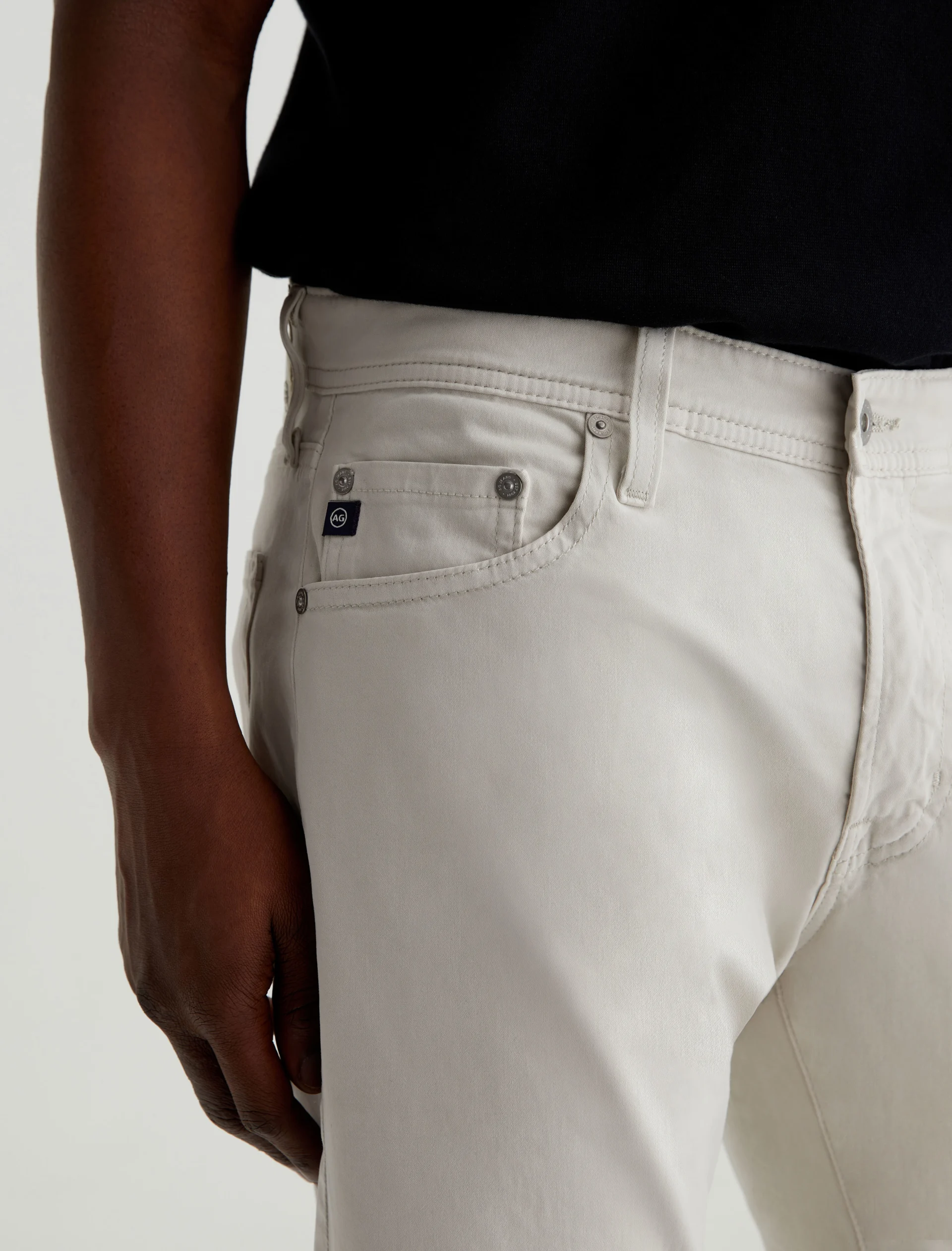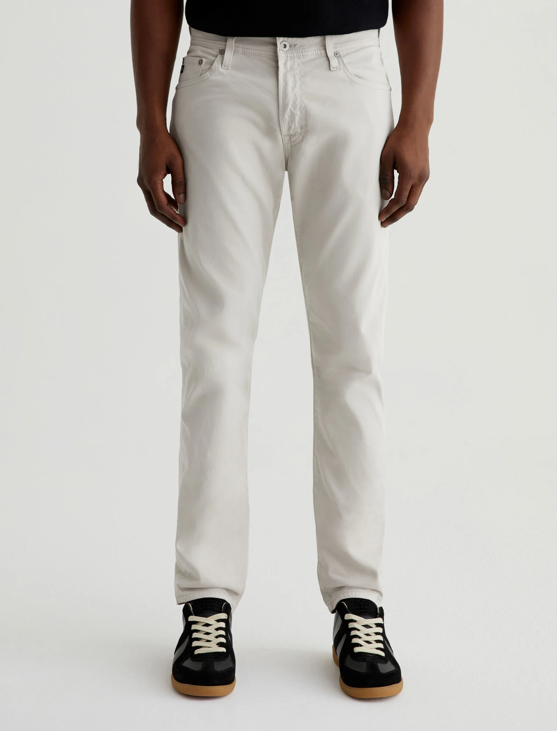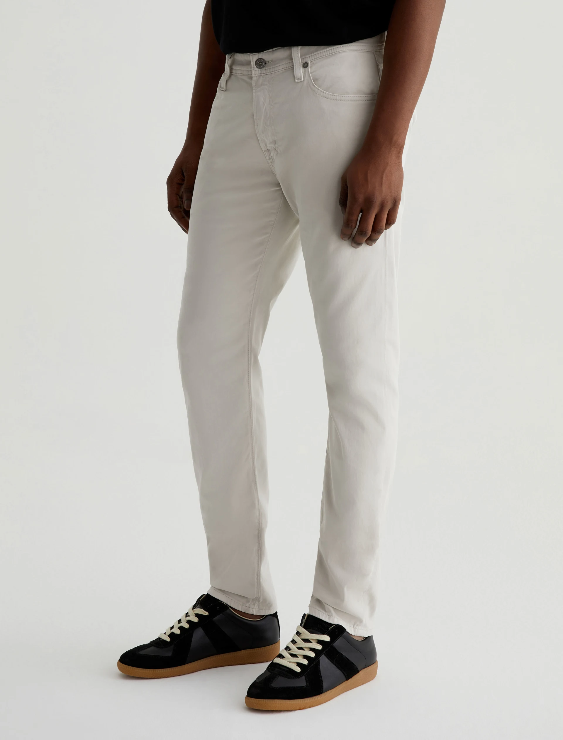 Tellis is our modern slim fit for men, updated here in ultra-pale grey that reads nearly white. The style has a mid-rise waist, fitted upper block, and tapered leg openings. These five-pocket men’s pants are cut from lightweight 8.4 oz. Sueded Stretch Sateen from Italy—it’s soft, refined, and incredibly comfortable.