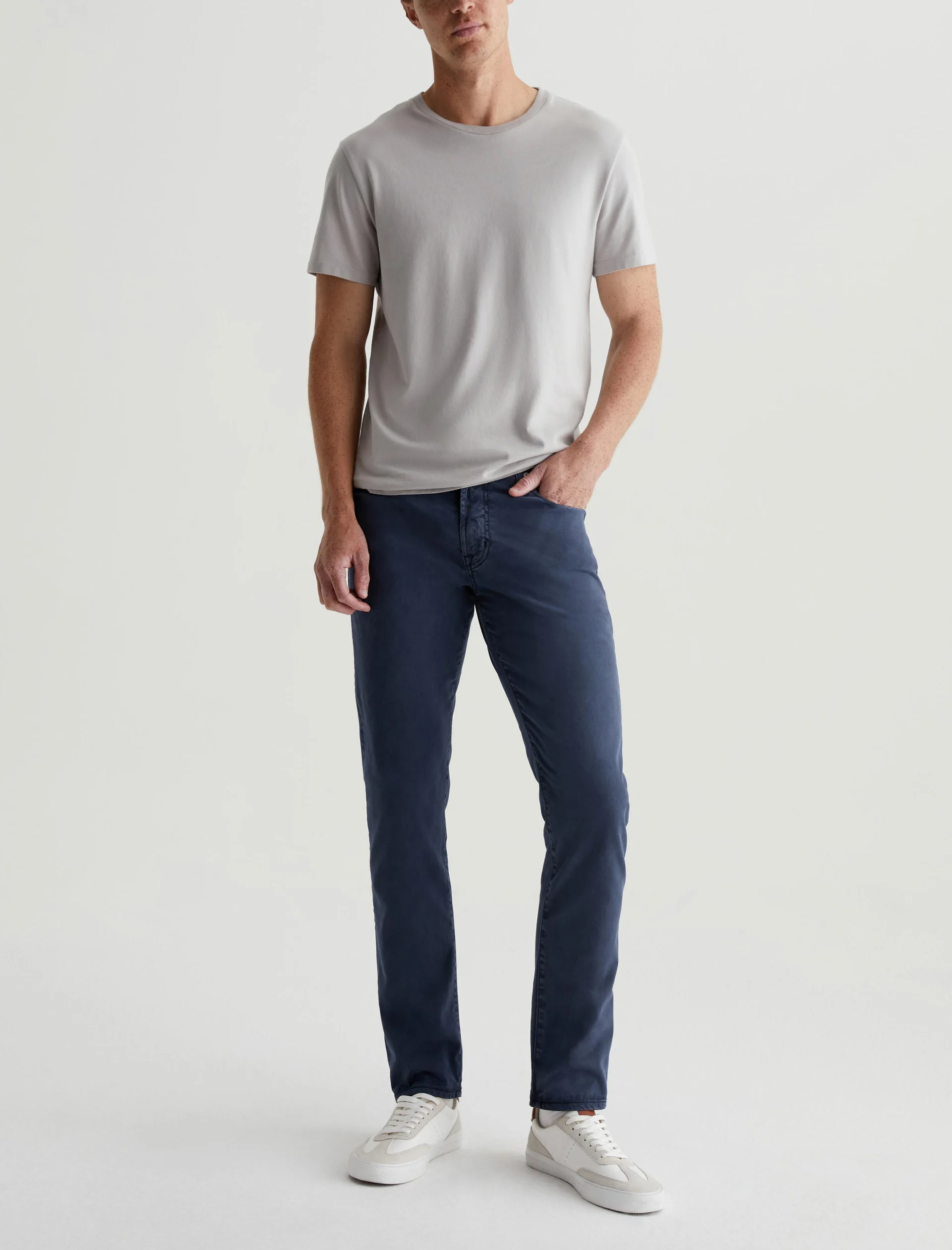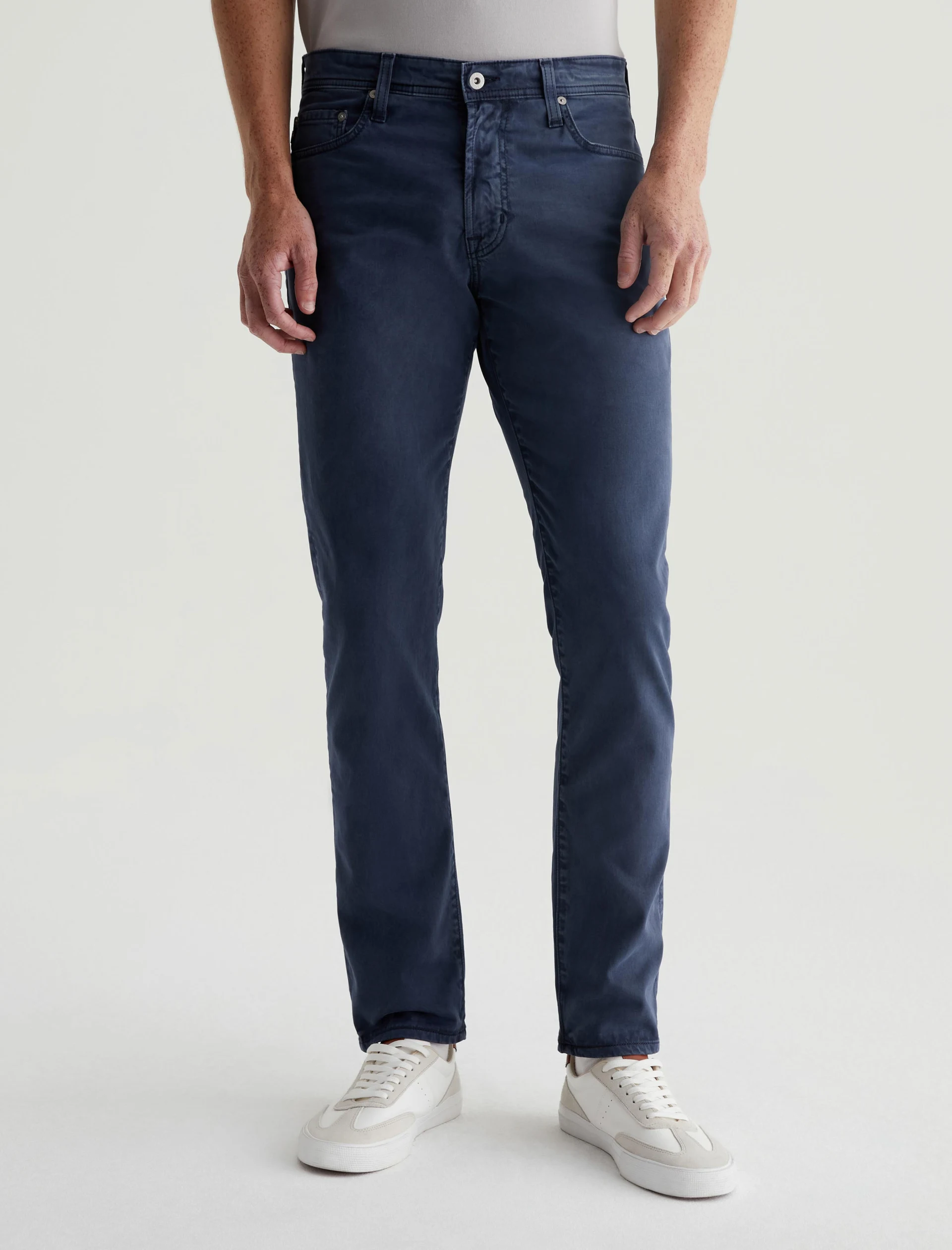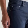 Tellis is our modern slim fit with a fitted upper block and a tapered leg opening. Sulfur-dyed for a dark blue shade, these five-pocket men’s pants are soft, refined, and incredibly comfortable in lightweight Sueded Stretch Sateen from Italy.