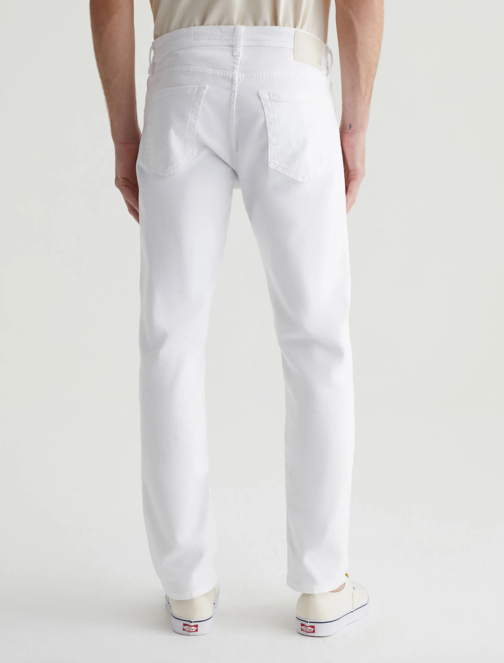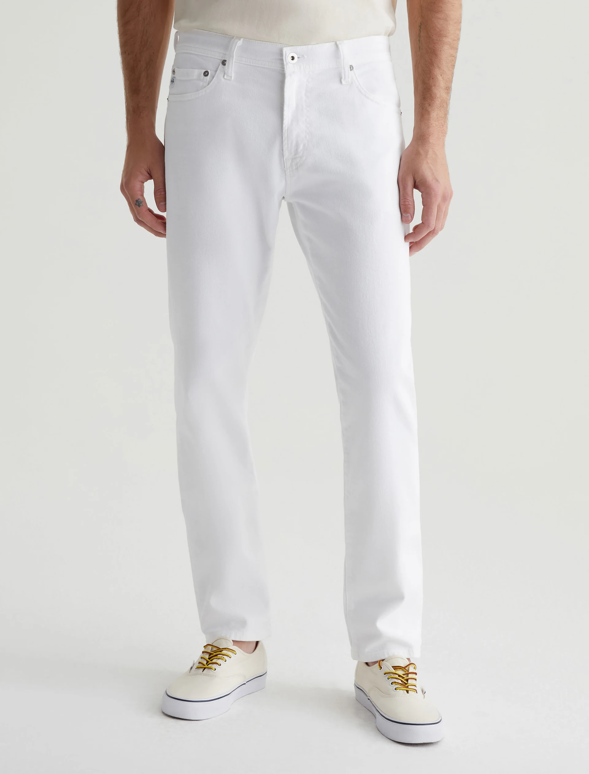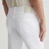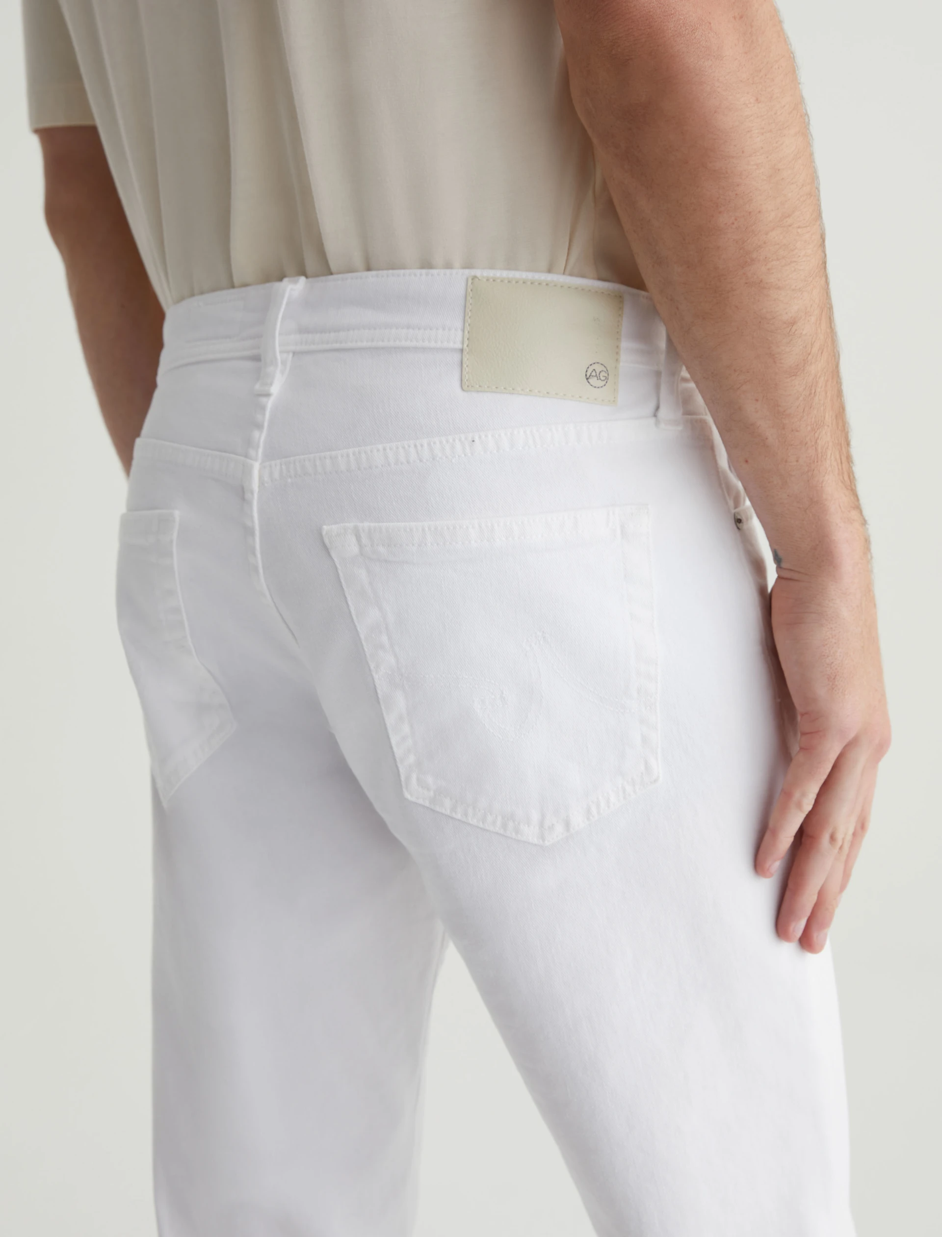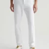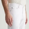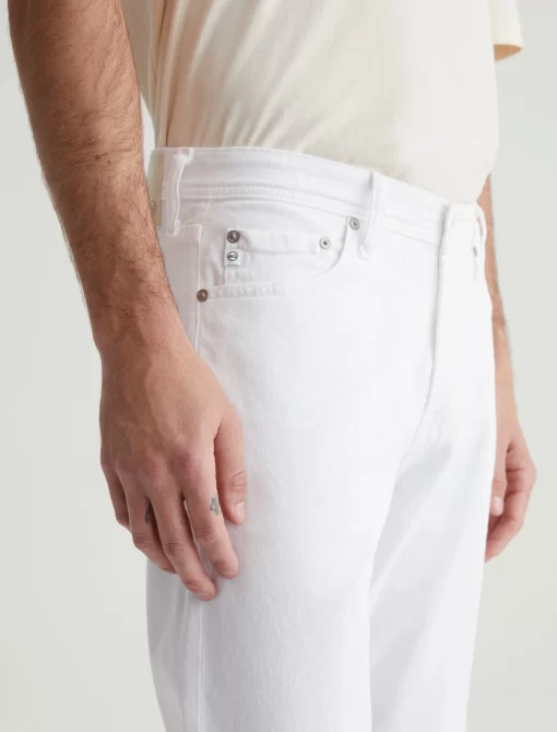 Tellis is a modern slim fit with a fitted upper block and a tapered leg opening. Made from AG Cloud Soft Denim™ in white, these slim-cut men’s jeans feature special left-hand twill construction that allows the yarns to gently relax and untwist for a supple feel that gets softer with every wear. It’s blended with dual-e