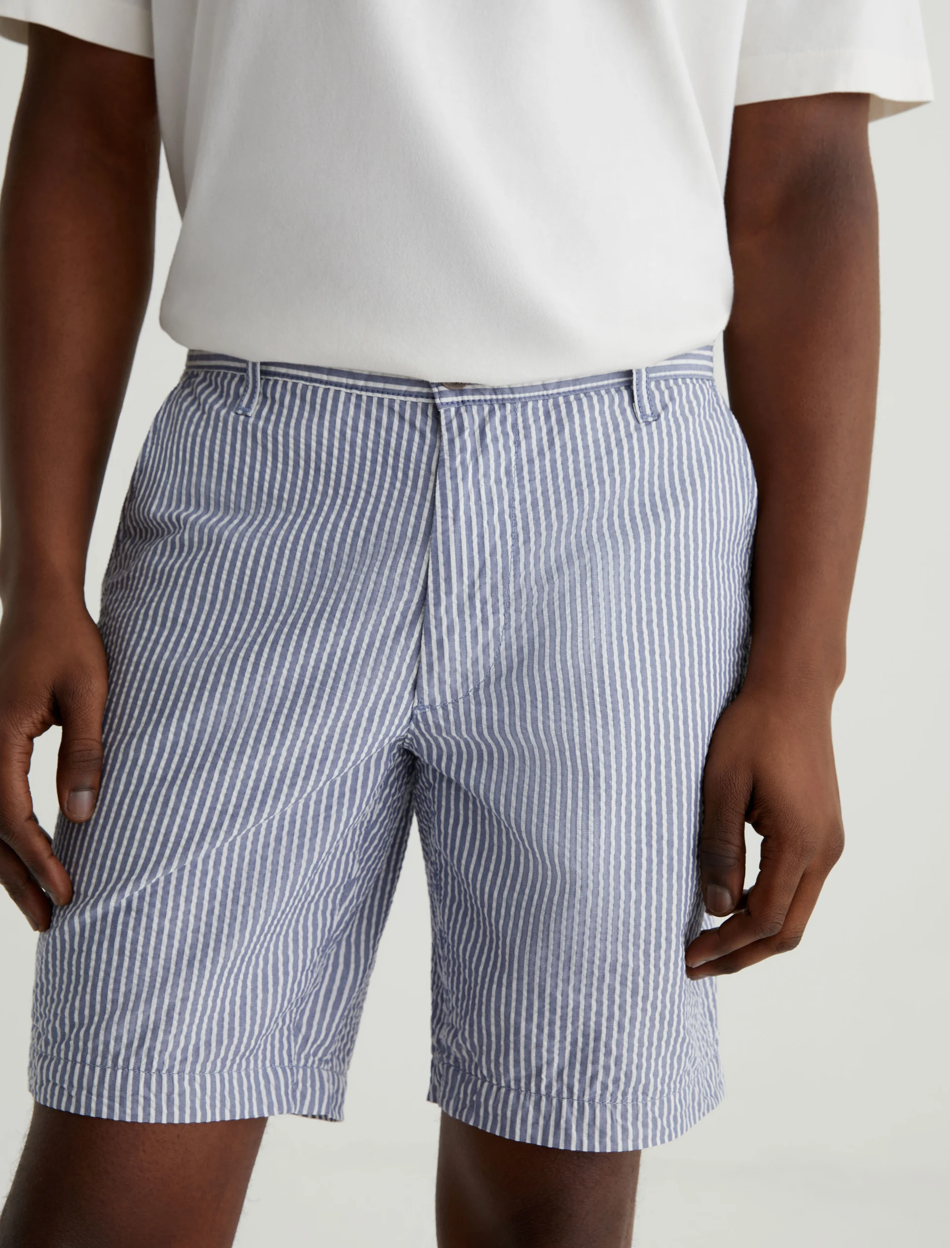 Made from striped cotton seersucker, the Wanderer Short is a timeless addition to your warm-weather wardrobe. These trouser shorts are tailored for a slim fit with tidy pockets and slightly tapered legs.
