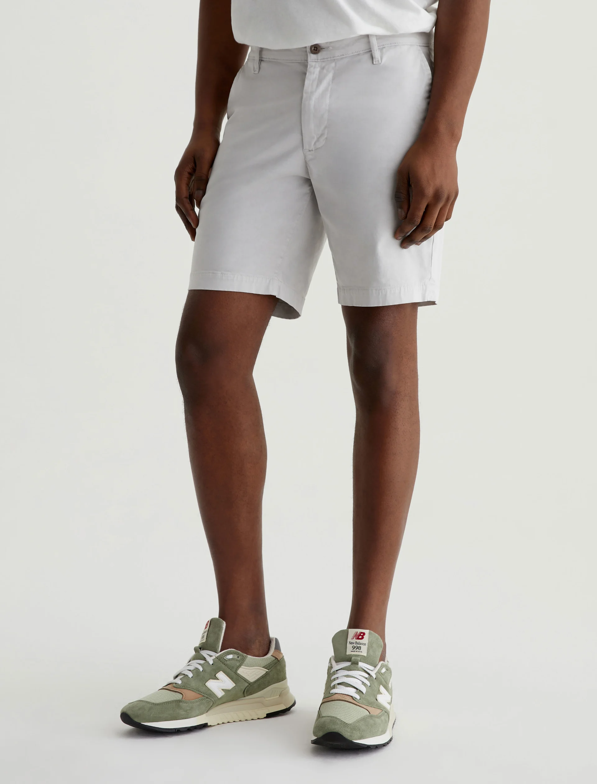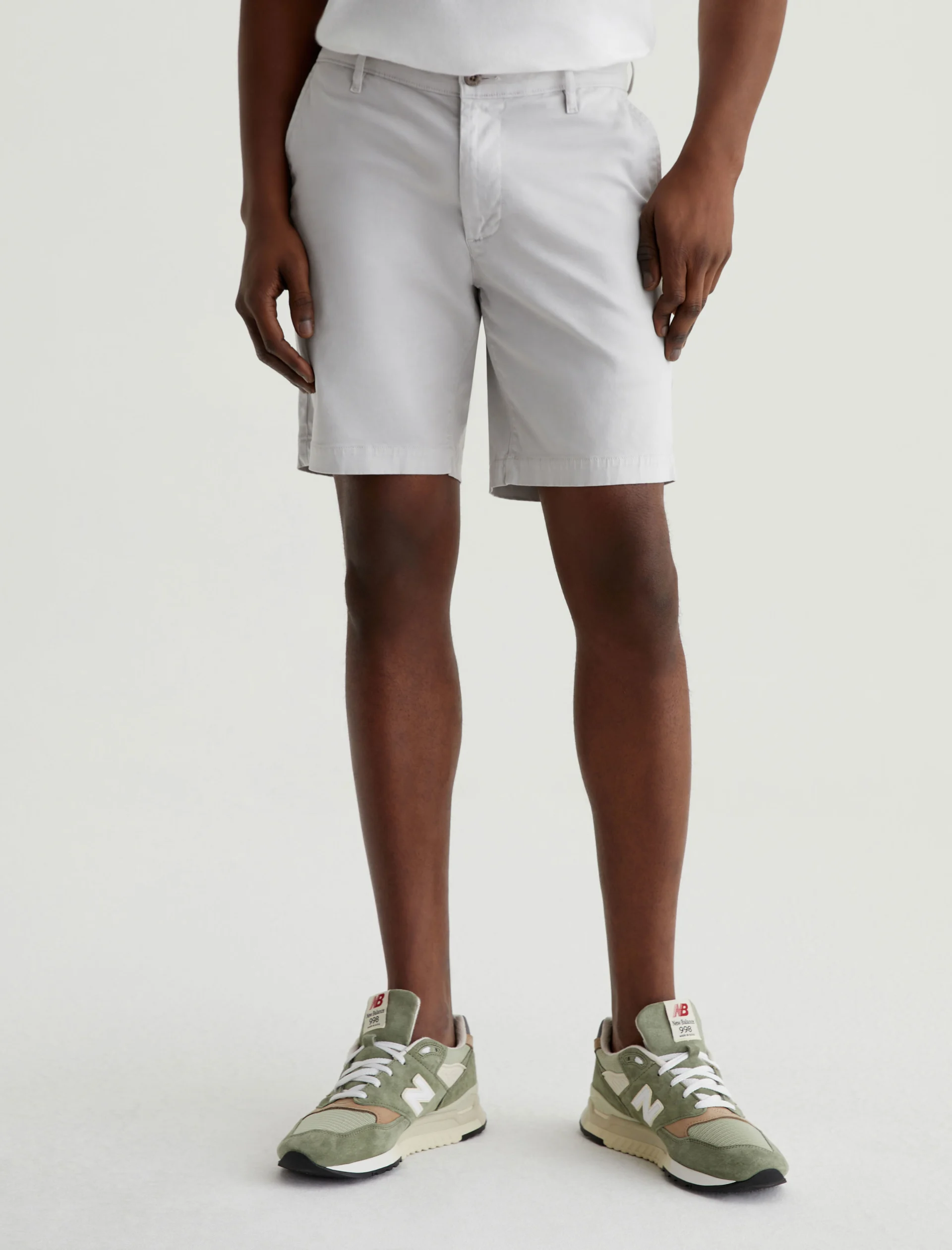 Our Wanderer Short for men has a clean trouser look in a slim fit with slightly tapered legs. Featuring a pale grey shade, these men’s shorts are crafted from ultra-lightweight and sumptuous 7.4 oz. Brighton Sueded Sateen with premium stretch.