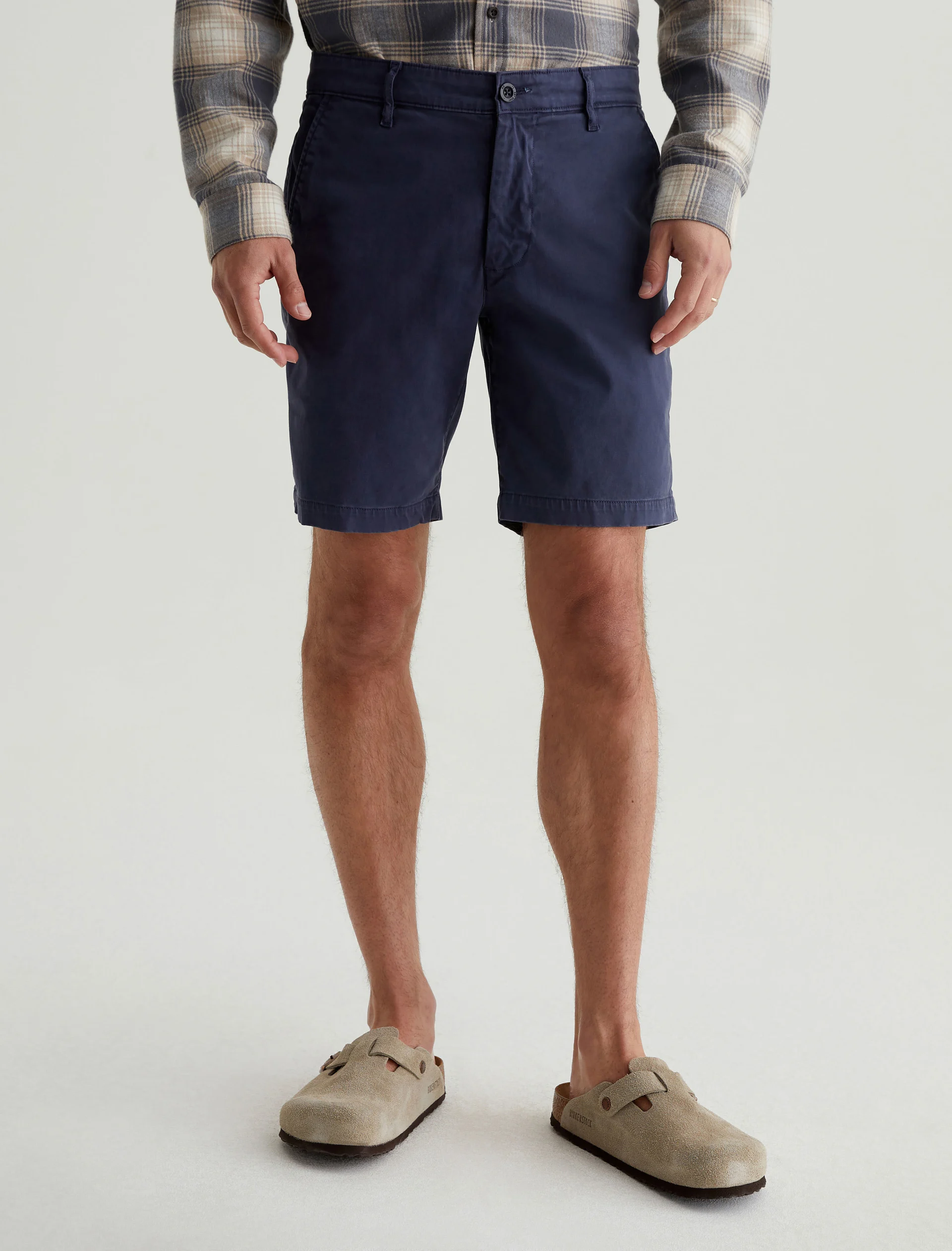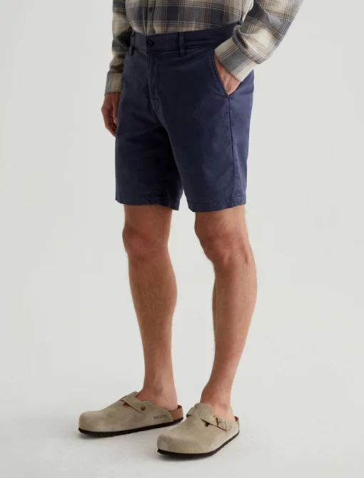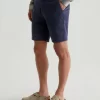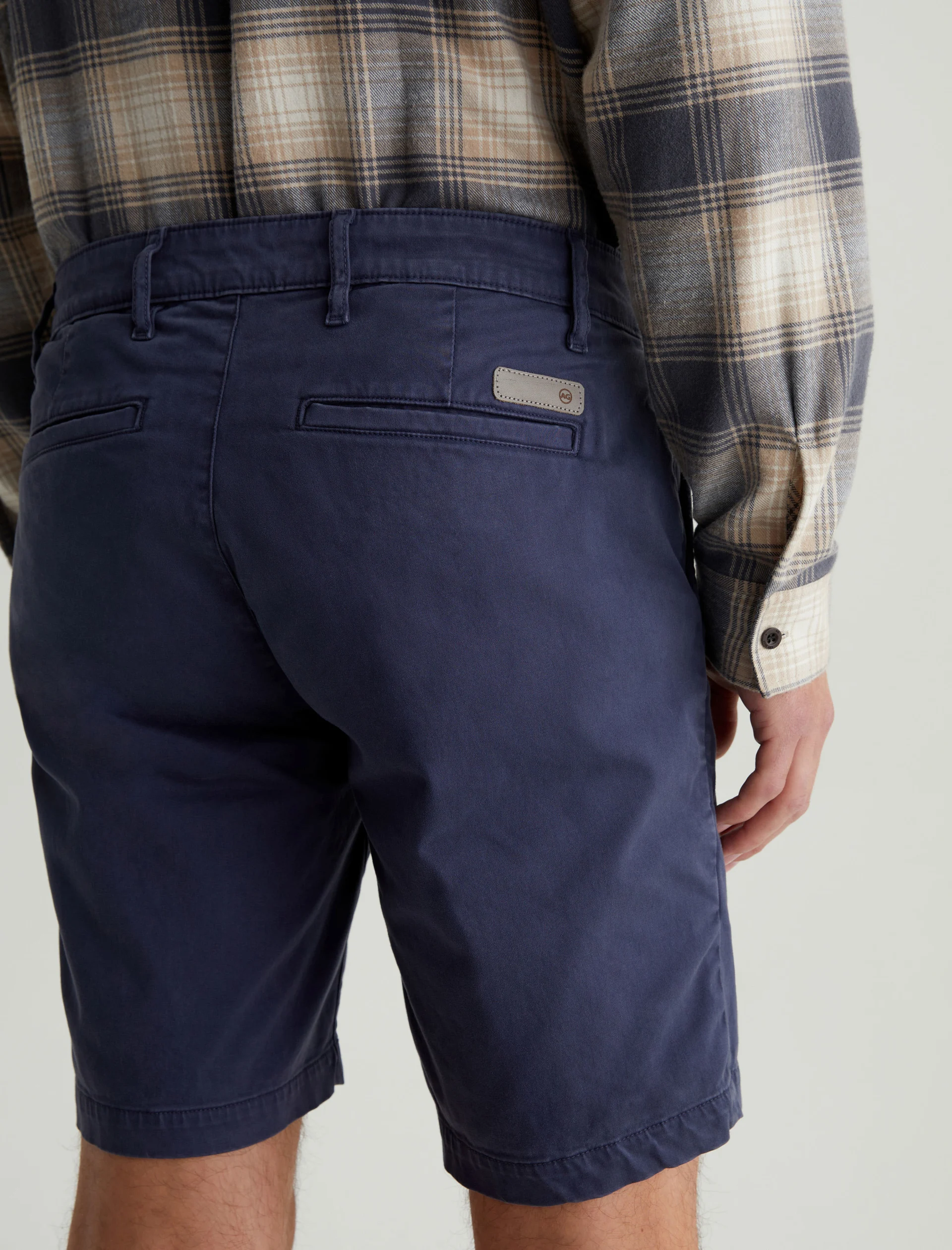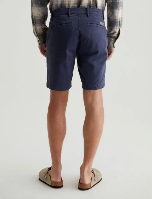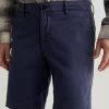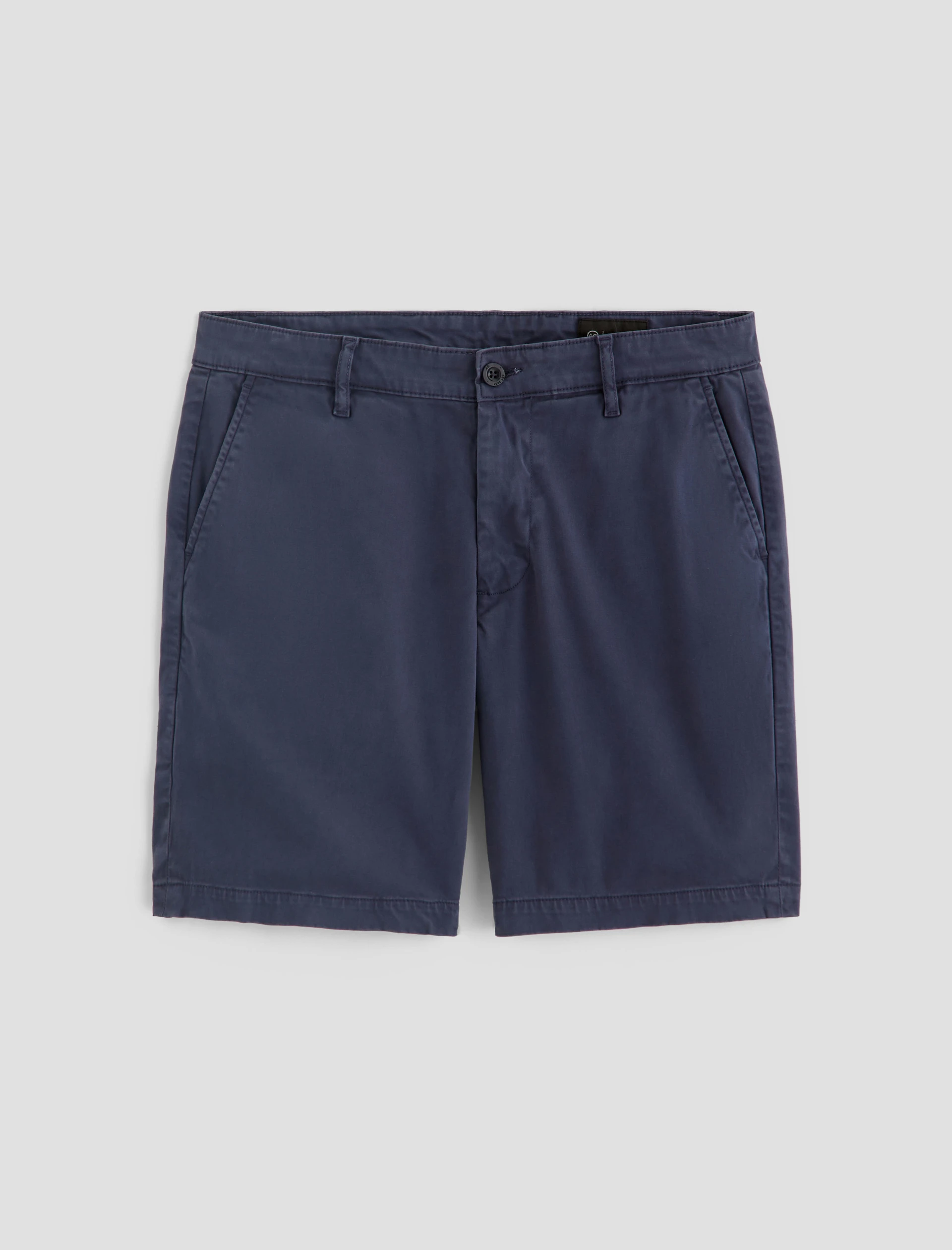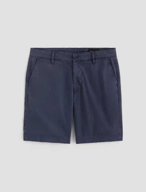 Our Wanderer Short for men has a clean trouser look in a slim fit with slightly tapered legs. Featuring a sulfur-dyed navy shade, these men’s shorts are crafted from lightweight and sumptuous 7.4 oz. Brighton Sueded Sateen with premium stretch.