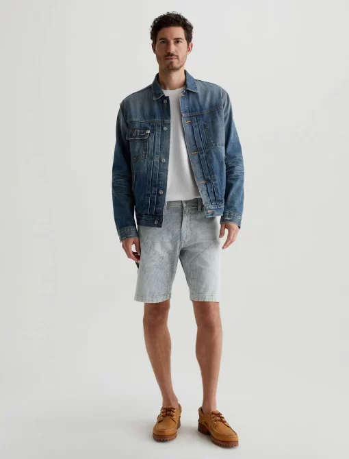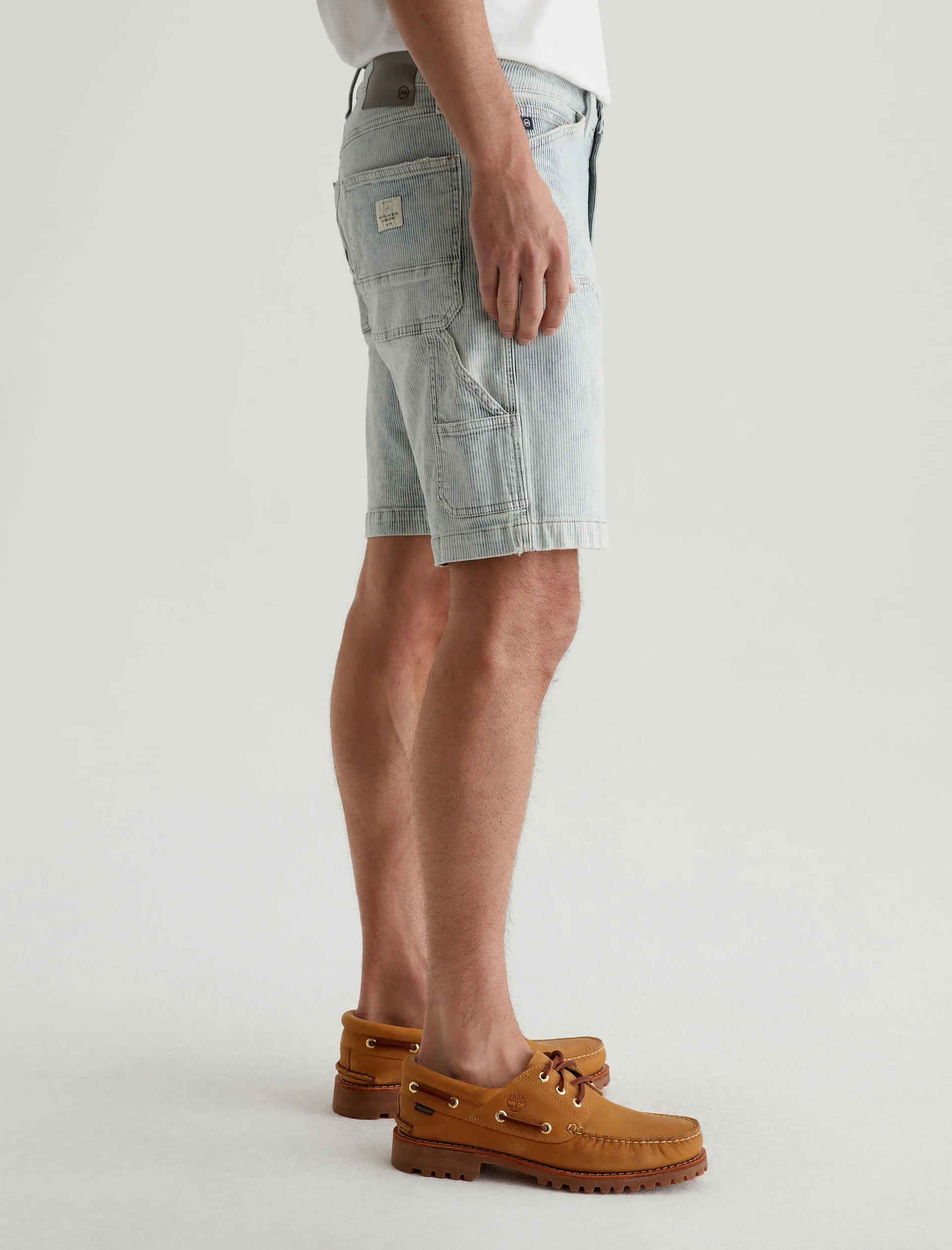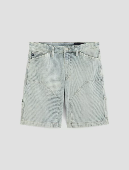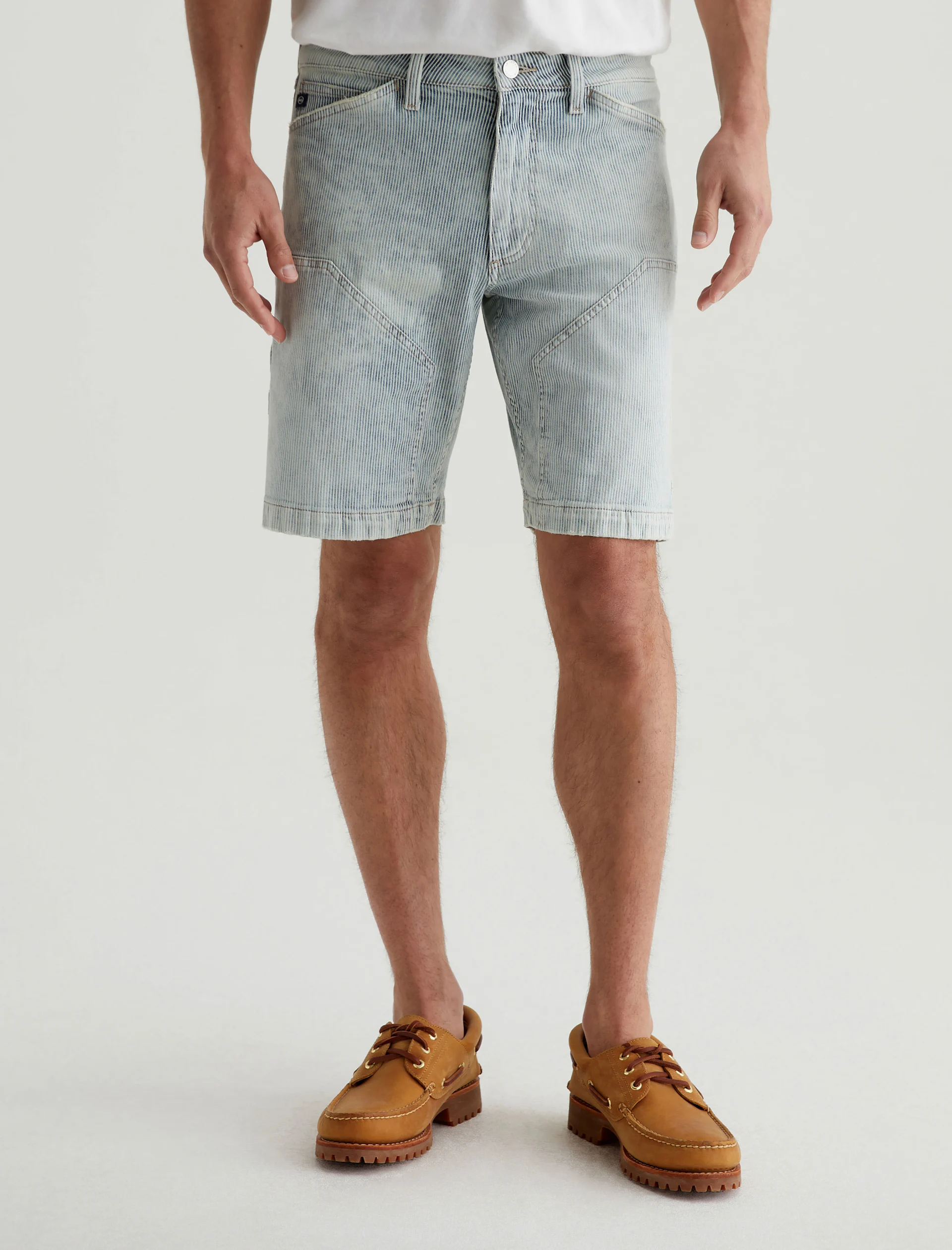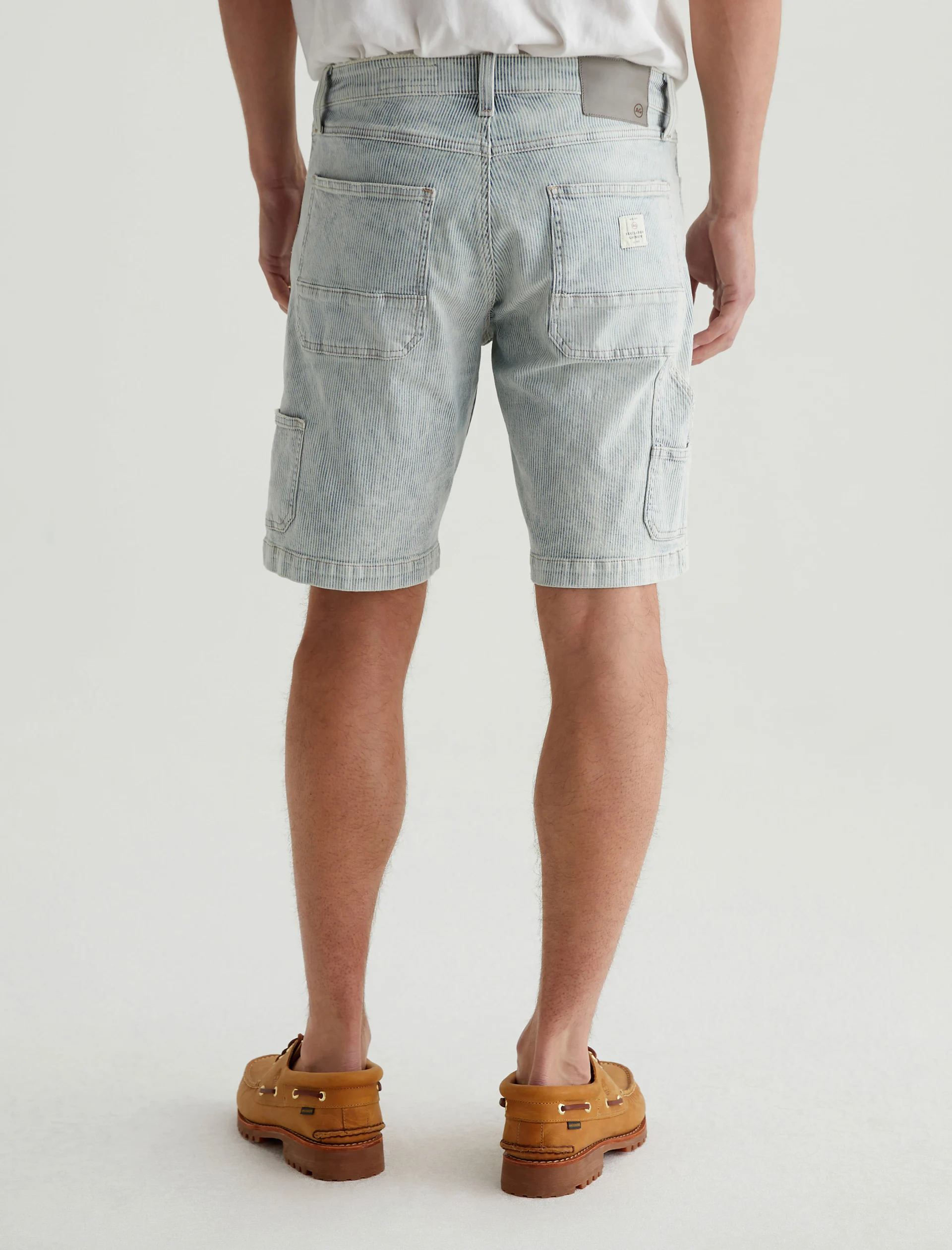 Our Wells Carpenter Short has a coastal workwear aesthetic in sun-bleached indigo stripes with a subtle vintage tint. Cut from lightweight stretch-blend cotton, these men’s shorts offer a relaxed fit with paneled legs and a dual tool pocket.