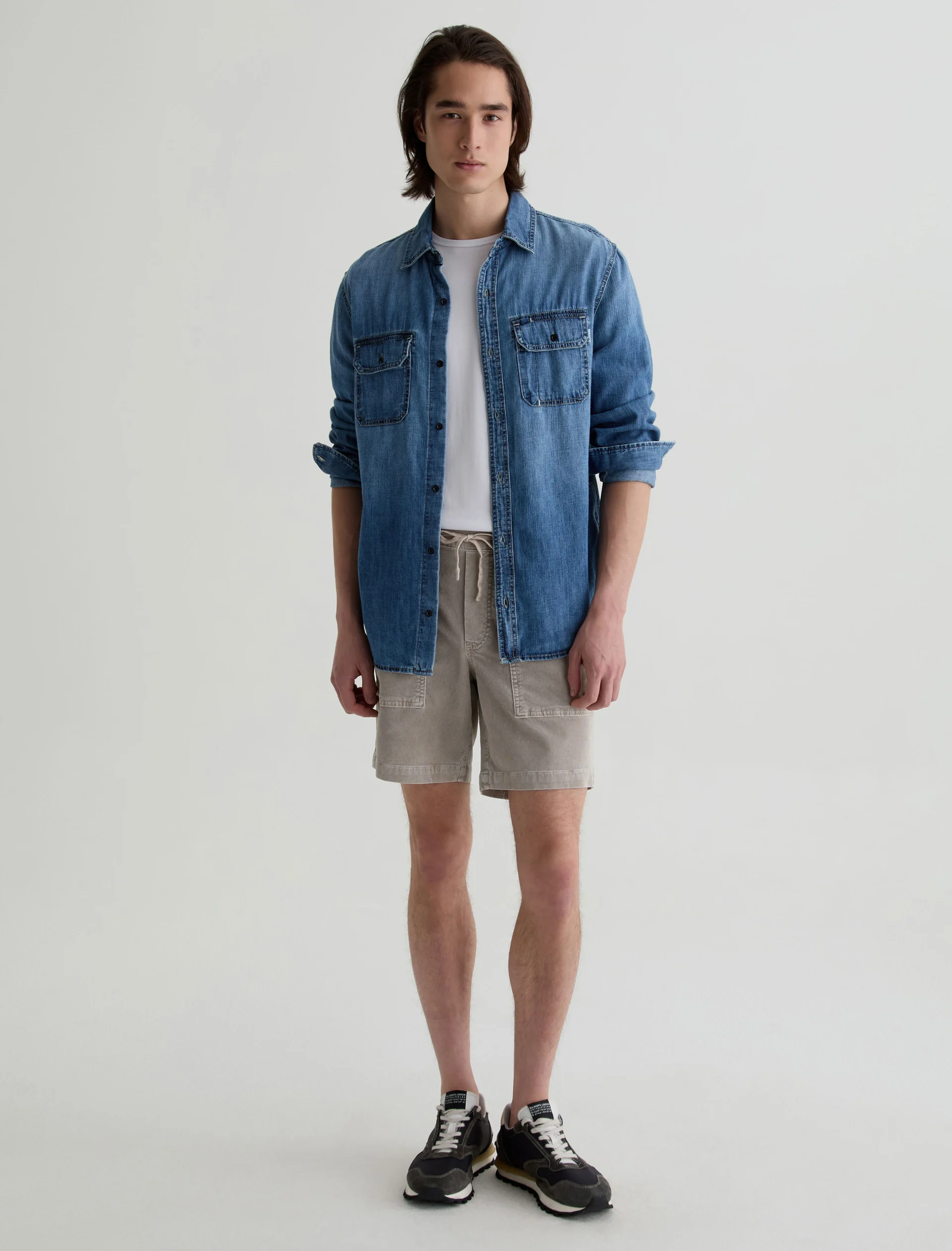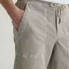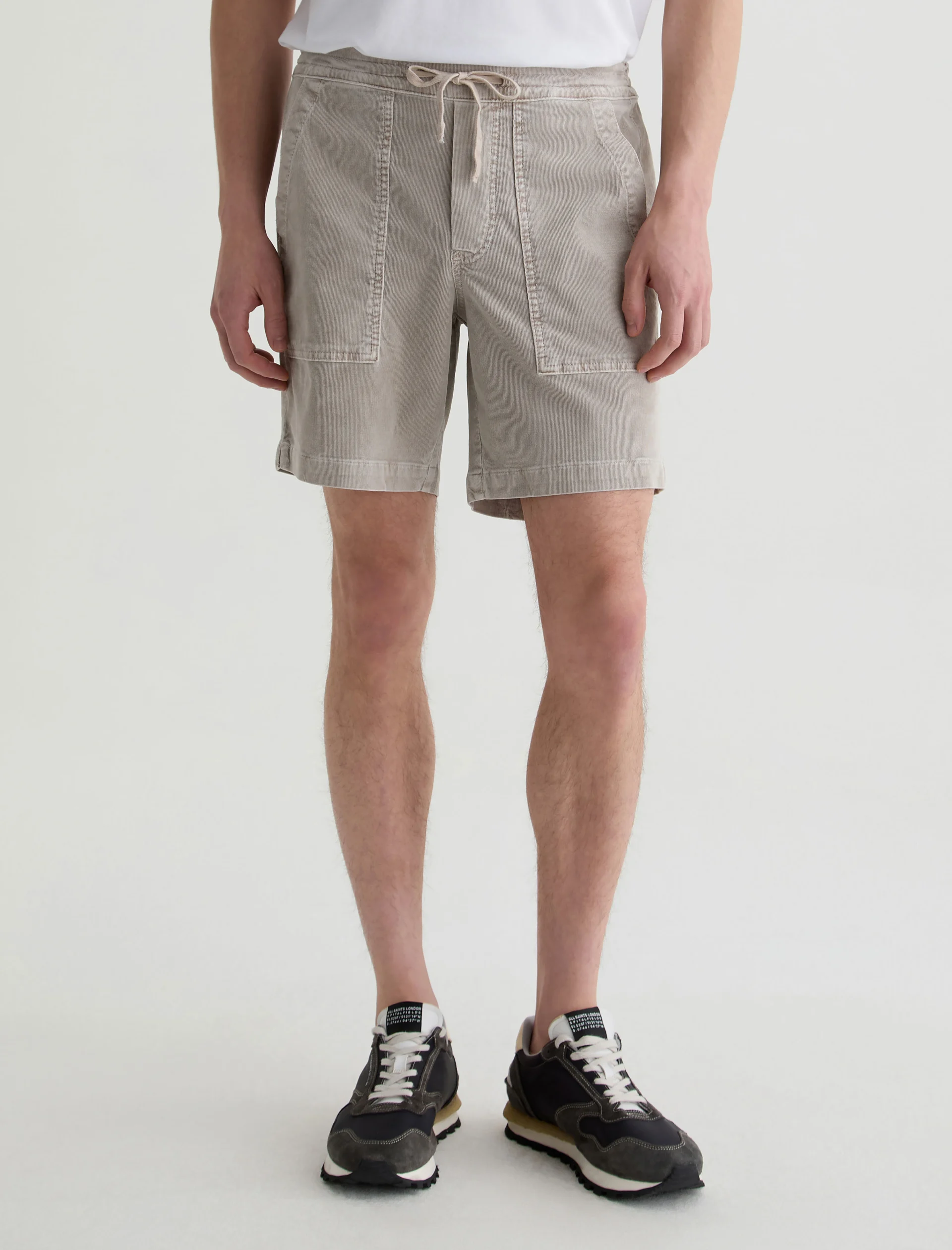 The Wells Drawstring Short features a lounge-ready relaxed fit in sulfur-dyed corduroy. Designed with fatigue pockets, these pull-on shorts for men are extra comfortable thanks to the partially elasticized waistband. Buttoned flap pockets at the back complete the look.