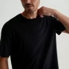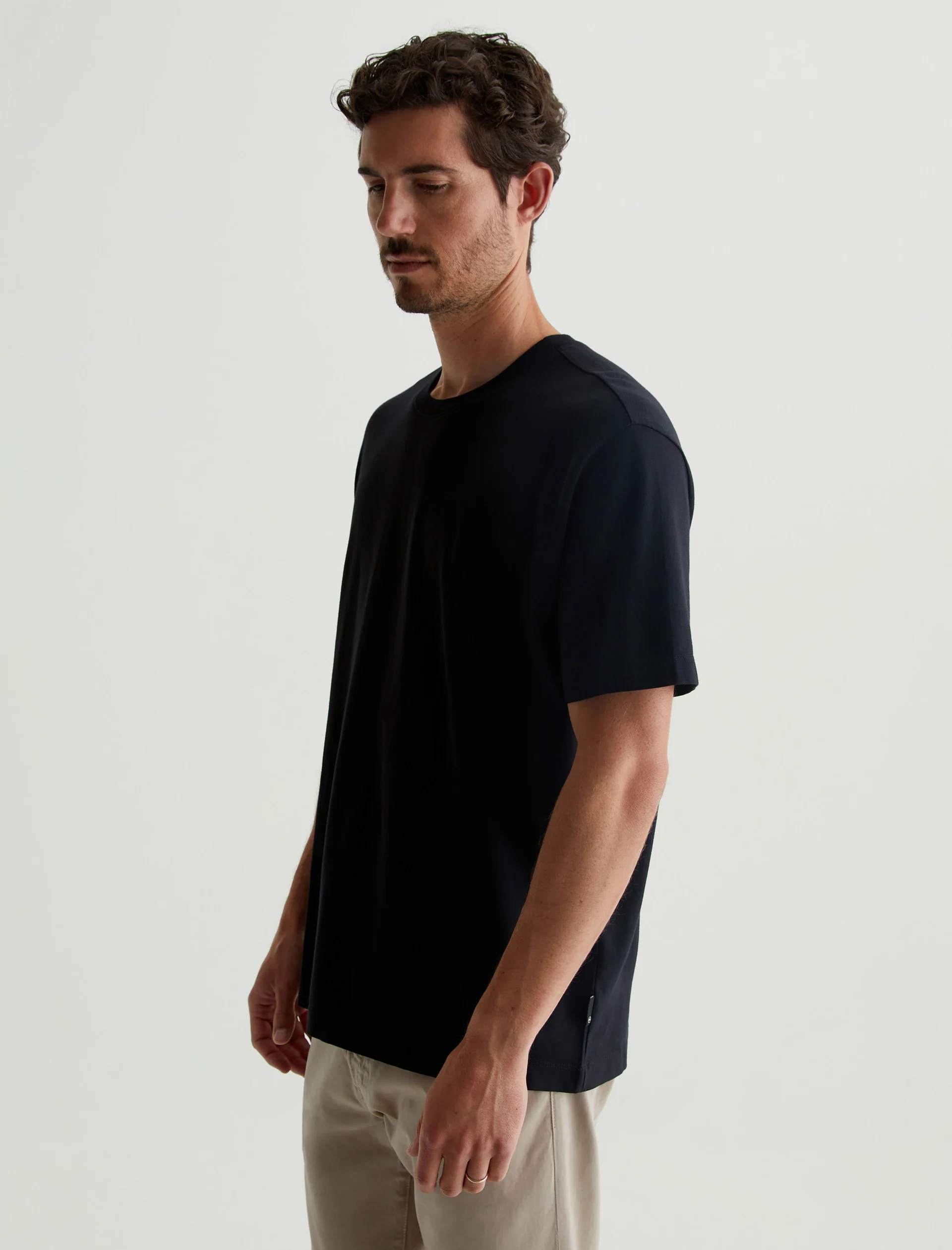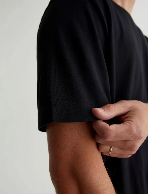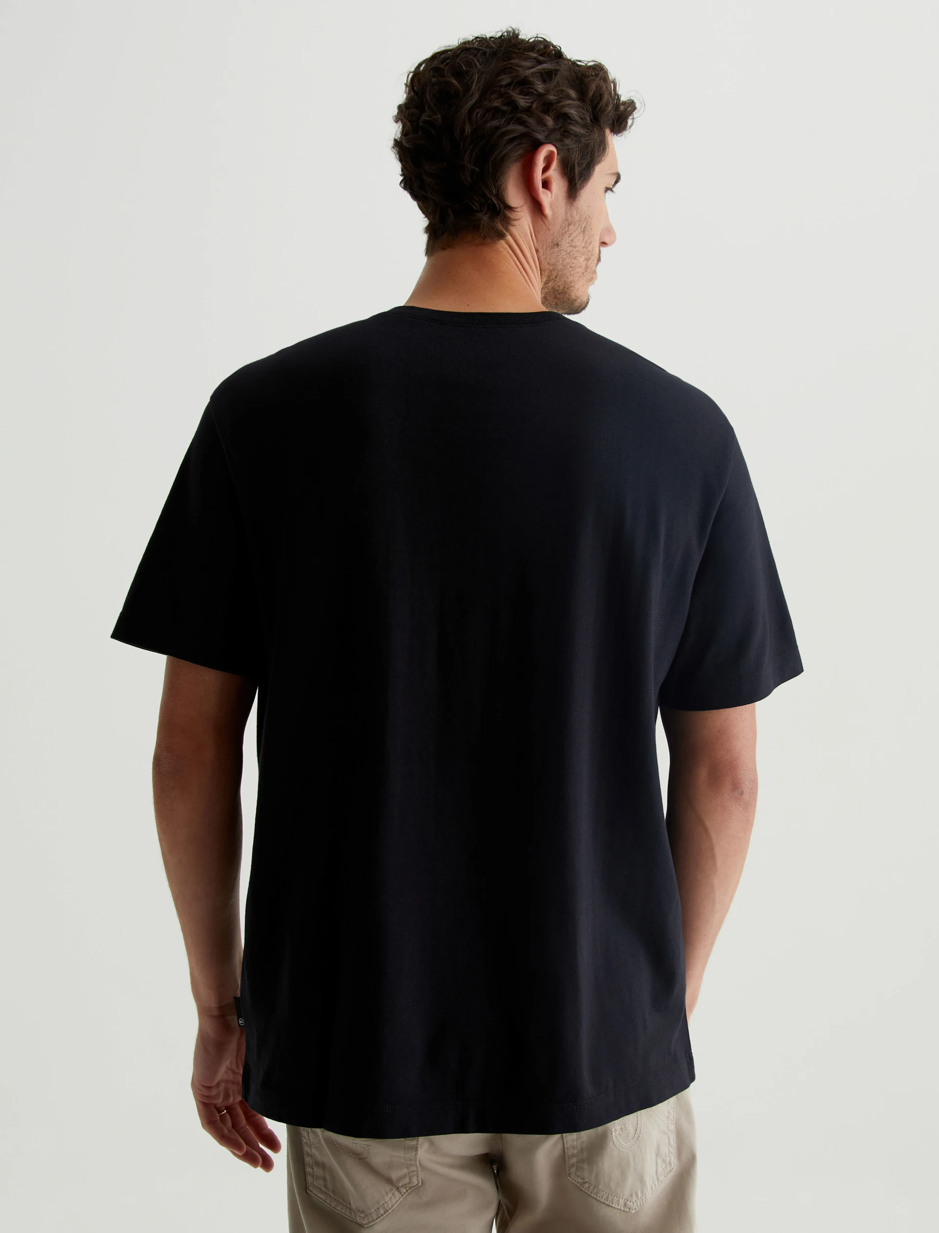 The Wesley Crew in black is a relaxed short-sleeve tee for men. The tee offers drop shoulder detailing and wider hem for a more fashion forward fit. Our Jersey Knit offers a luxurious comfort that is unrivaled—knitted with both S-twist and Z-twist yarn to sustain longevity and stability, preventing unnecessary twisting