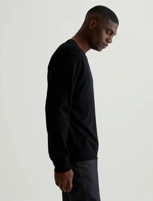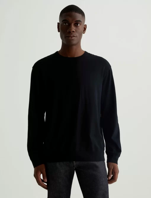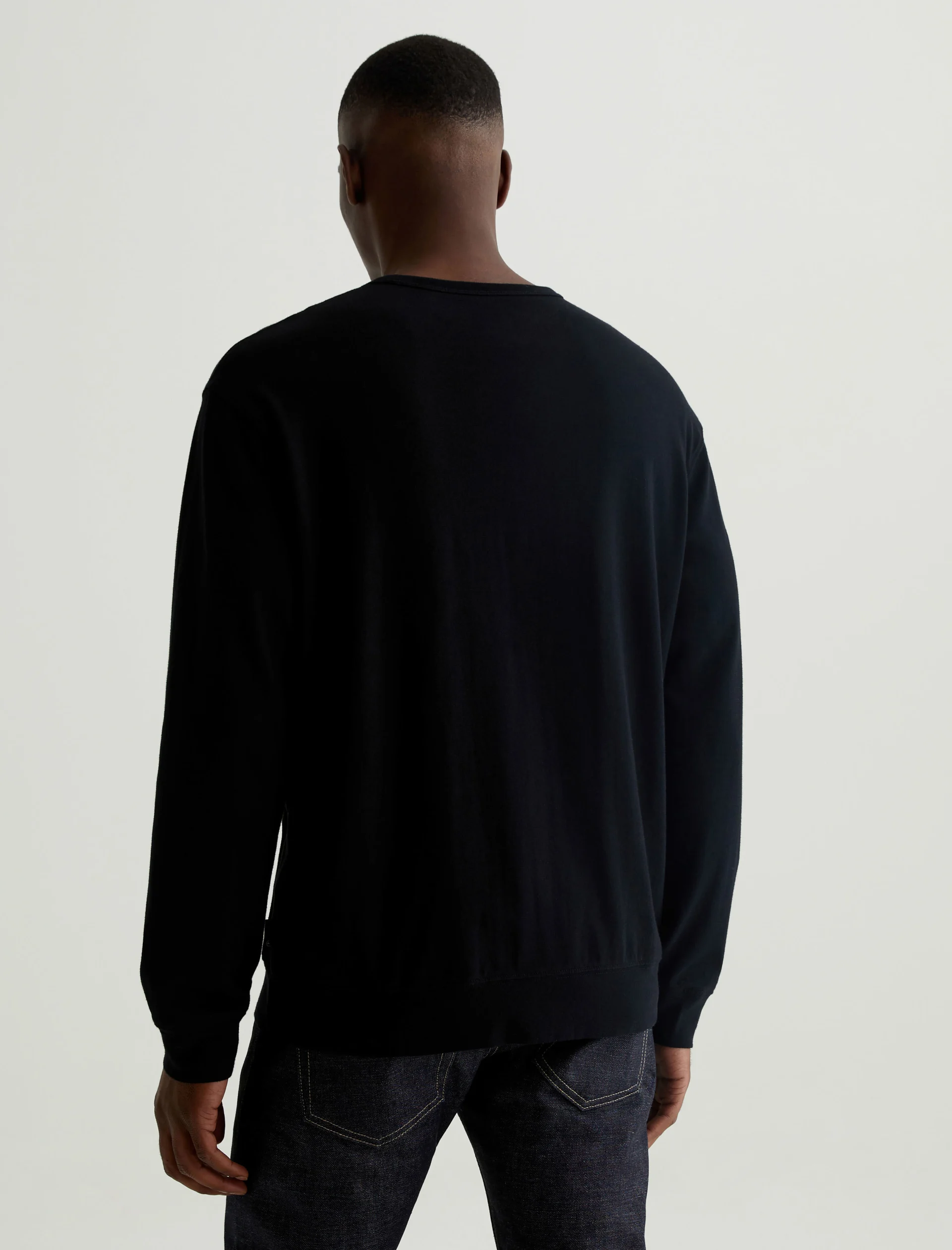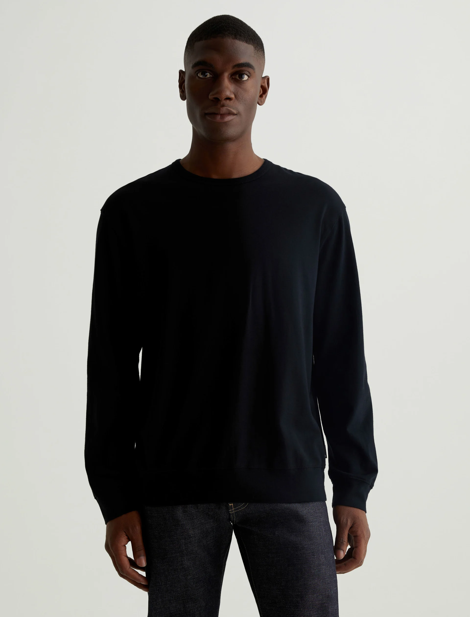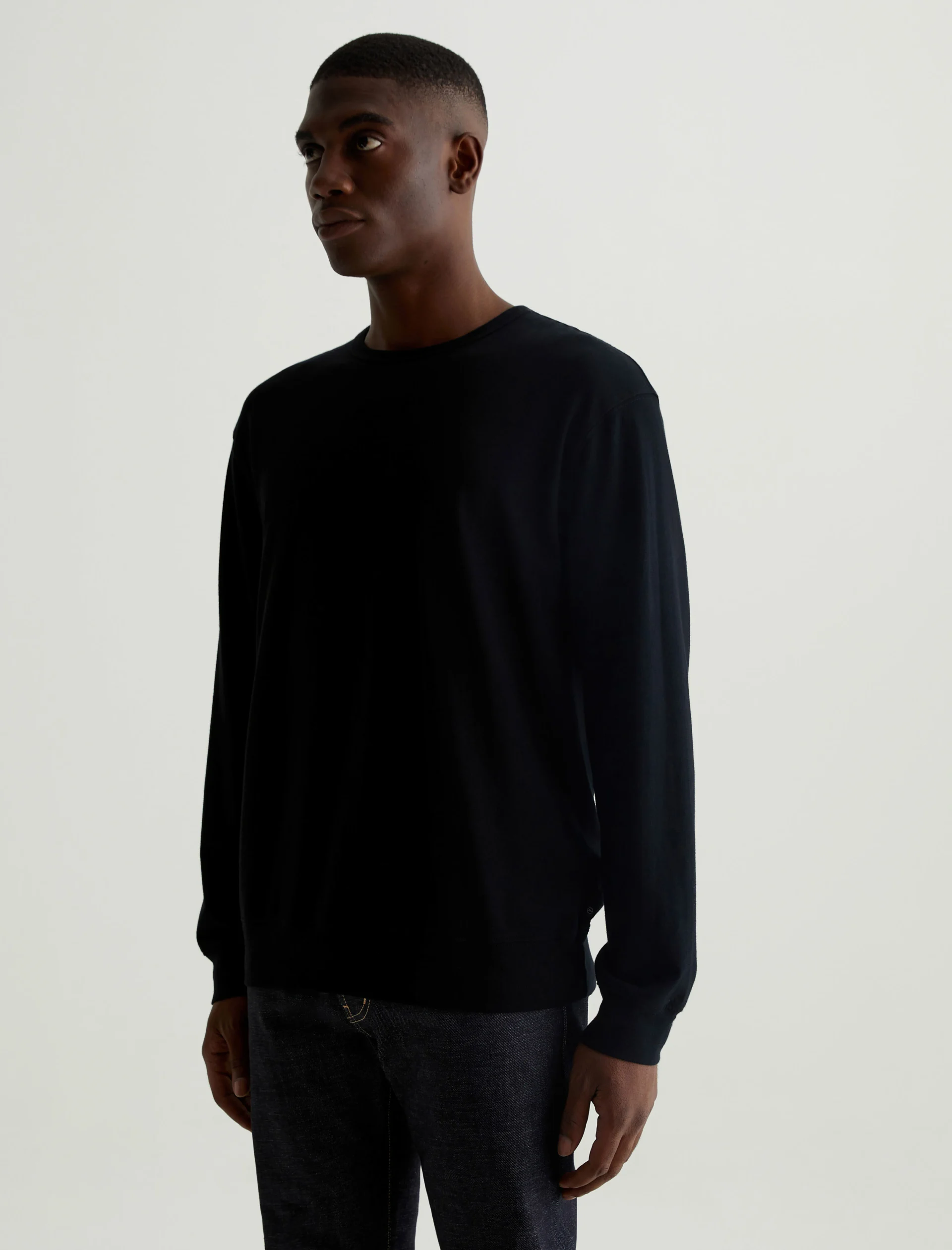 The Wesley Pullover in black is a new silhouette added to our Basic Essentials collection. Borrowing details from a traditional sweatshirt such as rib binding, cuffs, and bottom hem allowed us to create a lightweight pullover that feels classic, modern, and uniform. Our Jersey Knit offers a luxurious comfort that is un