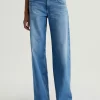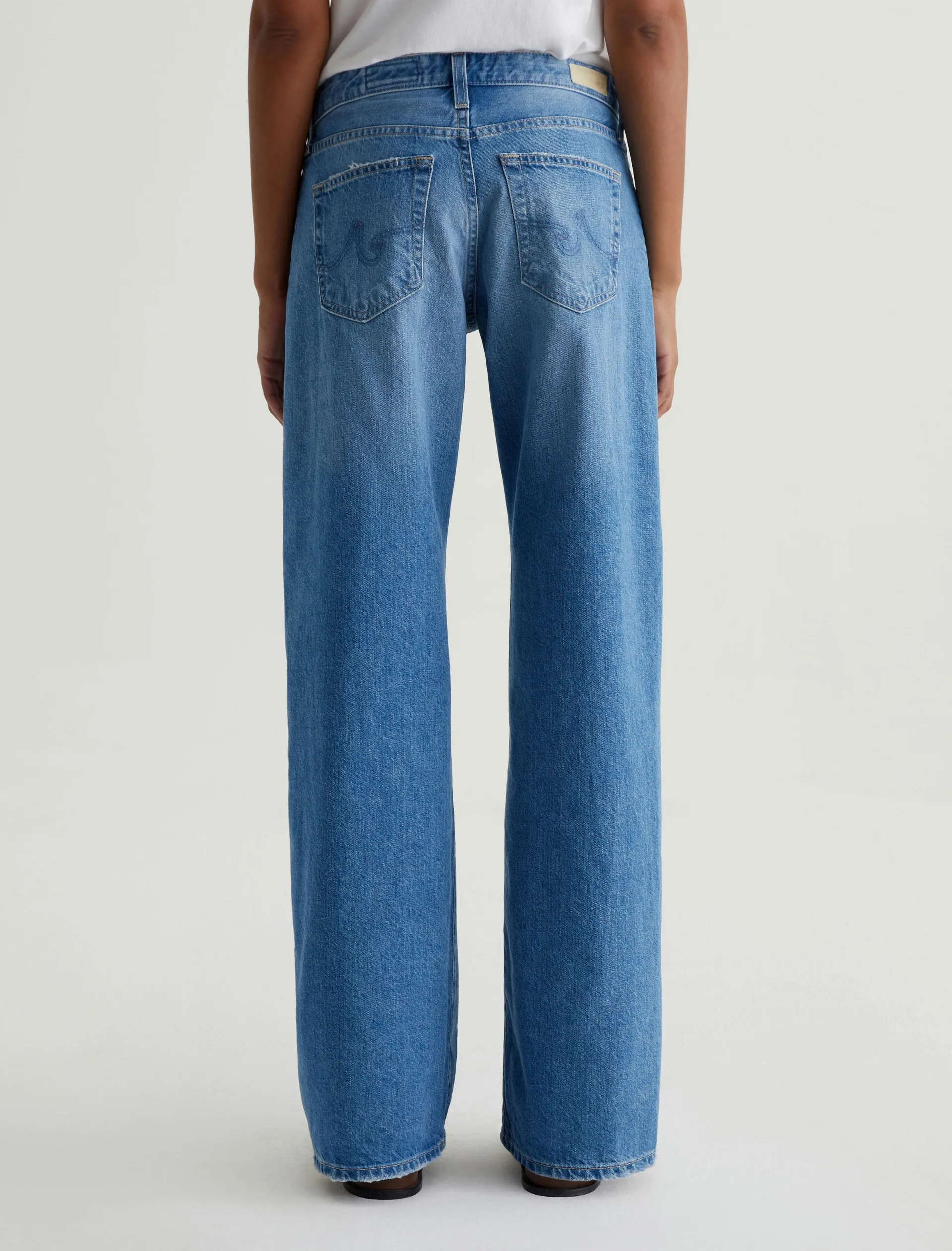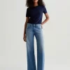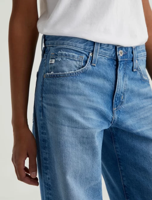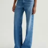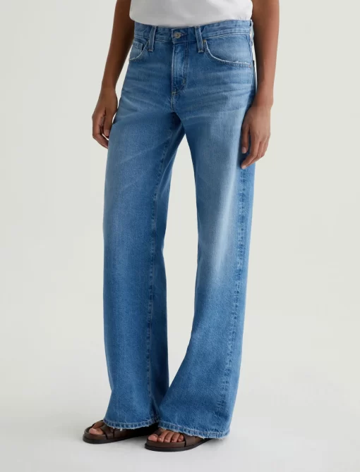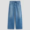 The Adria wide-leg jeans have a low-rise waist that hangs on the hips for a relaxed, slouchy look. This five-pocket style fits loose through the legs, designed to puddle at the hems. Updated in 12 oz. Drapey Rigid Denim, it’s blended with lyocell for a soft feel and features a brilliant blue wash. Fading, pocket edges,