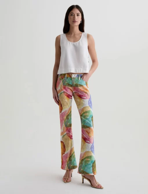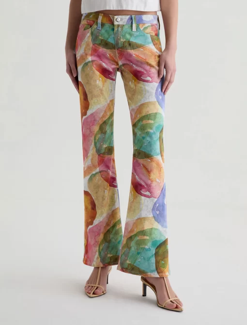 The Angel Low-Rise Bootcut is crafted from superior stretch twill for comfort and flexibility. This low-rise silhouette sits at the hips and features a subtle bootcut leg with slightly flared hems. Finished with five pockets and belt loops. About the Art Project: Bright colors blend and bleed in a checkered motif, as i