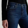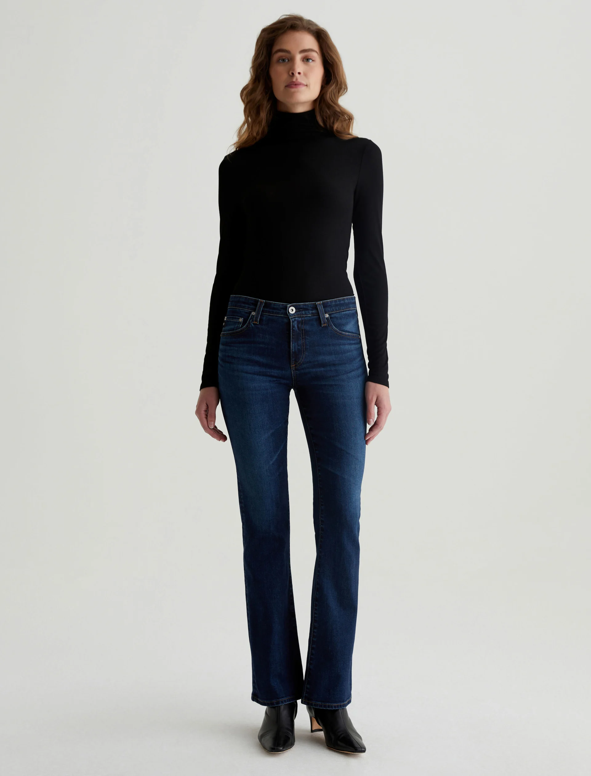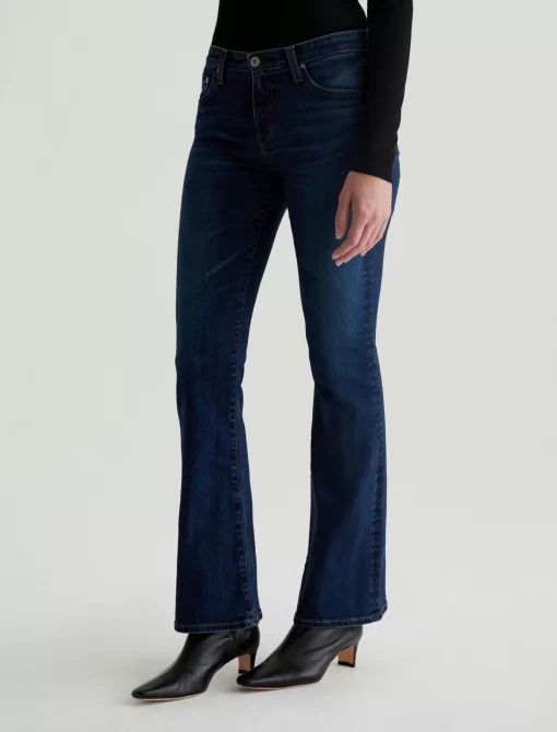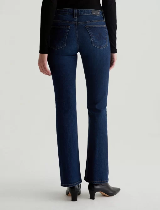 The Angel Vapor Wash low-rise bootcut jeans sit below the natural waist and fit close before opening to a subtle flare. Designed in 10 oz. Rouge Advanced Stretch Denim, this pair features a dark indigo wash that’s been achieved using our eco-friendly AG Vapor Wash™ technology. Our AG Vapor Wash™ process significantly r