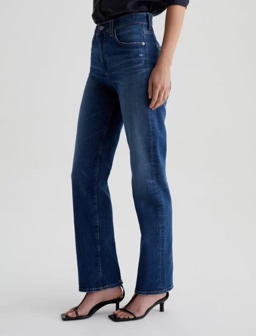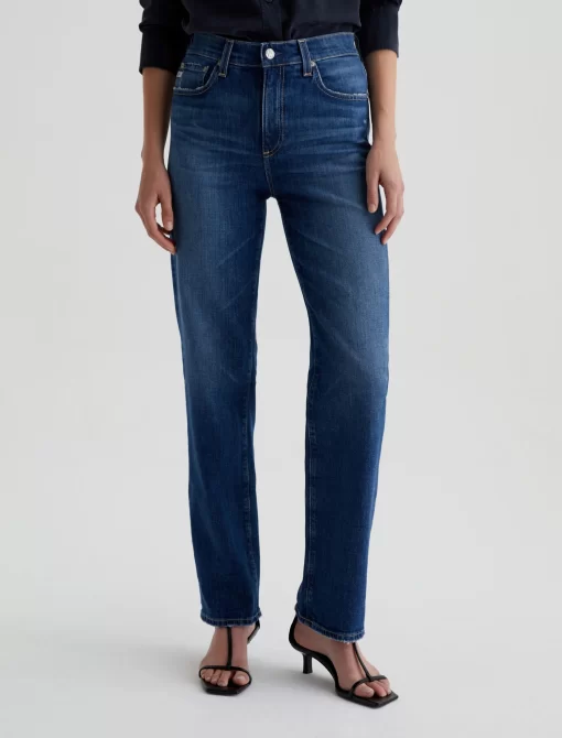 Brinley is a mid-rise straight fit for women. Designed to sit at the natural waist, these five-pocket jeans have a classic straight-leg silhouette in comfort-stretch Journey Denim. The pair features a medium indigo wash that our designers custom-developed for an authentic vintage look. Whiskering, worn edges, and a bit