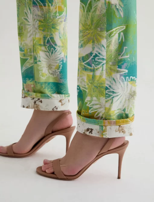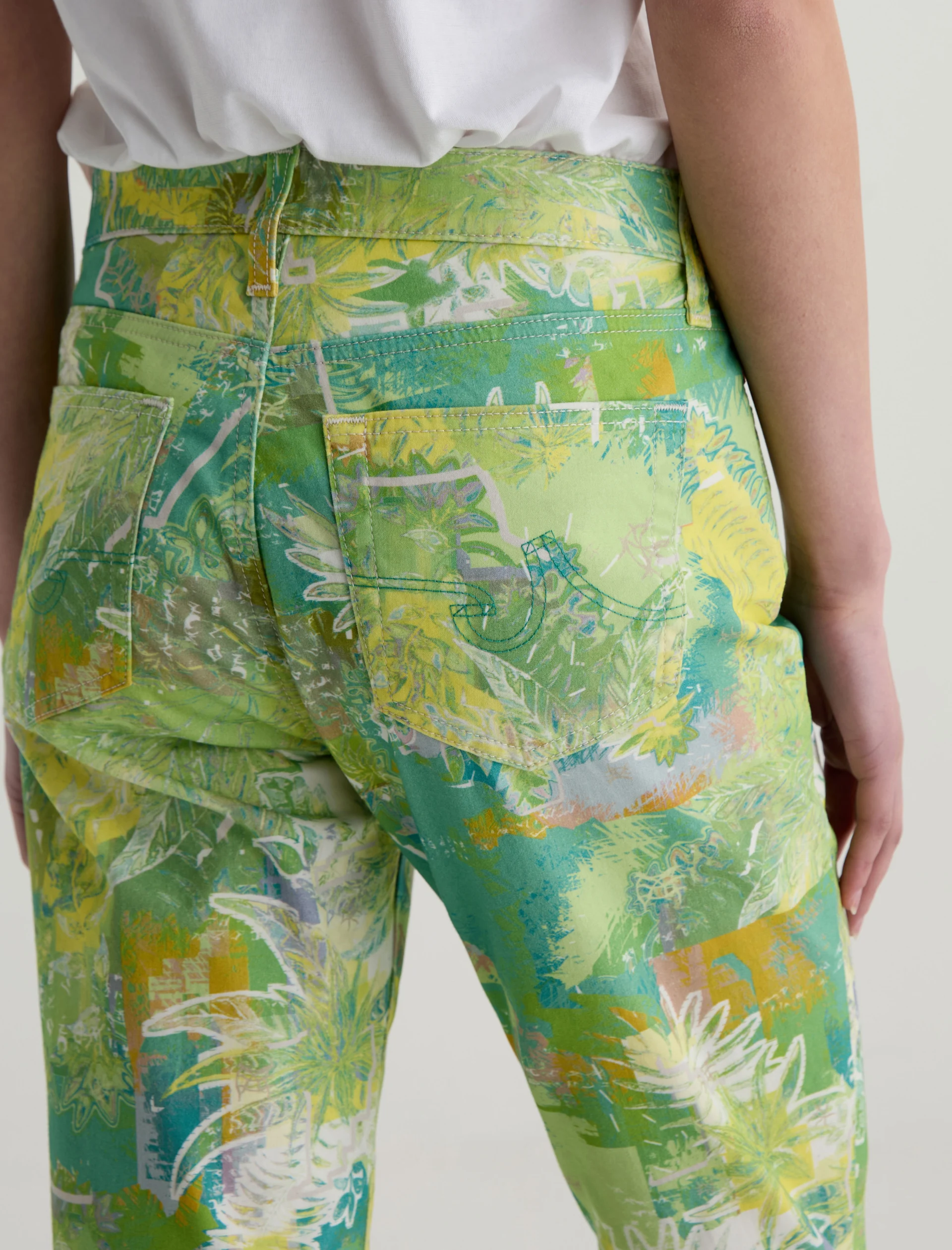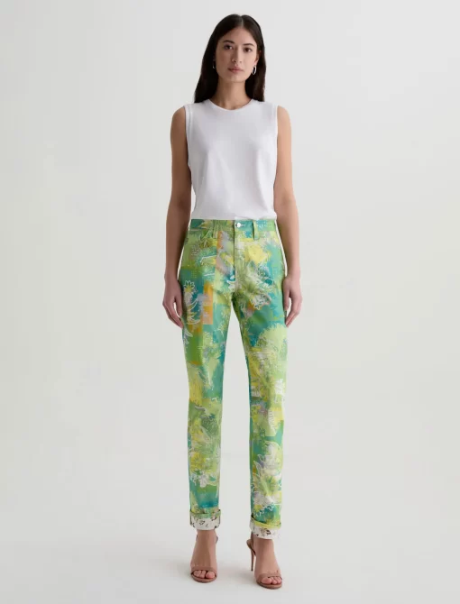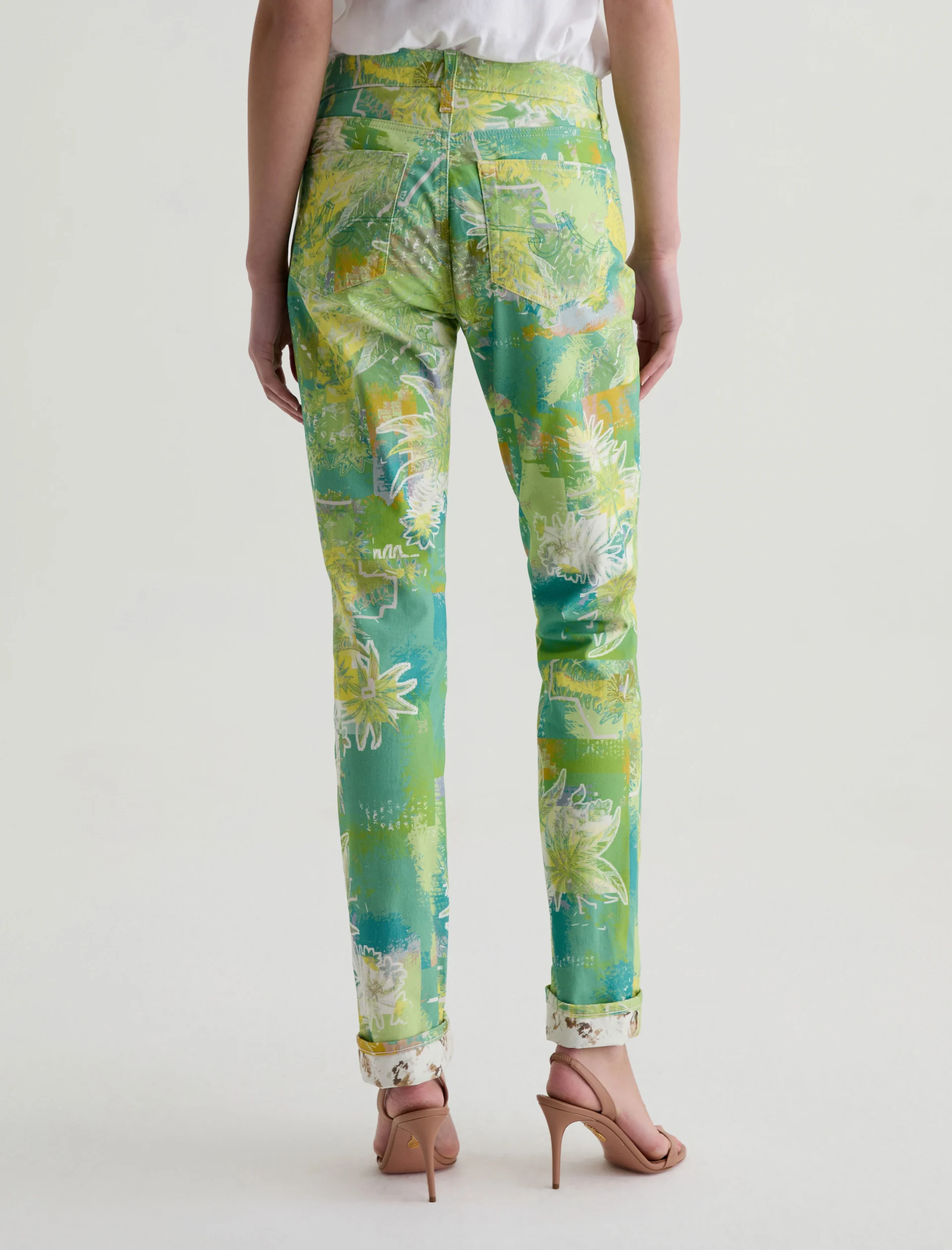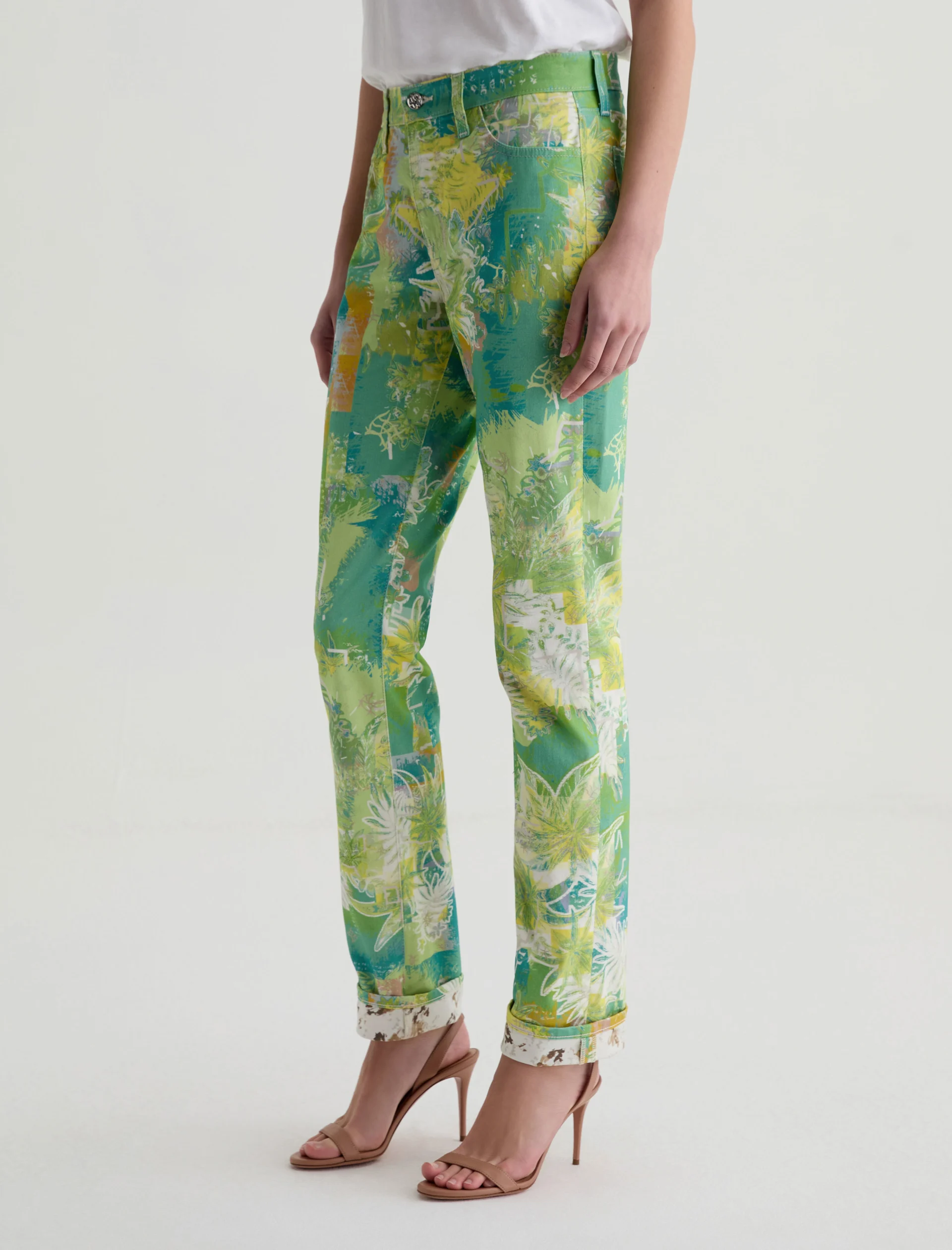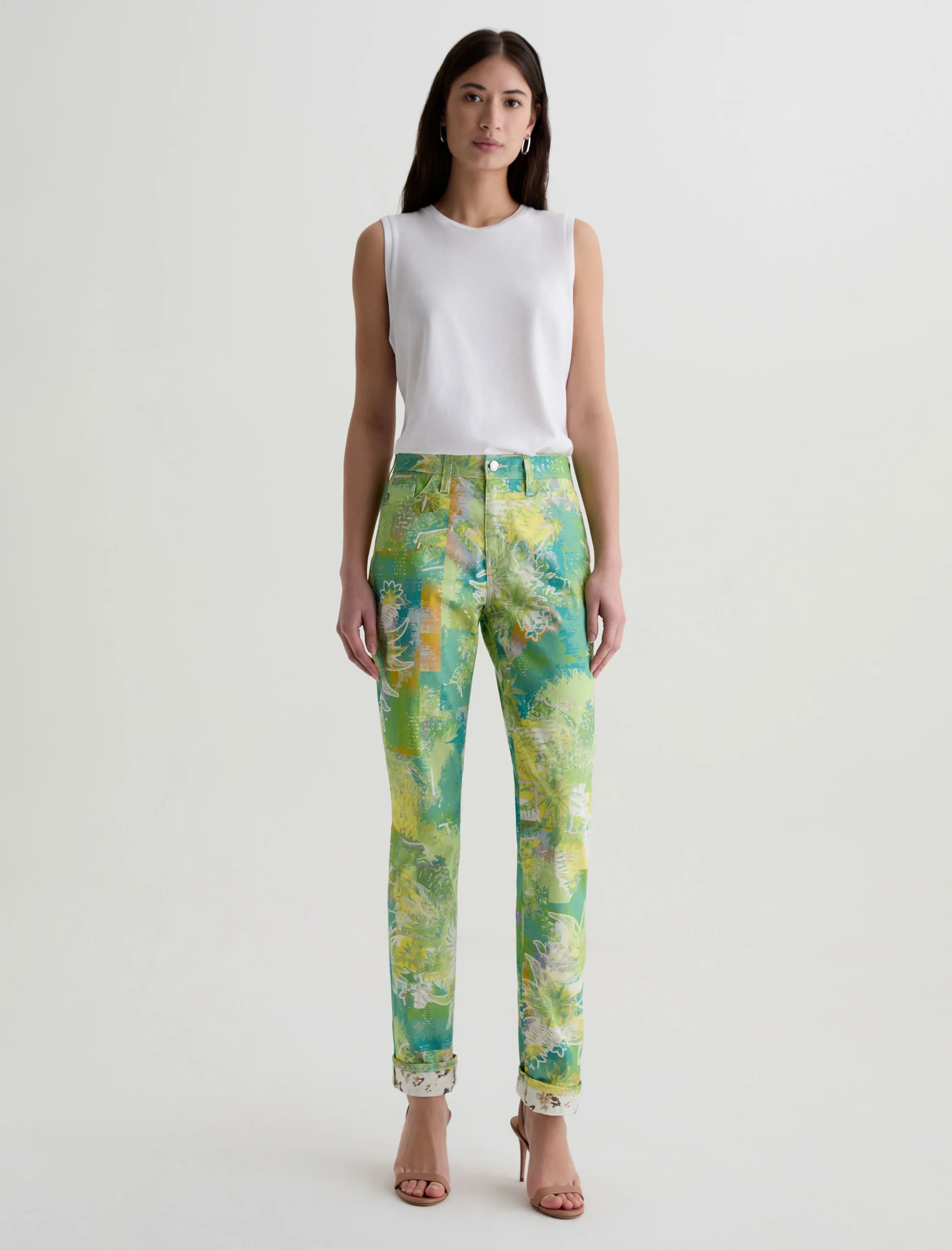 The Brinley Pant is a mid-rise straight jean made from suede stretch sateen. It features a slim fit that sits comfortably at the hips, complete with five pockets, belt loops, and cuffed hems for a clean, tailored finish. About the Art Project: Inspired by nature left to grow wild, this design captures the silhouettes o