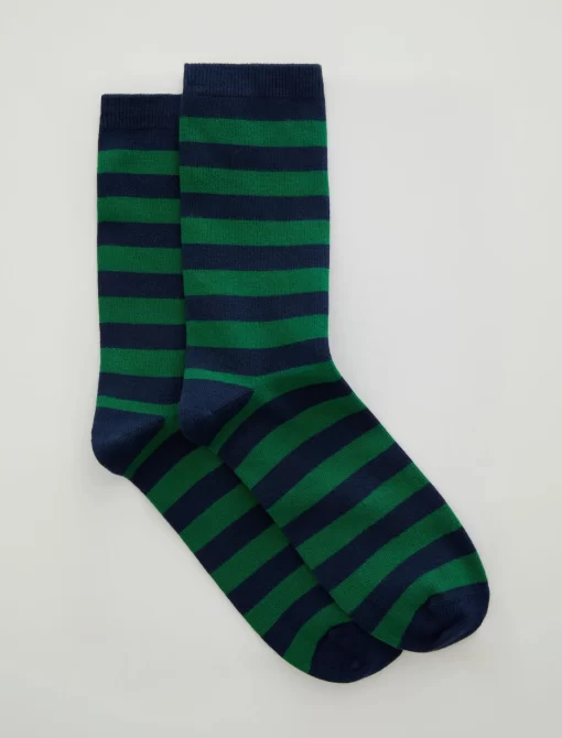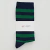This sock is our classic crew sock. Featuring a stripe pattern, this pair has been knitted from a comfortable cotton blend and ribbed through the ankles.