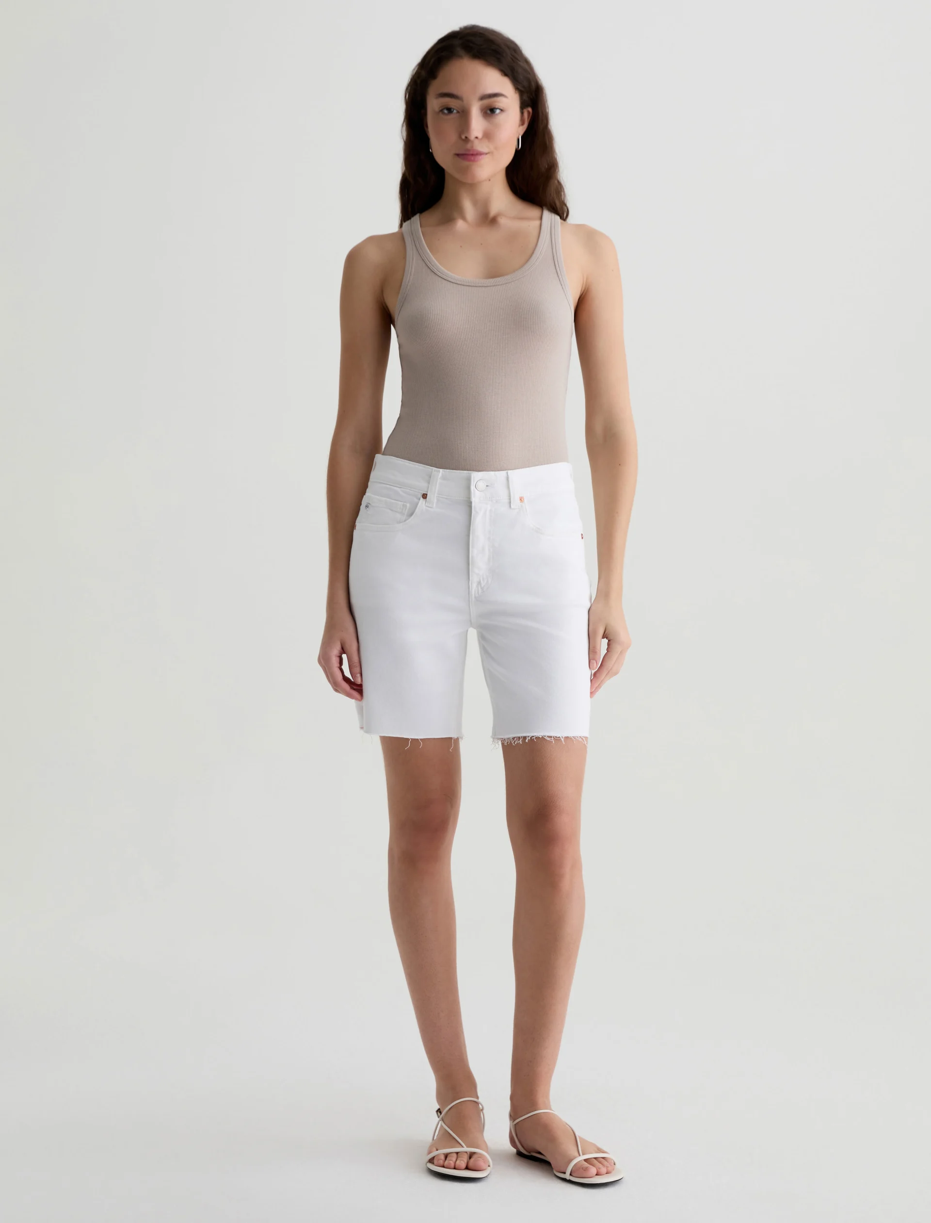 The Ex-Boyfriend Short is a mid-rise bermuda style with raw hems. Designed with a bit of ease for a slightly slouchy fit, these 5-pocket shorts are crafted from 8.7 Oz. Hyper Soft Bull Denim in bright, clean white.