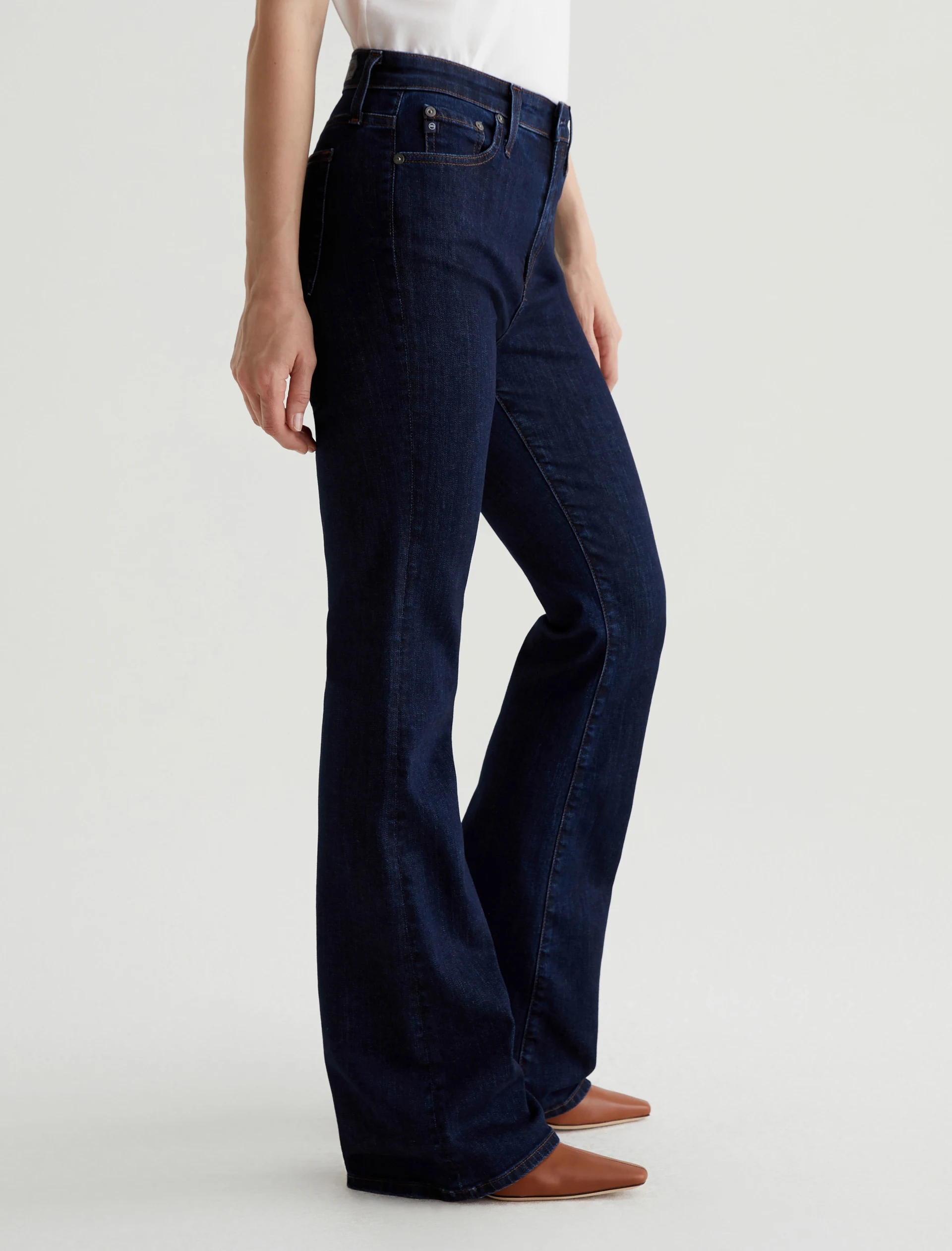 The Farrah Boot is our mid-rise bootcut jean updated in a dark, even shade of indigo. Crafted from 10 oz. Rouge Advanced Stretch Denim, the pair sits right at the natural waist and has a skinny fit through the legs before opening into a subtly flared shape. Marigold stitching finishes the look.Some styles previously la