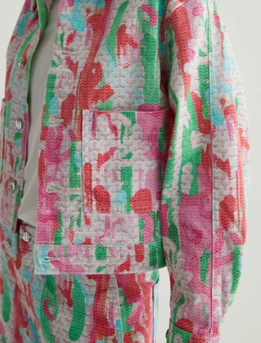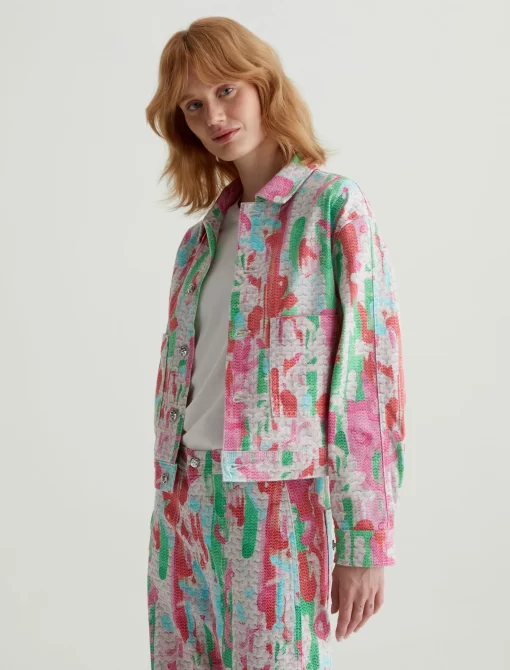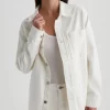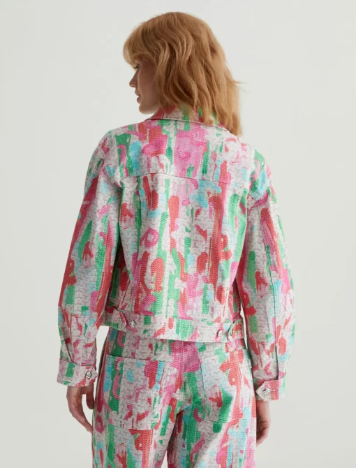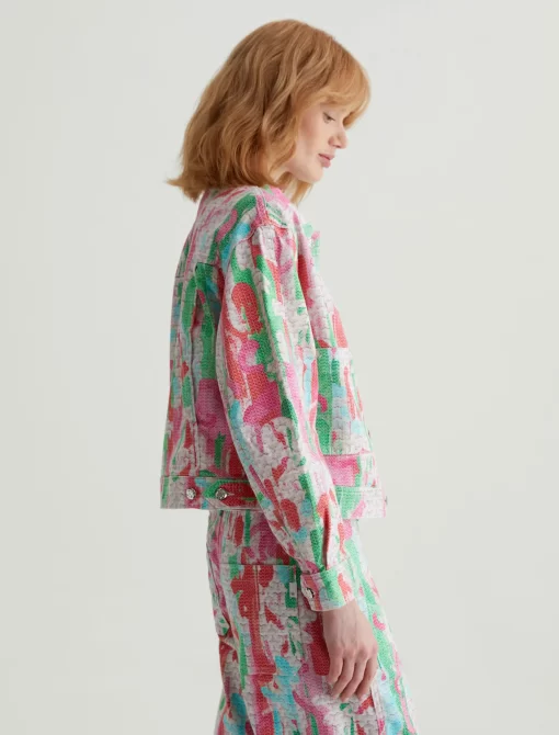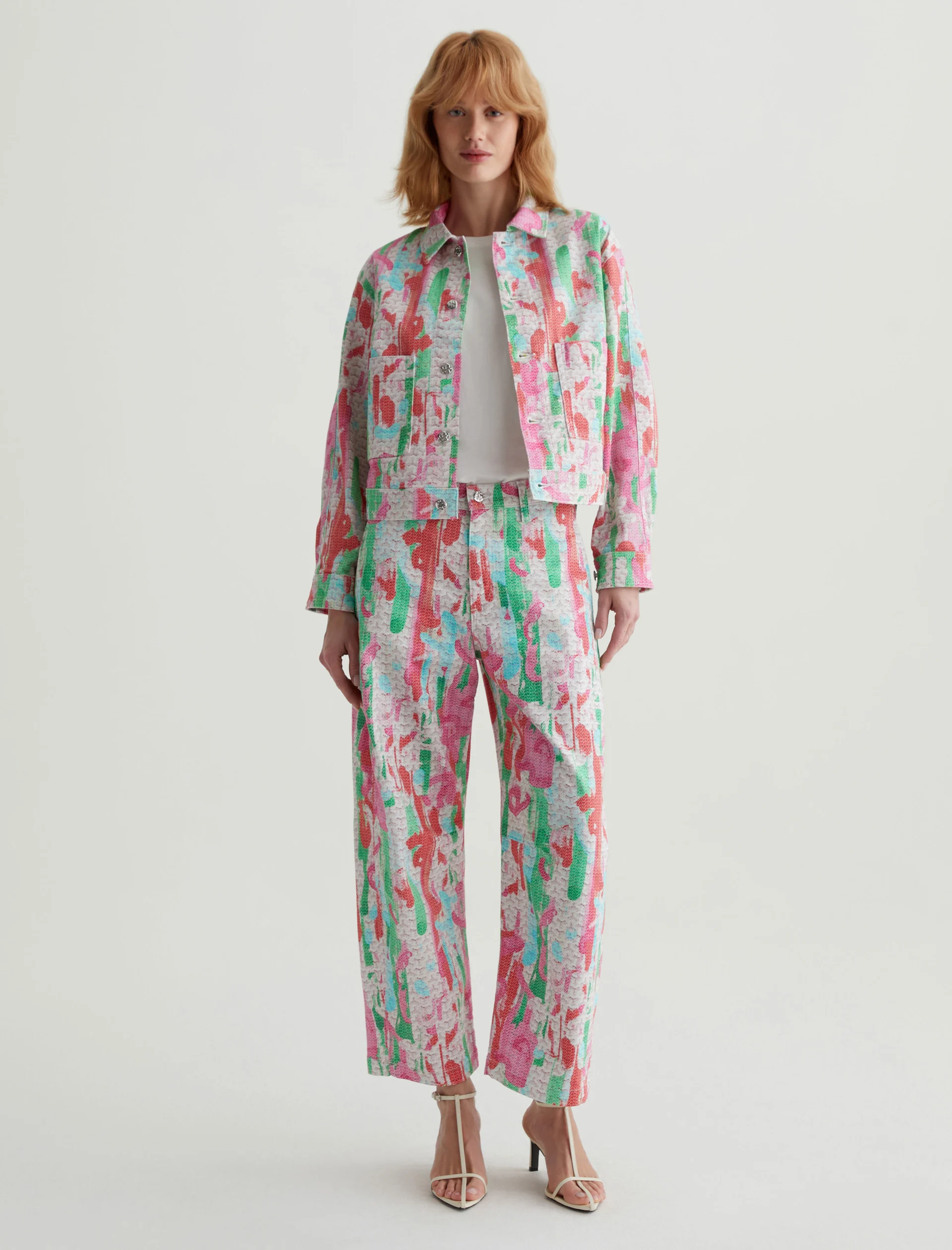 The Genni Jacket is a cropped utility style with barrel-shaped sleeves and oversized patch pockets that have top and side entry. Pleat detailing adds volume, while adjustable tabs draw in the waist and cuffs. It’s designed in 8.7 oz. Hyper-Soft Bull Denim from Italy, an exclusive AG Cloud Soft Denim™ fabric with plenty