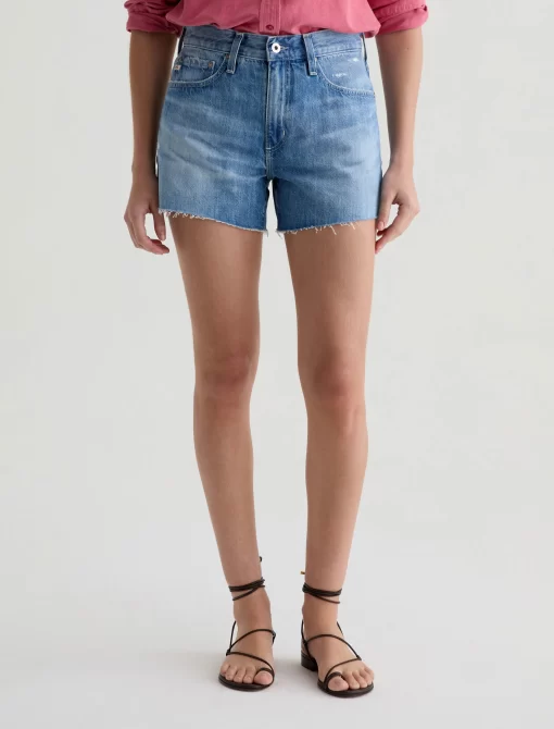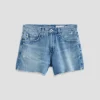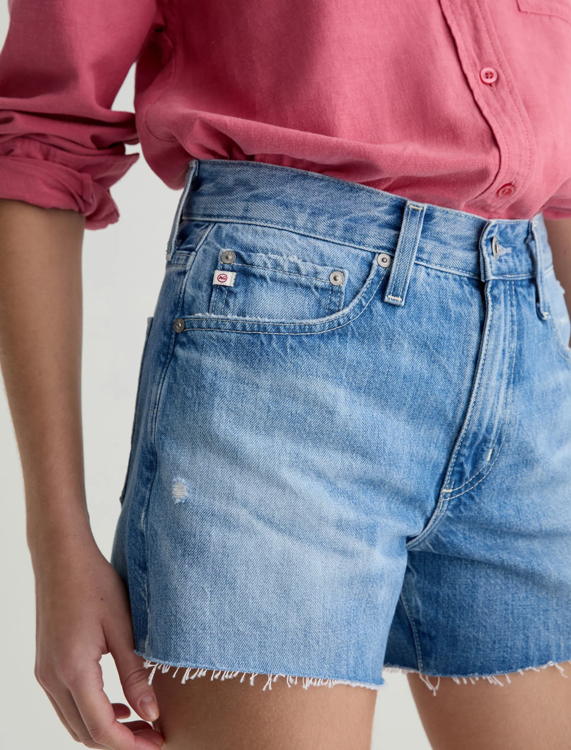 The Halle Short is a high-rise, relaxed-fit style crafted from non-stretch denim in a light AG-ed™ wash to replicare 17 years of wear. Finished with raw hems, it has a laid-back look and feel that’s perfect for warm-weather wear.