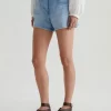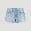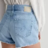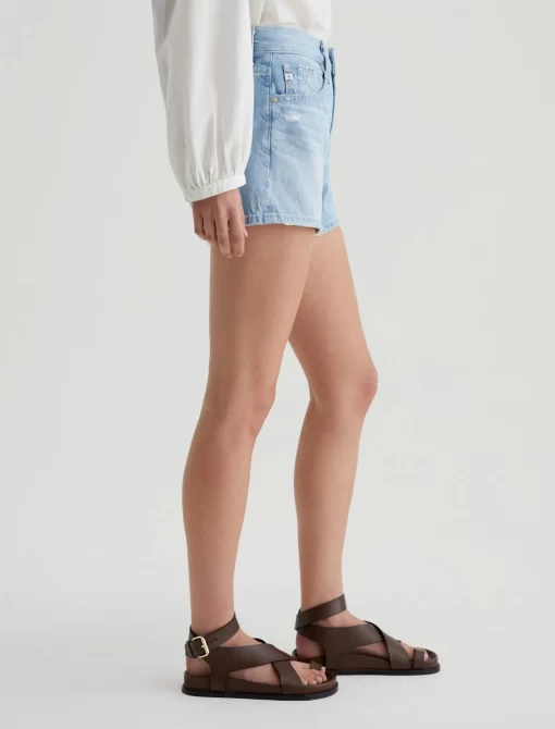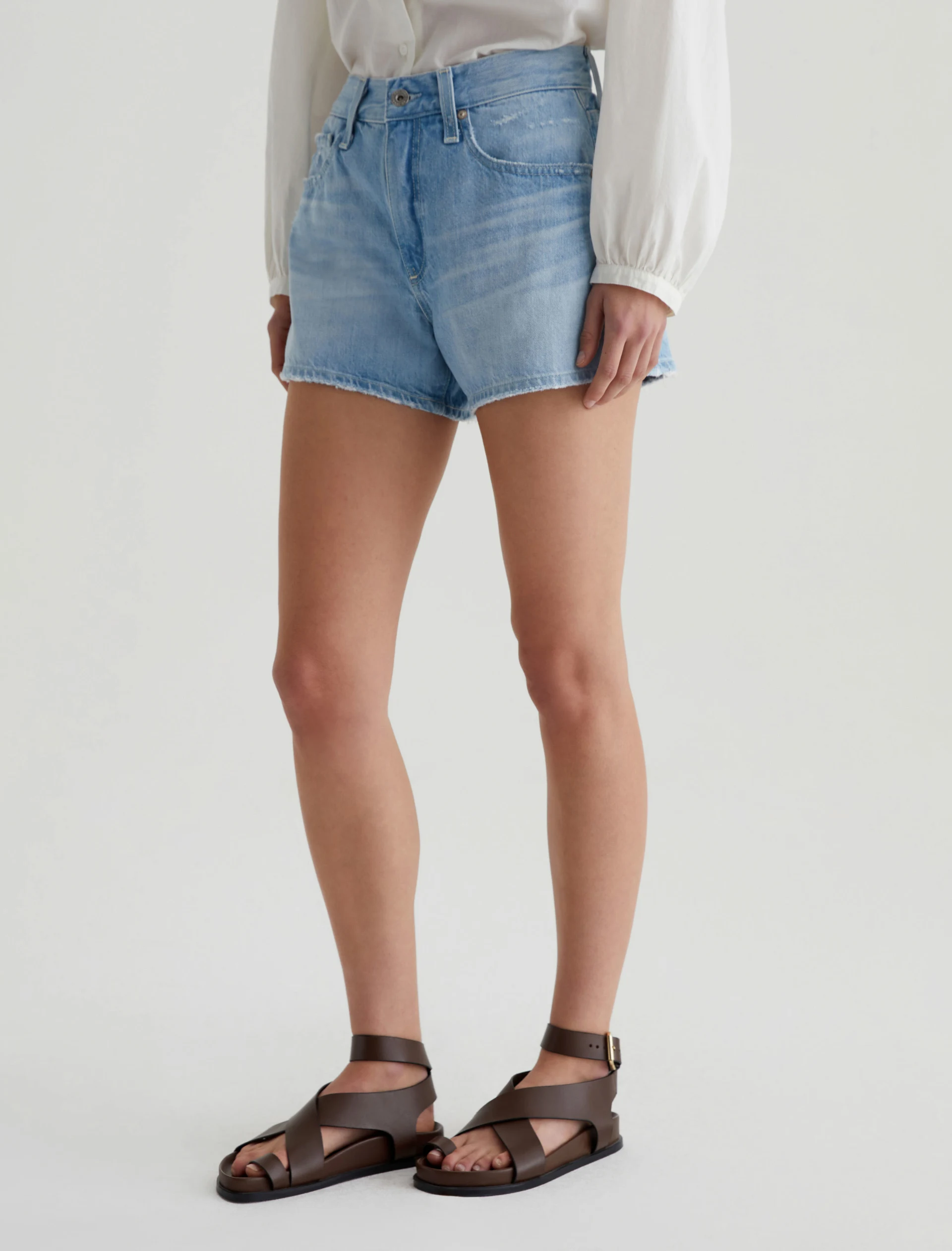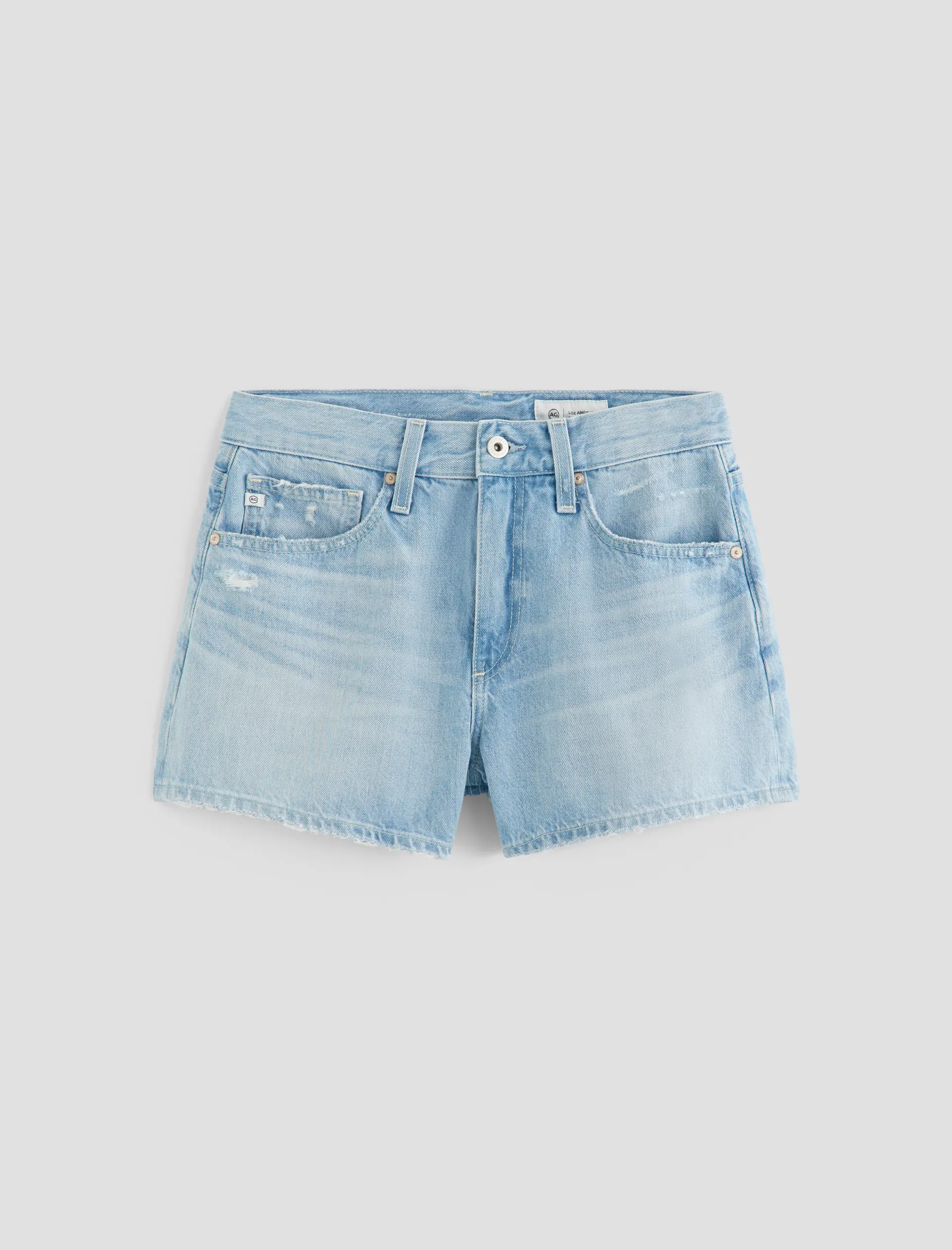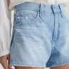 An instant warm-weather essential, the Halle Short offers a relaxed silhouette with a high waist and an easy fit through the hips. These five-pocket women’s shorts are crafted from 13 oz. Sioux Rigid Denim in 100% cotton. Washed to the perfect light blue with a sun-bleached fade, the pair is finished with worn hems and