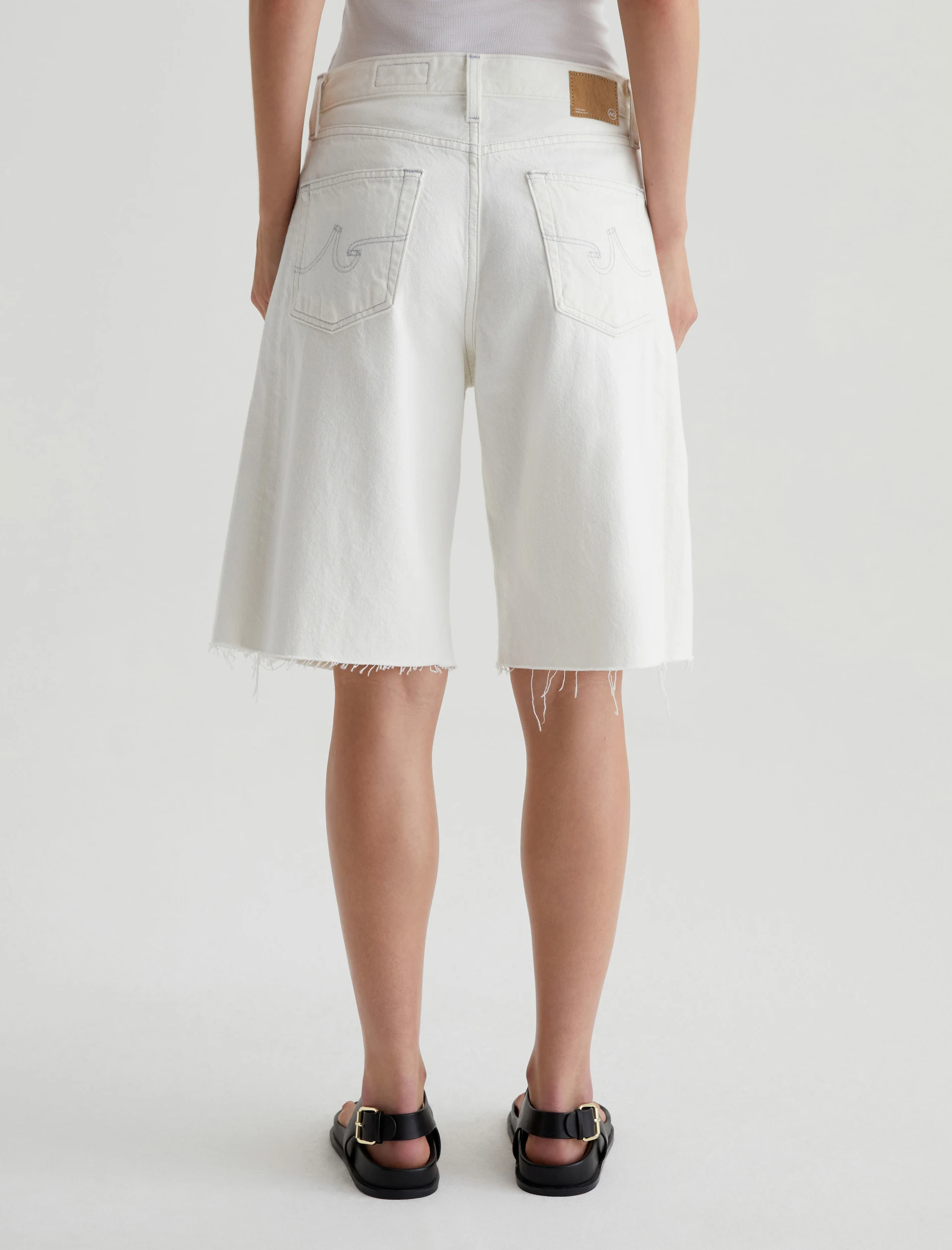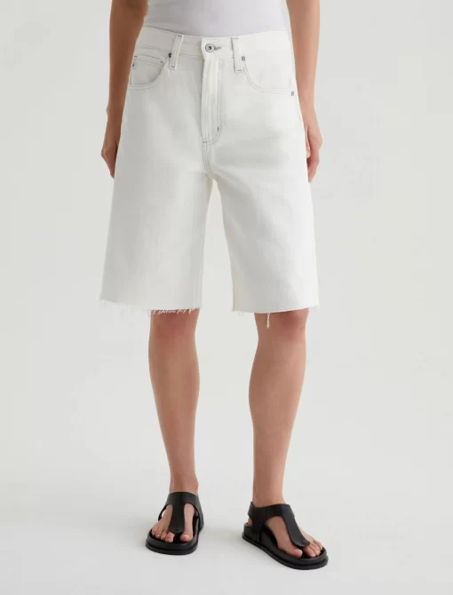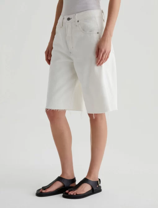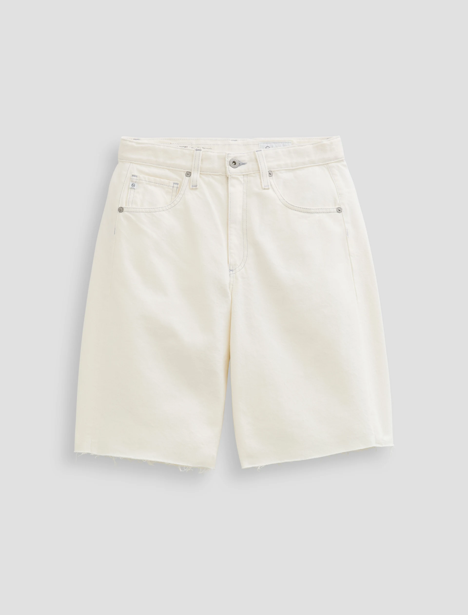 Based on our full-length Hattie barrel fit, the Hattie Short has a relaxed high-rise silhouette with raw hems that land just above the knee. This pair is crafted from 11.75 oz. Soft Pure Denim featuring 100% cotton construction in an ivory hue.