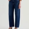 The Hattie in Vapor Wash is a high-rise barrel jean with a 28” inseam, crafted from 11 oz. Journey Denim with a comfort stretch feel. Finished in a AG Vapor Wash™ dark wash, it combines a modern silhouette with everyday ease and flexibility.