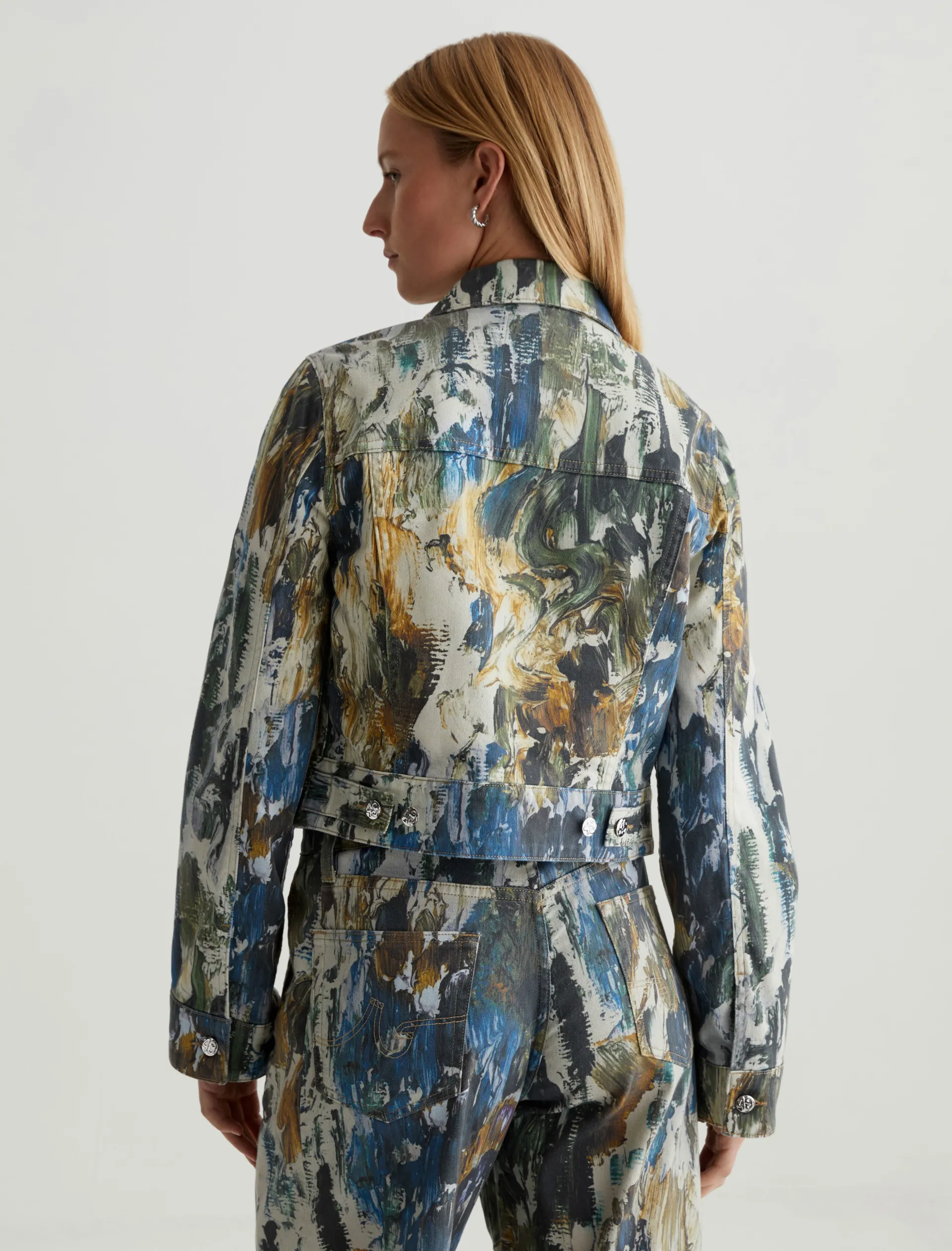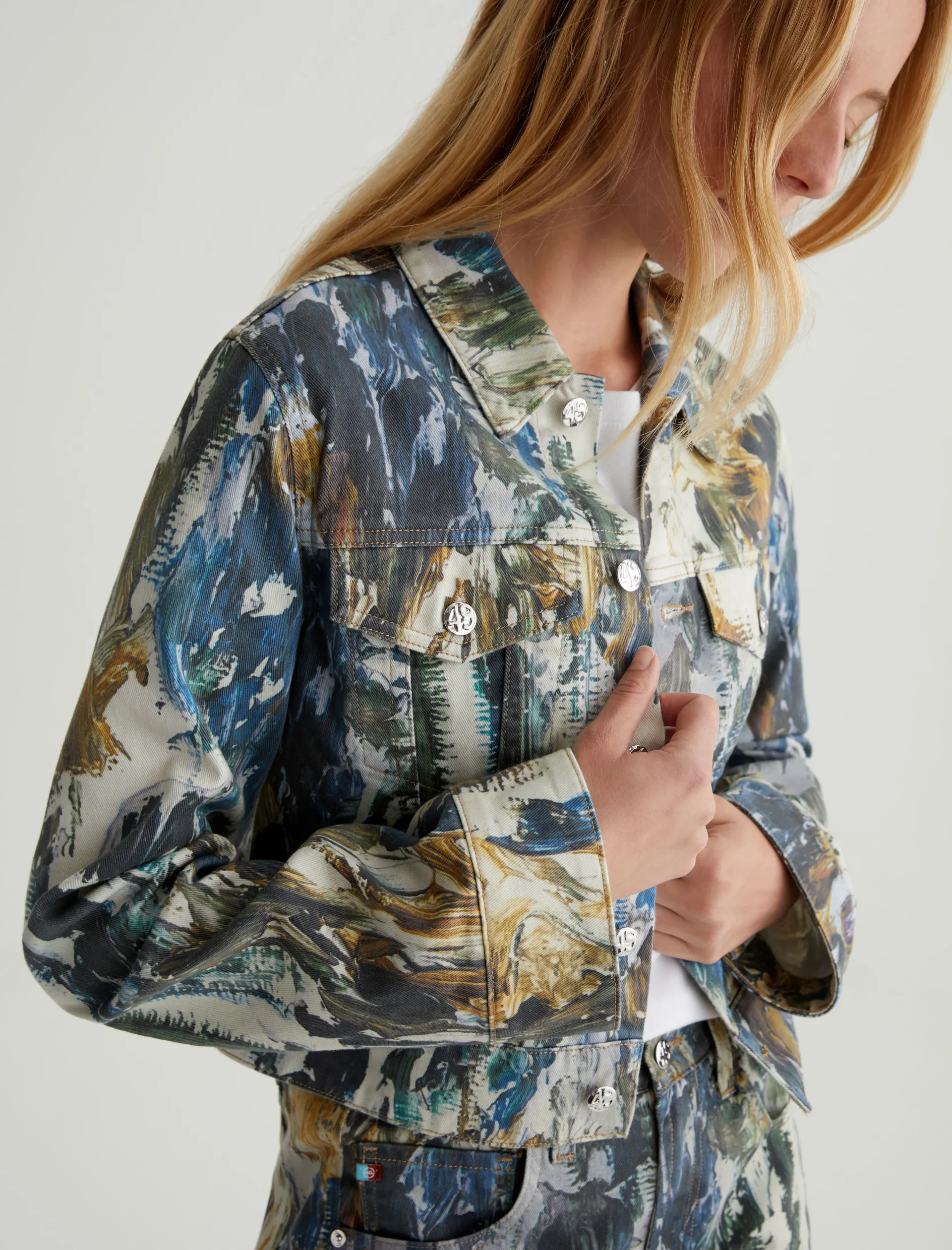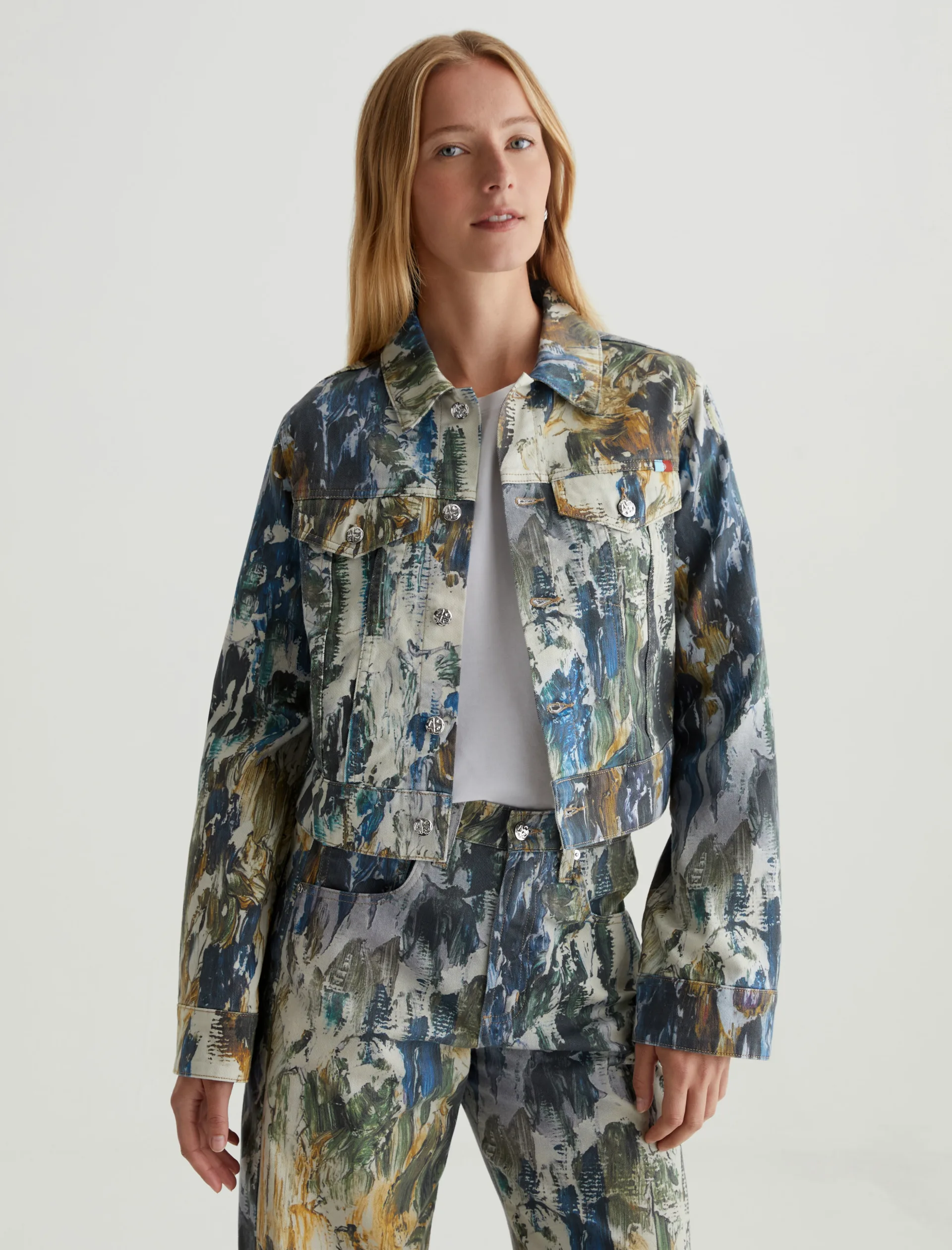 The Isa Jacket is a modern trucker style with a straight, cropped fit and bell-shaped sleeves. It’s cut from Hyper-Soft Stretch Denim, an exclusive AG Cloud Soft Denim™ fabric that’s luxuriously comfortable and designed to even softer with wear. Classic details include flap pockets, front placket with metal hardware, a