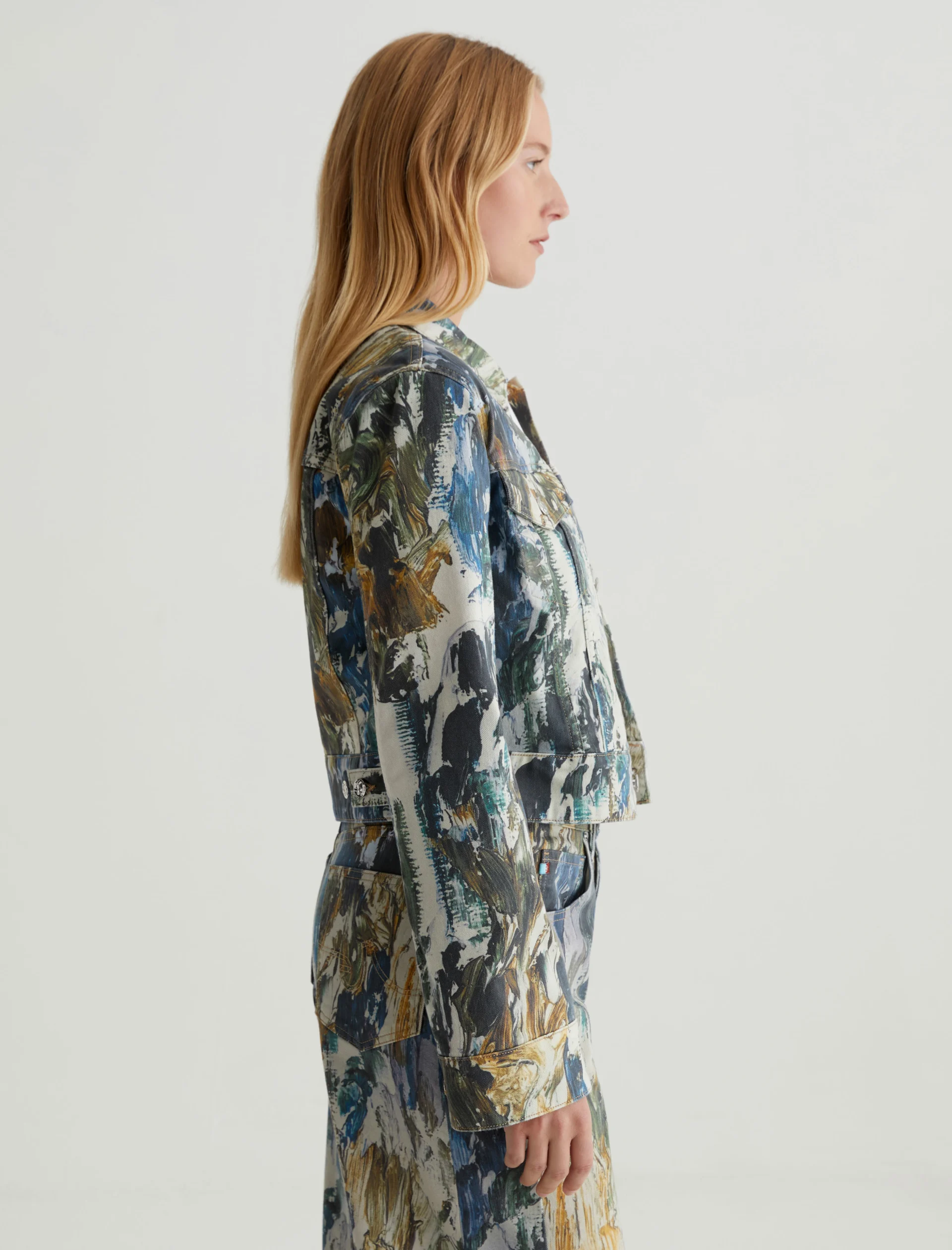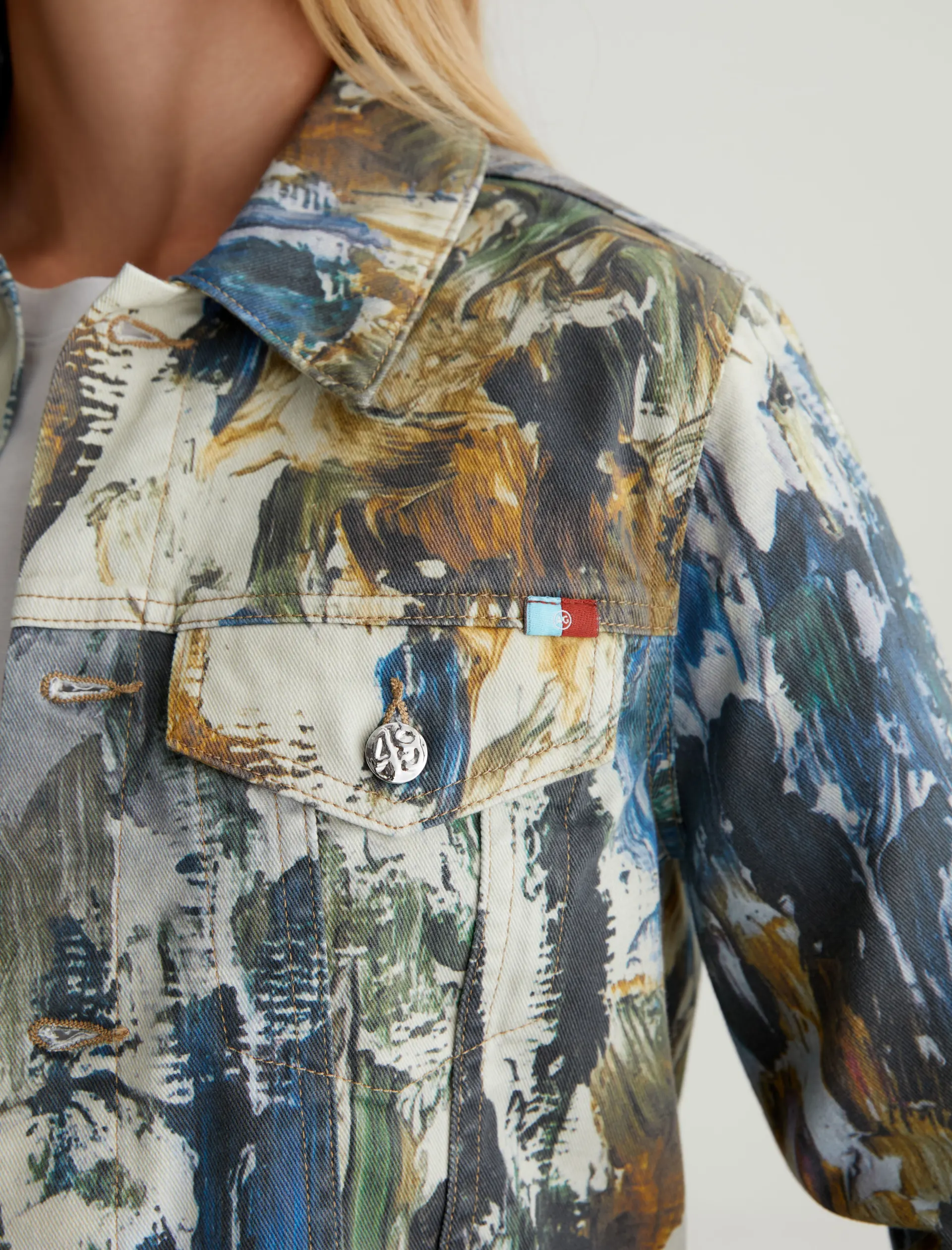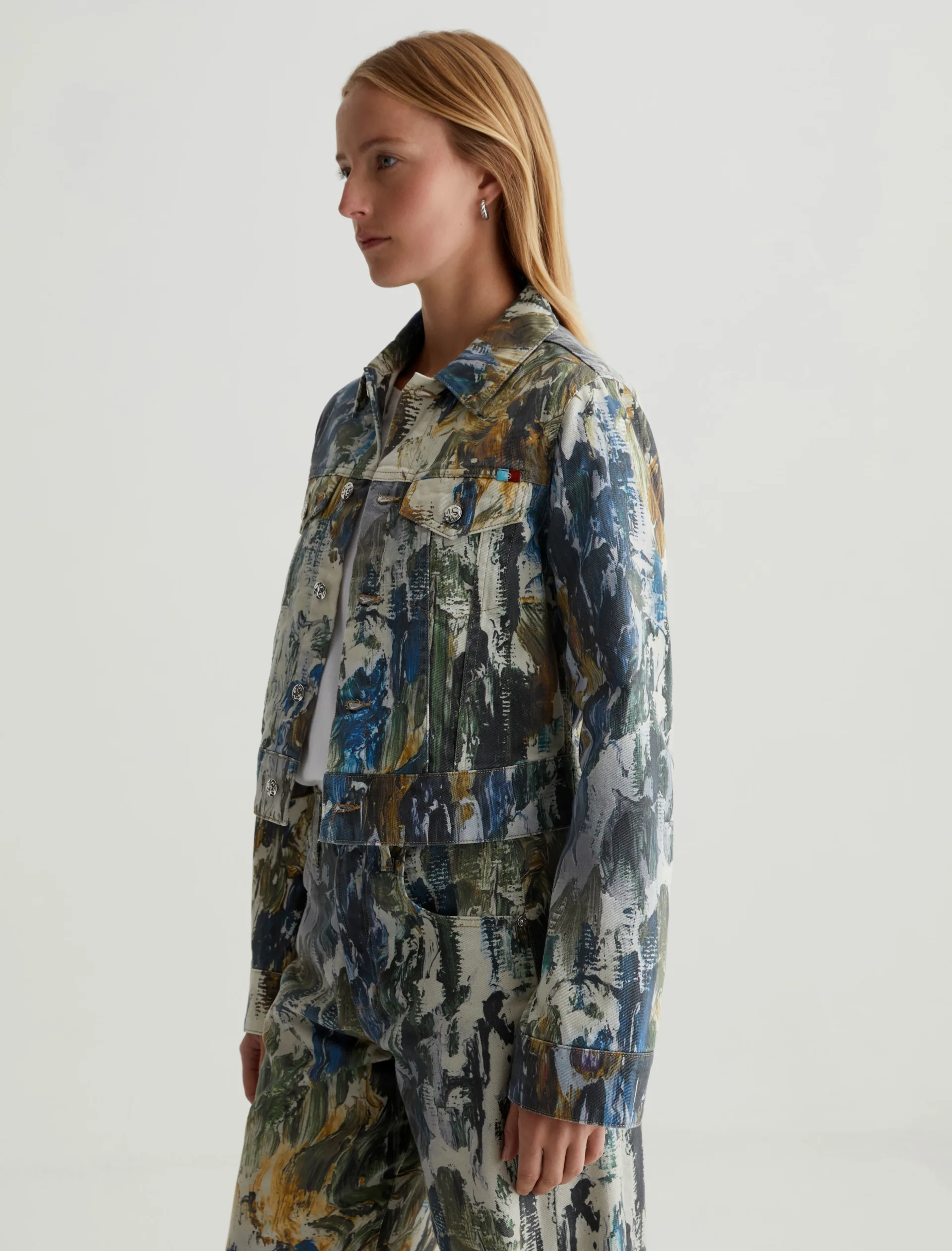 The Isa Jacket is a modern trucker style with a straight, cropped fit and bell-shaped sleeves. It’s cut from Hyper-Soft Stretch Denim, an exclusive AG Cloud Soft Denim™ fabric that’s luxuriously comfortable and designed to even softer with wear. Classic details include flap pockets, front placket with metal hardware, a