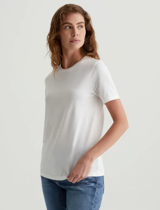 Our Jagger Crew Neck is the perfect short sleeve tee for your assortment of basic essentials. Featuring an ivory hue, this classic crew offers a 1X1 rib neckband. Seasonless, elevated, and luxurious—this fabrication and fit provides unique versatility in styling your everyday look. Our Jersey Knit offers a luxurious co