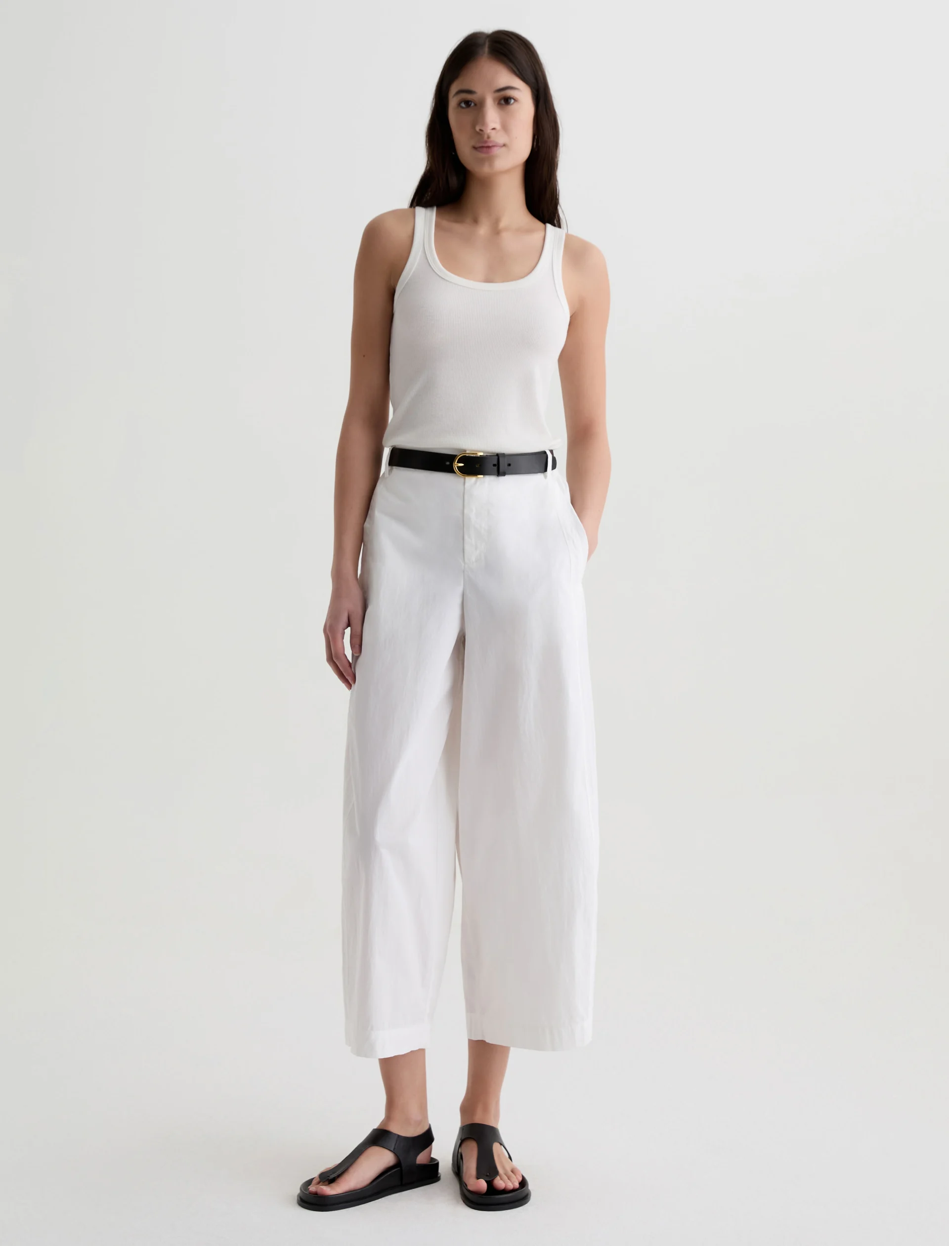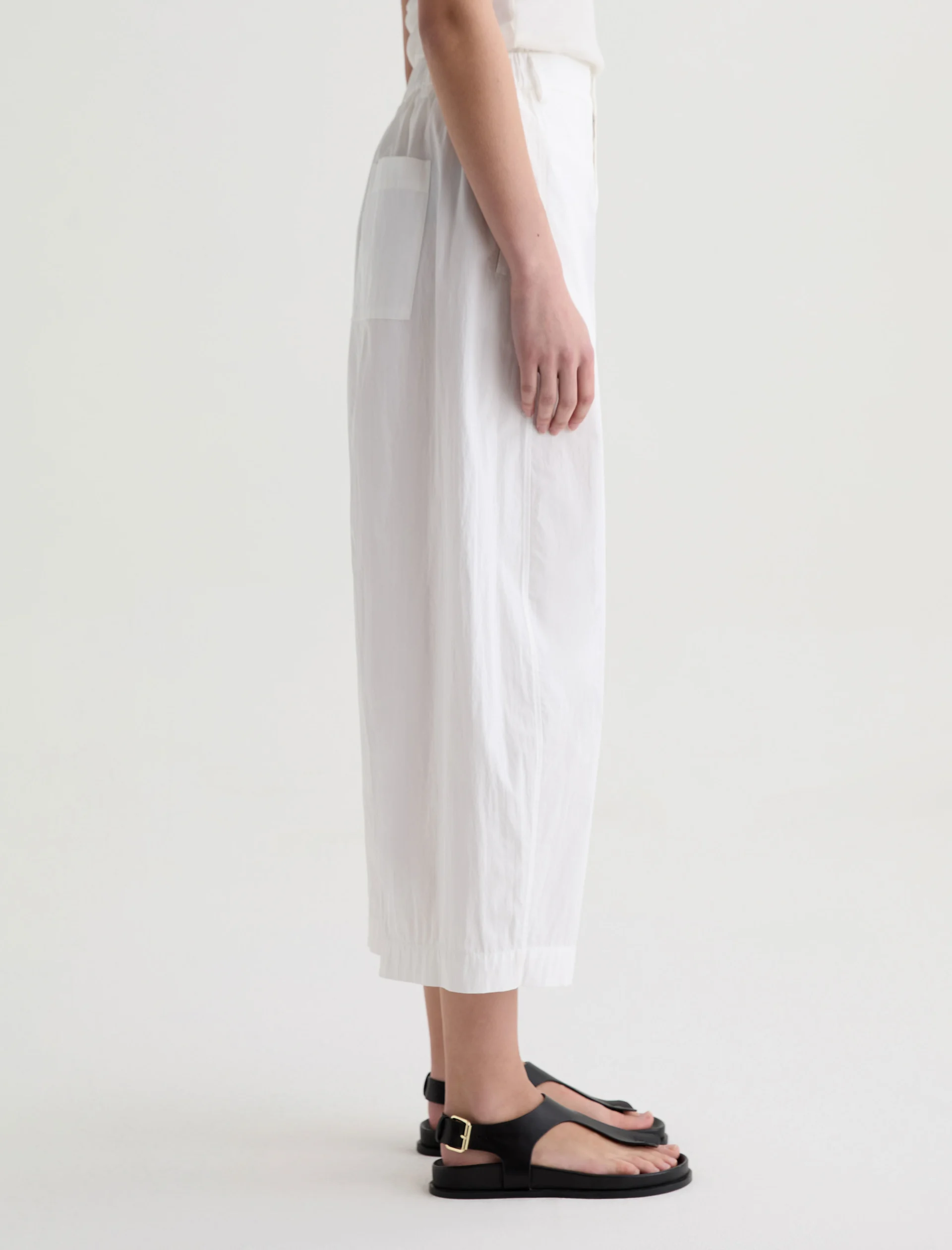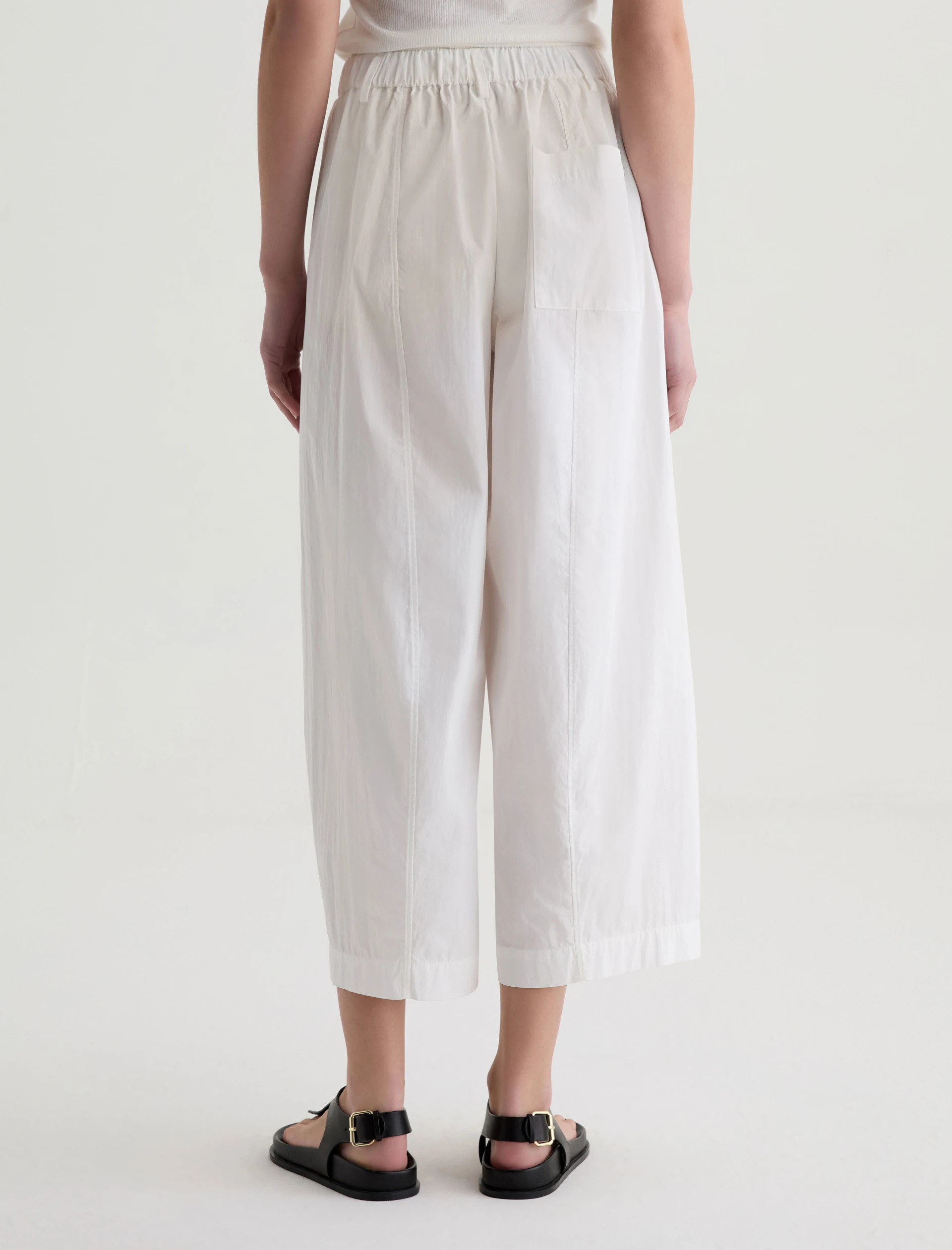 The Jasmin is a sculptural barrel-leg jean with a high-rise, pull-on waist and side welt pockets. Made from Easy Cotton Nylon, it offers a lightweight feel with effortless structure and ease.