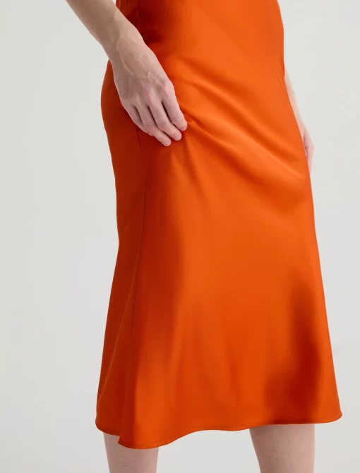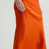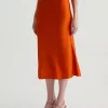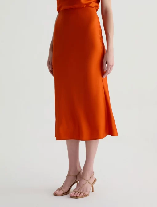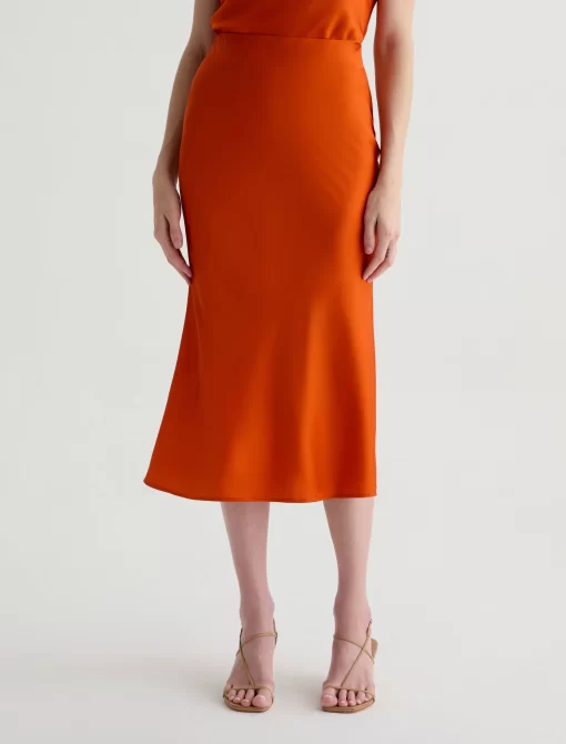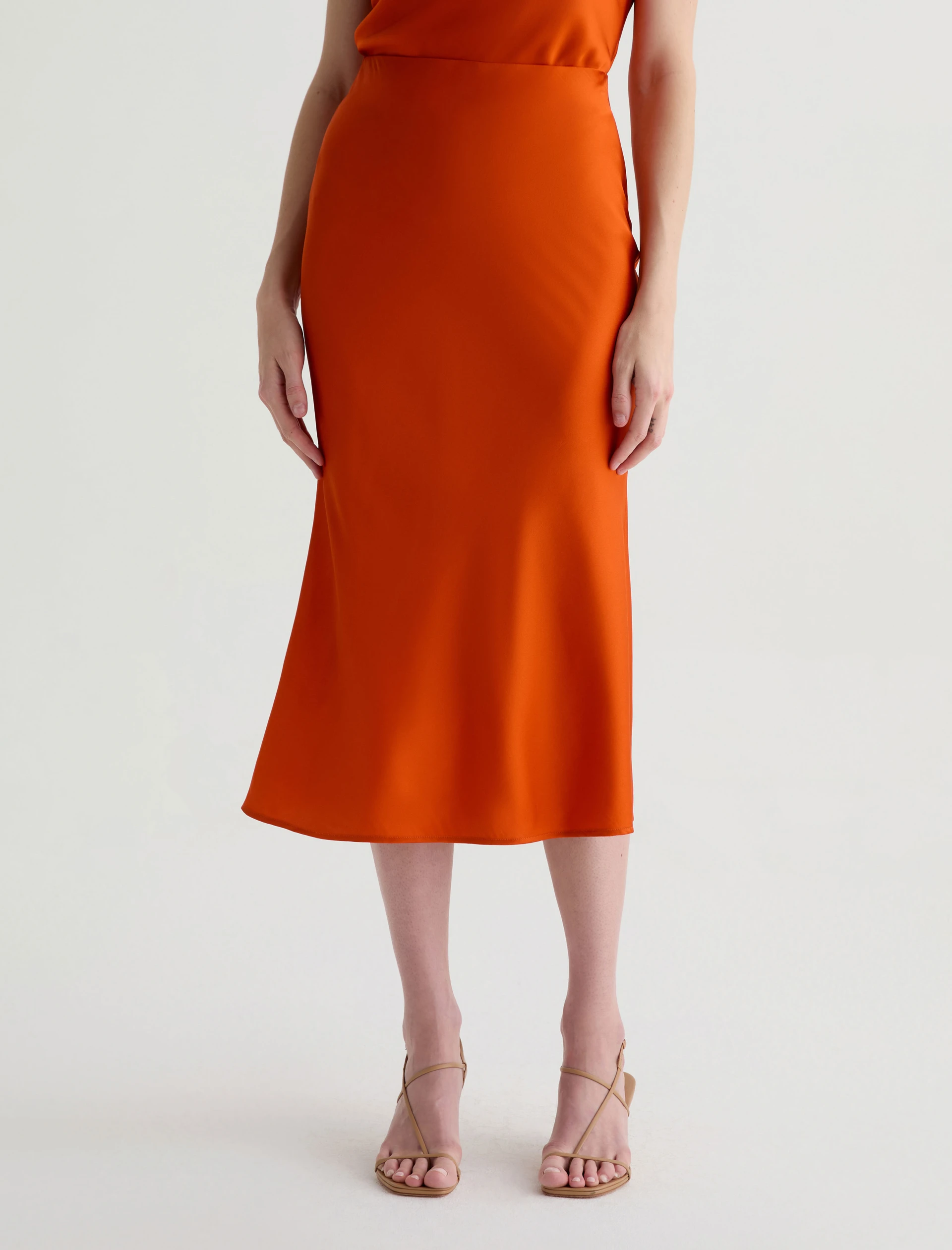 Our Karina Skirt is a classic-fit silhouette crafted from a bias cut silk twill and spandex blend for a smooth, comfortable feel. Offered in a bright red shade, it gracefully elevates your summer style.
