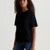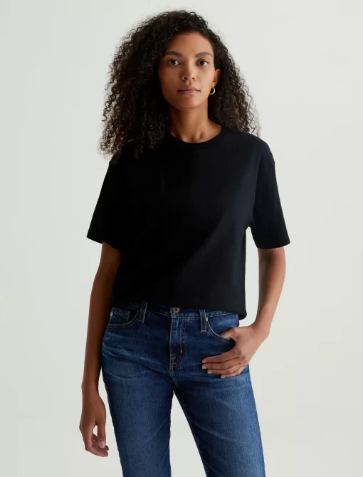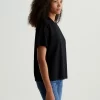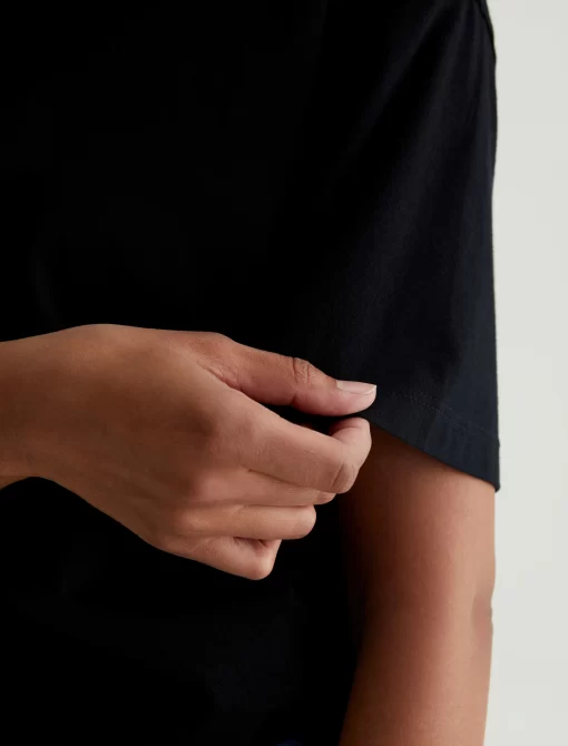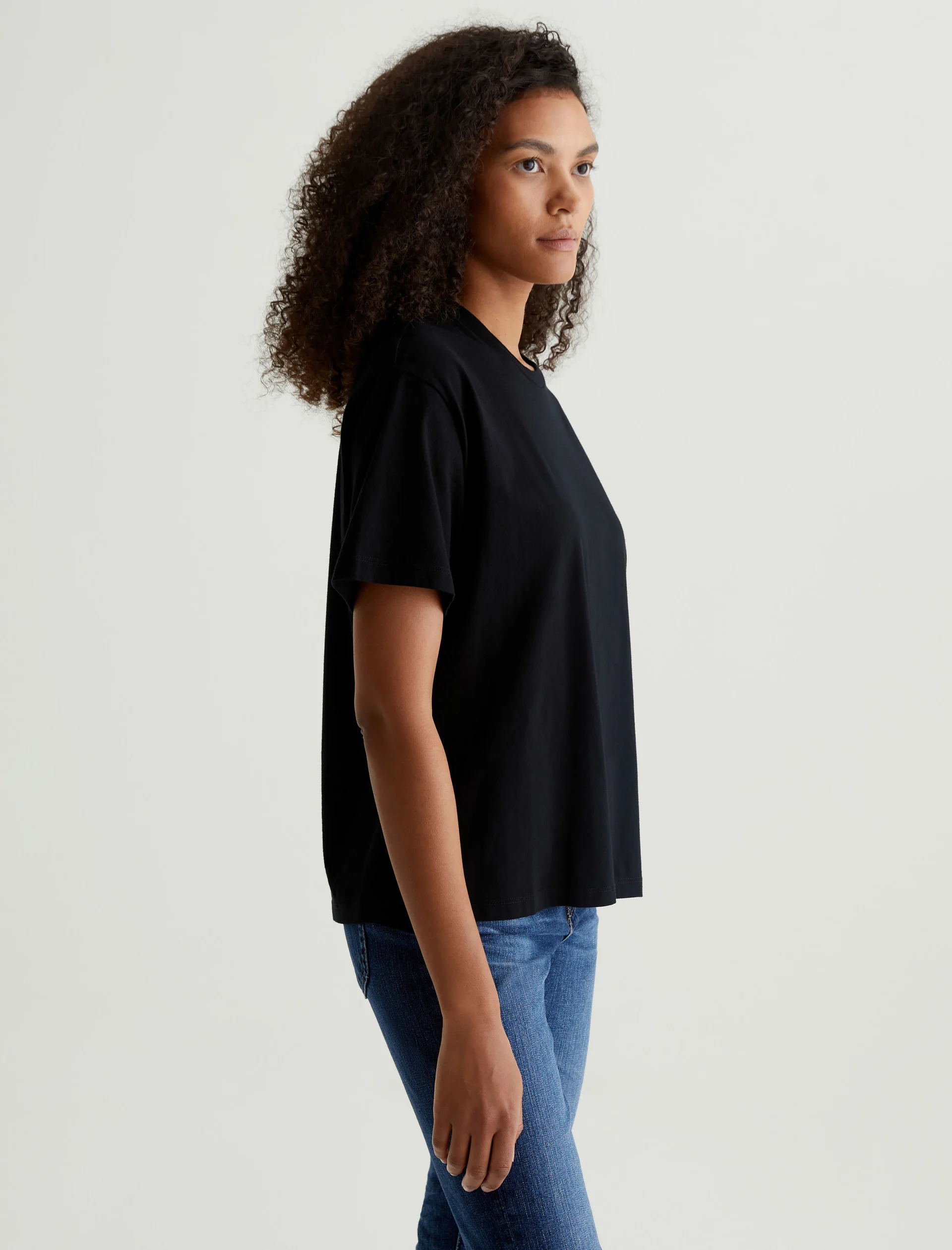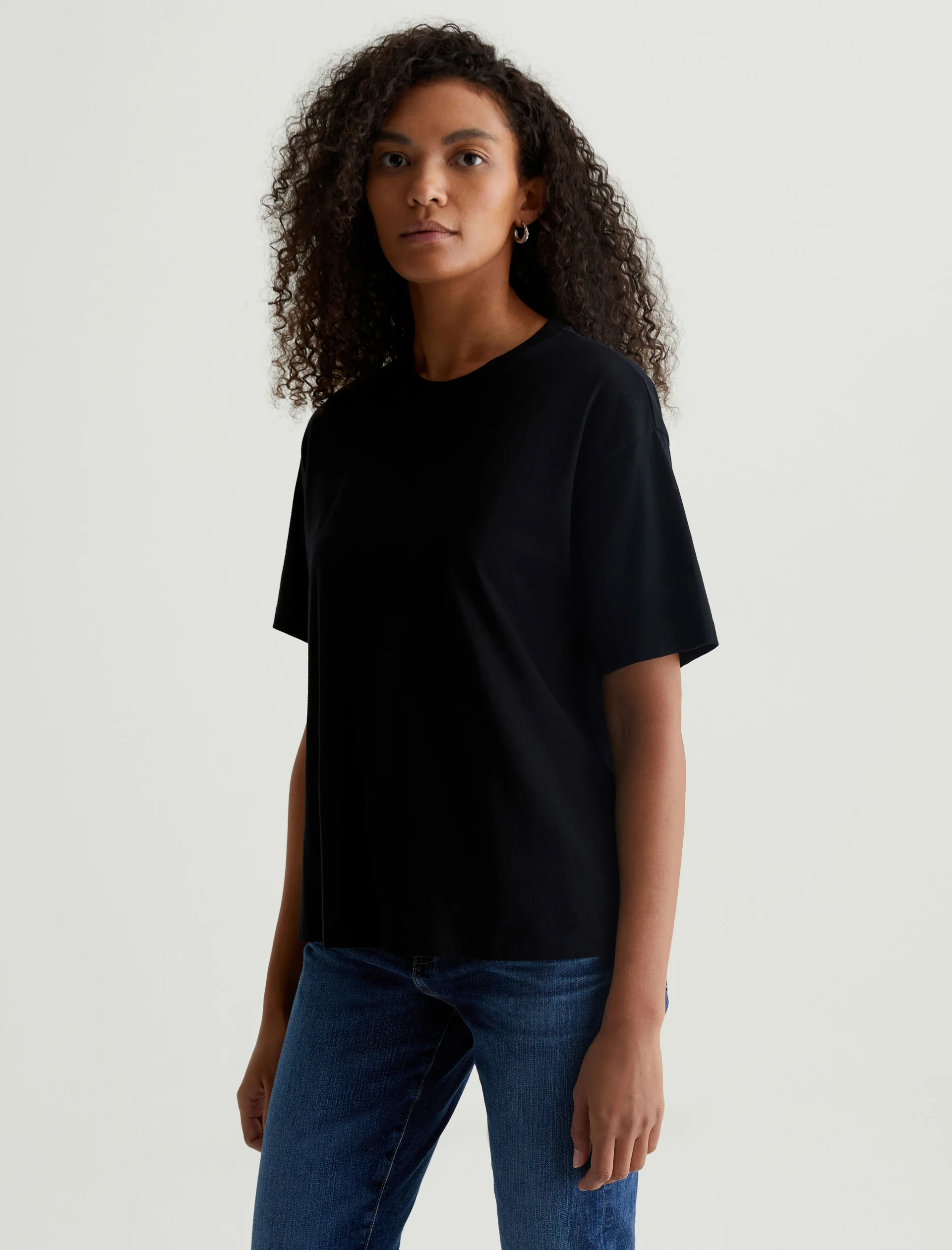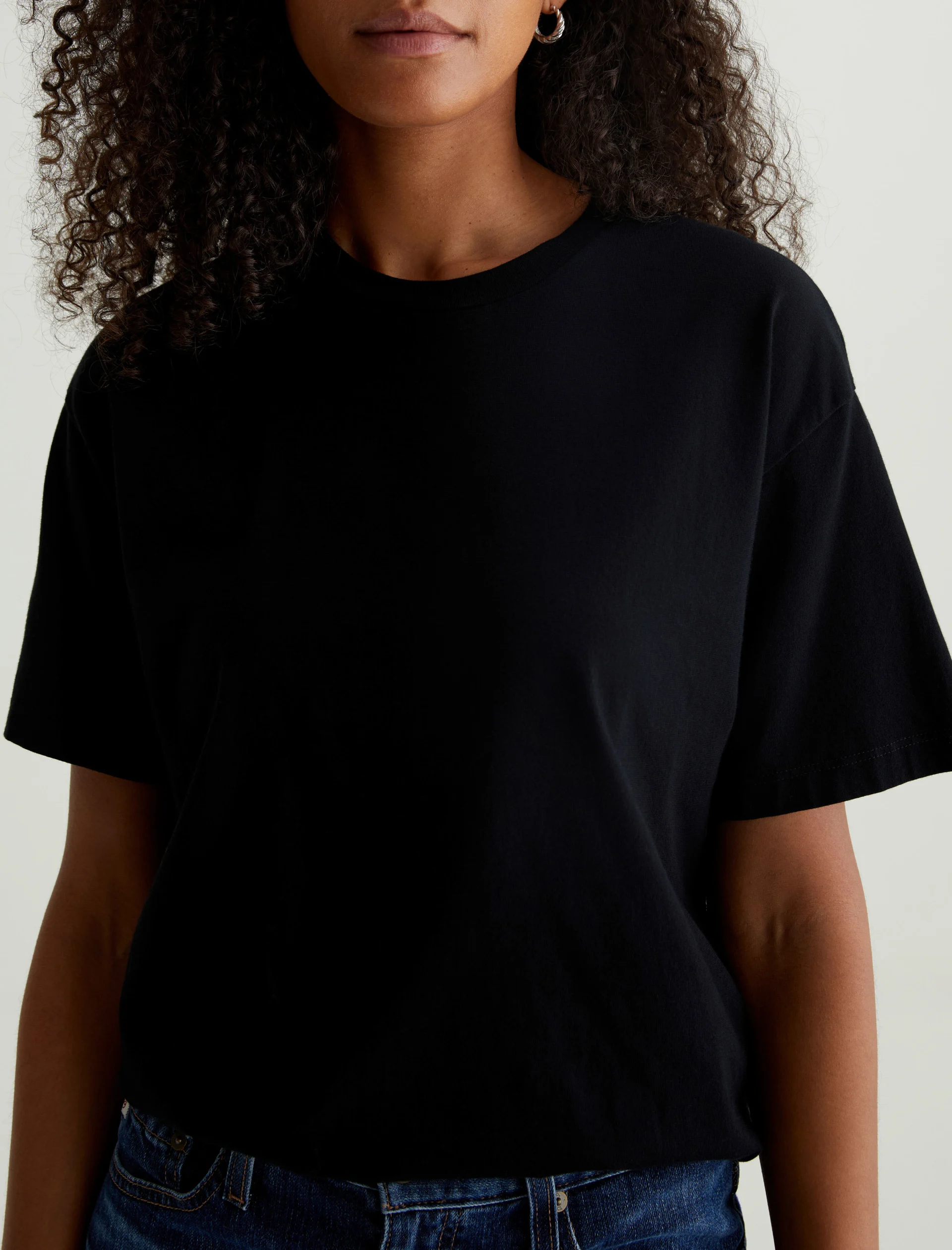 The Karter Ex-Boyfriend S/S Crew in black is our first introduction to a relaxed fit short sleeve crew. Drop shoulders creates a modern, oversized take on the “borrowed from your boyfriend” look. Our Jersey Knit offers a luxurious comfort that is unrivaled—knitted with both S-twist and Z-twist yarn to sustain longevity