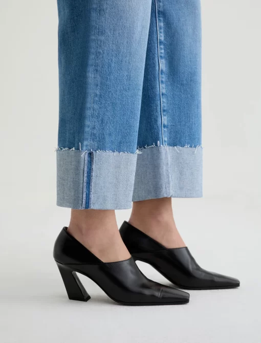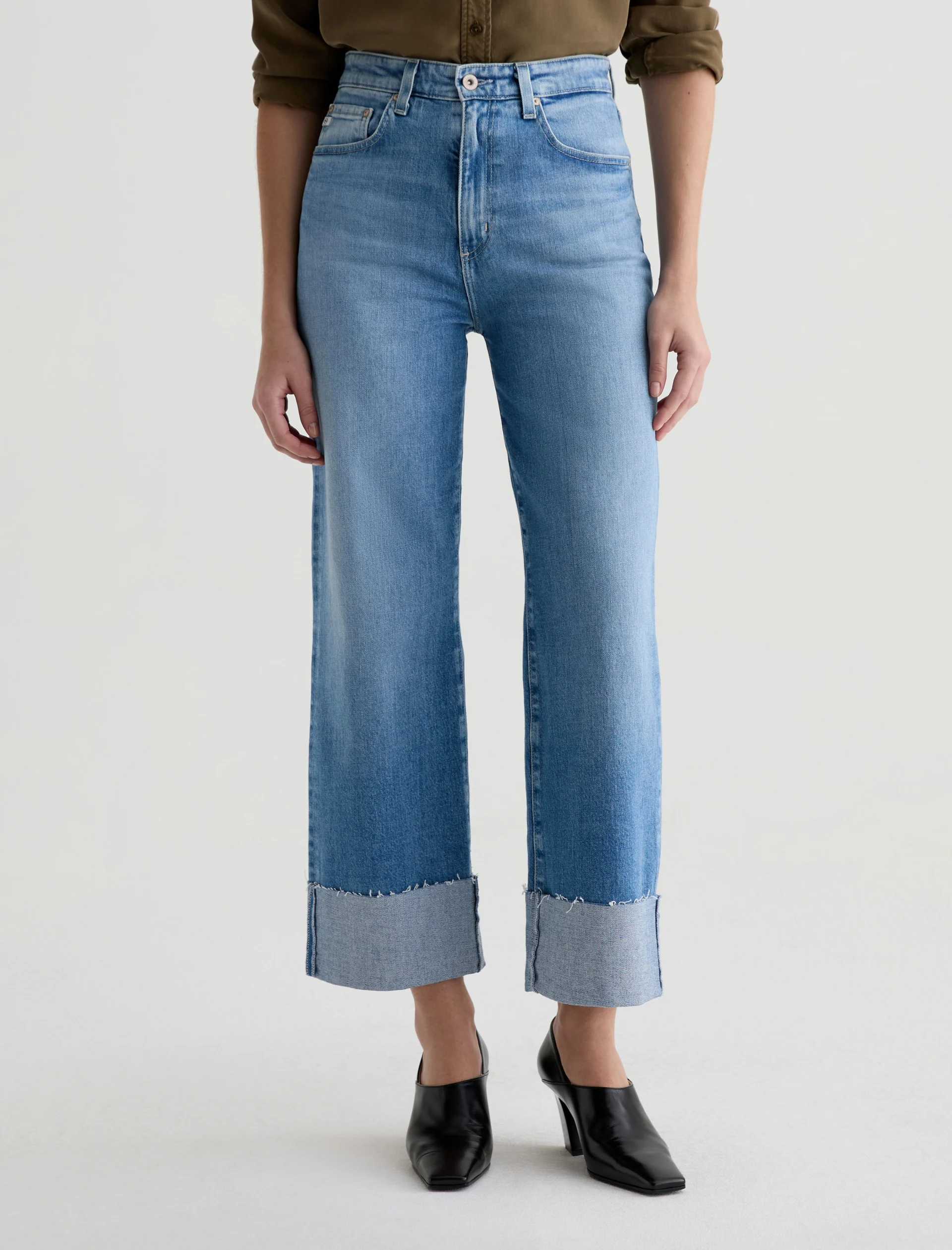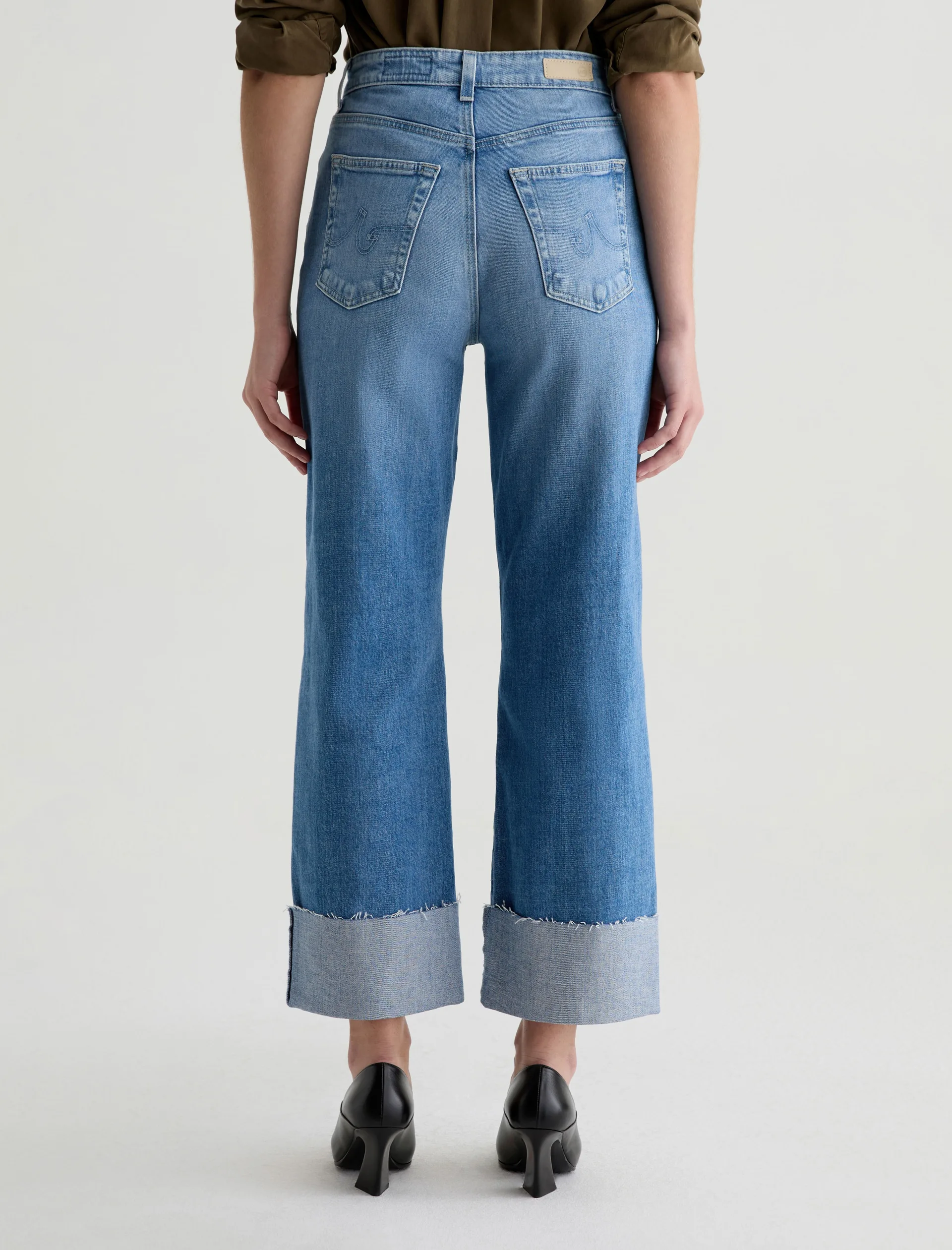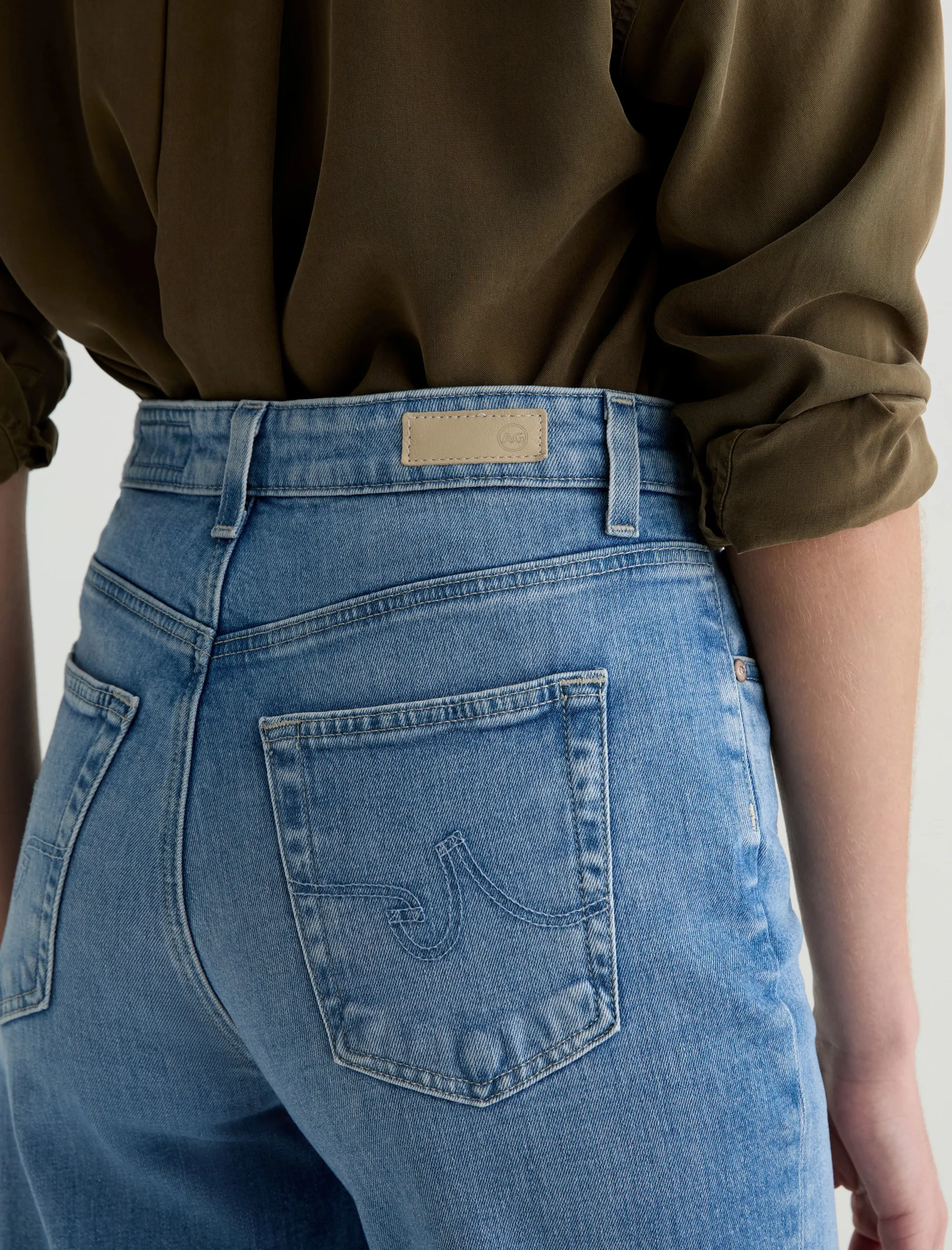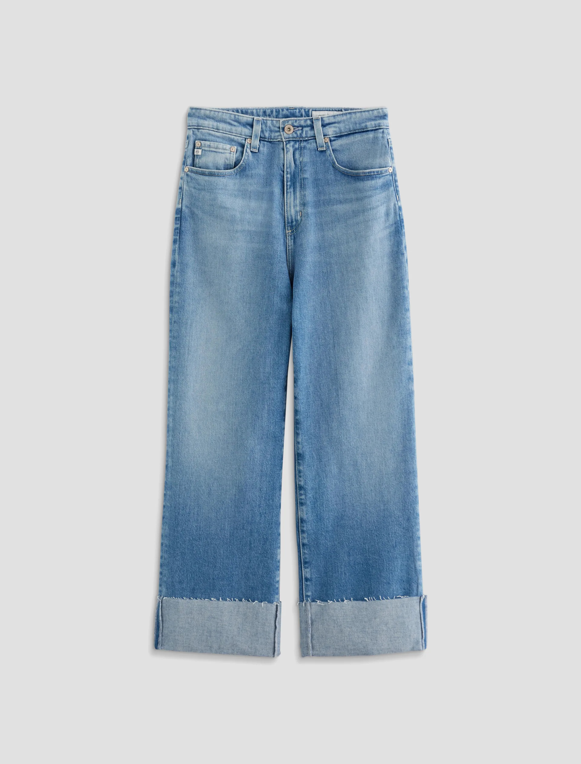The Kora Ankle is a high-rise wide-leg jean with a 28” inseam, crafted from 11 oz. Journey Denim with a comfort stretch feel. Finished in a medium wash, it features raw hems with subtle cuffed detailing for a laid-back yet polished look.