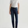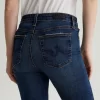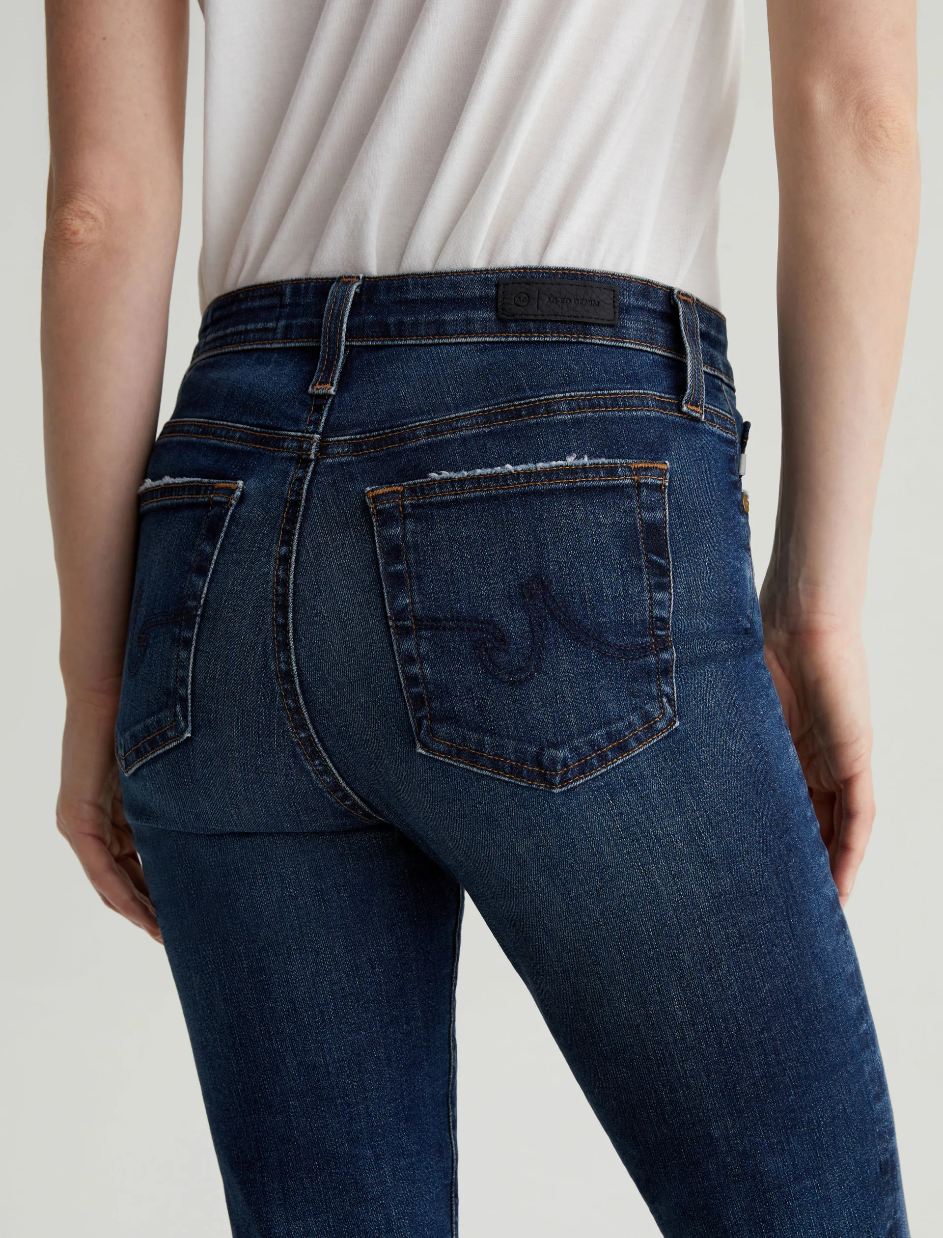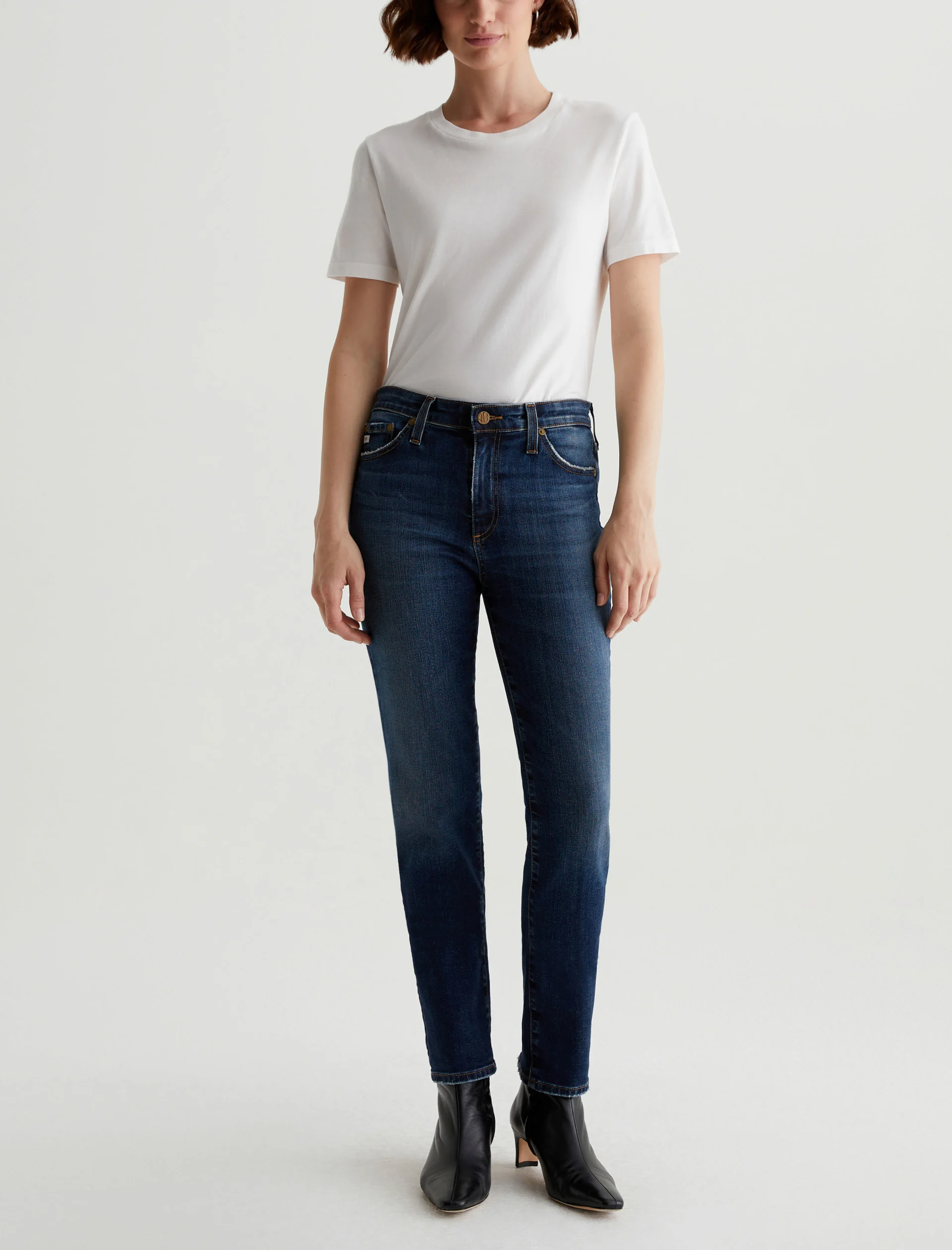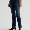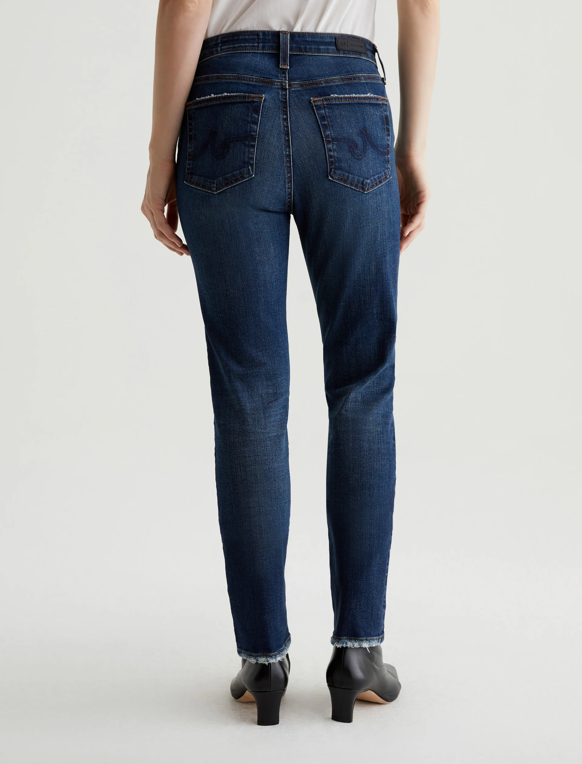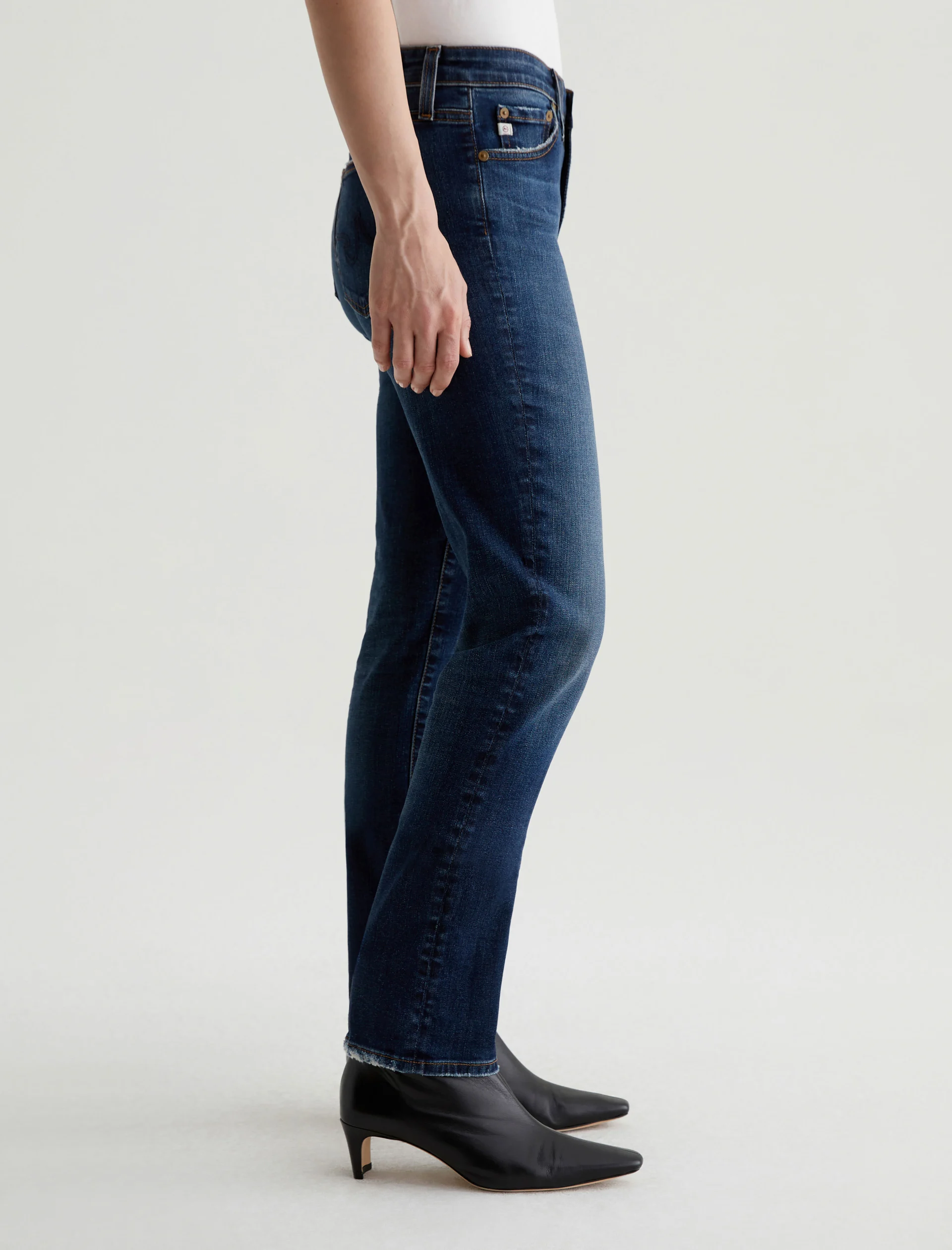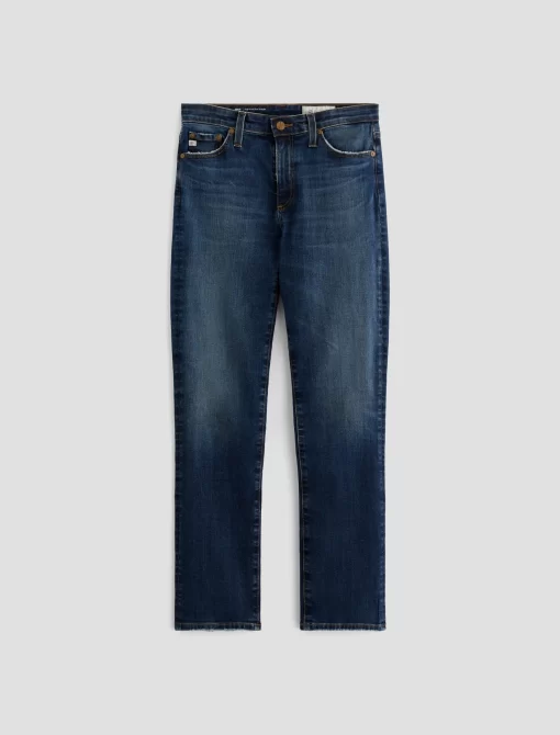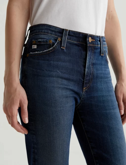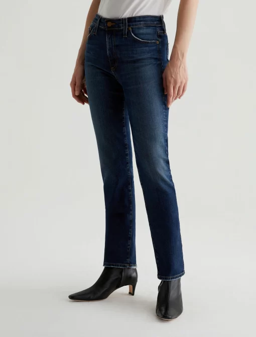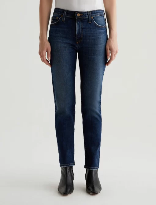 Mari is a mid-rise slim-straight jean in a dark indigo wash featuring a 9-year AG-ed™ finish—complete with heavy wear the back hems. Mari offers a flattering mid-rise waist and fits easy around the hips, finished with a straight leg and subtle slim leg opening. These slim-straight jeans for women come in 10 oz. Rouge A