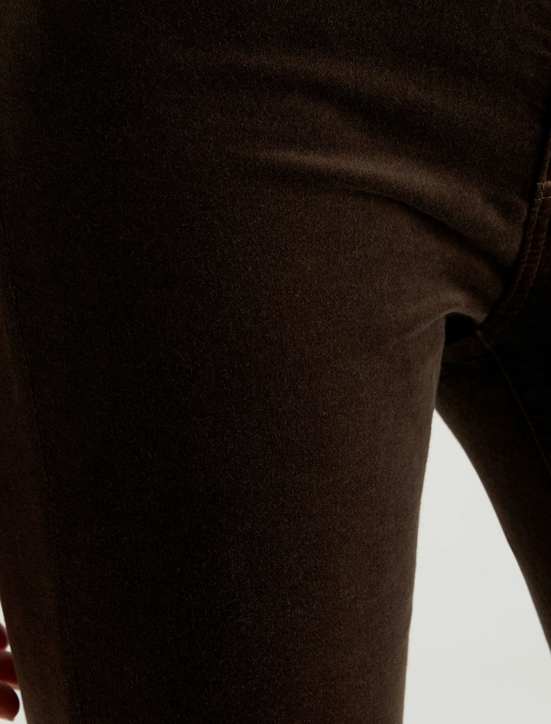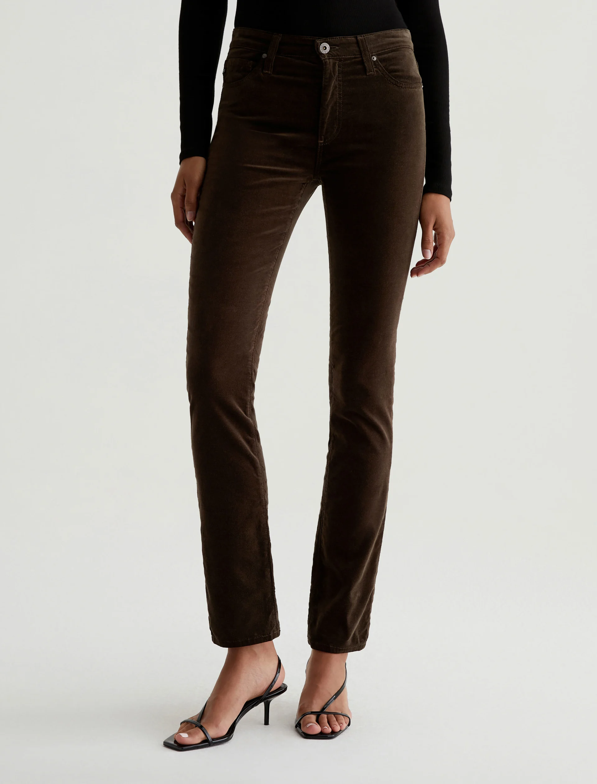 Soft and plush in Opulent Stretch Velvet, the Mari Extended updates our mid-rise slim-straight with longer inseams. Featuring a rich brown shade, the high-waisted style fits easy around the hips and has straight legs that slim down toward the leg openings.Some styles previously labeled as ‘High-Rise’ have been reclassi